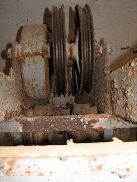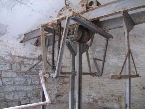 The battery (July 2006) - Detail of the hoist still in very good condition in the north traverse. Only the cables are missing for a good resumption of service. Some views of the covered passage, its shelter and the fire control post in the prohibited zone.