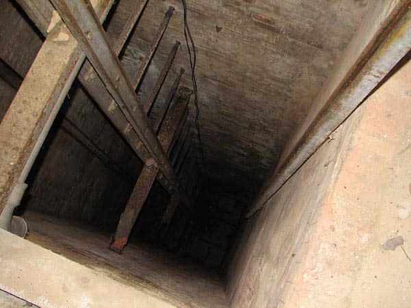 Baterie (červenec 2006) - Detail výtahu stále ve velmi dobrém stavu v severní traversě. Chybí pouze kabely pro dobré obnovení služby. Několik pohledů na krytou chodbu, její úkryt a stanoviště řízení palby v zakázané zóně.
