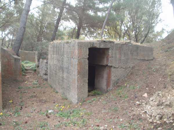 Francouzské dělostřelecké postavení pro 120 mm Model 1878. Tato baterie byla při své stavbě (1901) vybavena čtyřmi 240 mm děly. Pomocná baterie (varovná baterie) byla postavena o několik let později a vybavena čtyřmi 95 mm děly a stanovištěm řízení palby. Program přezbrojení francouzského pobřeží rozhodl o umístění čtyř 120 mm Model 1878 děl v baterii (Schválení ministrem námořnictva 8. srpna 1924). Tři děla byla umístěna uvnitř ohrazení baterie, čtvrté (viz foto) bylo umístěno vně. Nový plán výzbroje baterie byl schválen ministrem námořnictva v dubnu 1928. Němci obsadili místo během druhé světové války, ale existující dělostřelectvo neupravovali. Spokojili se s doplněním výzbroje o dva 37 mm dvouhlavňové a tři 2 cm děla. (© Meltem)