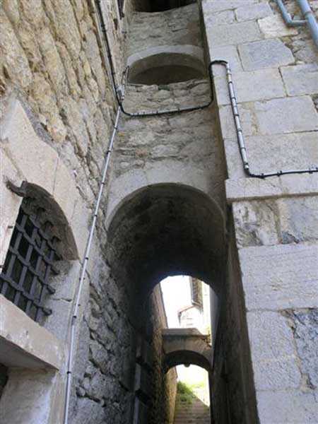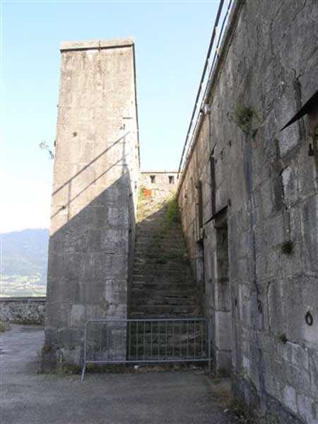 Dept 38 (Isère) Grésivaudan valley. Inaugurated in 1597 by the Italians, taken by the French the following year and improved several times in the 17th century, then by Vauban in the 18th, and again from 1821 to 1827 and from 1830 to 1840. Having no real military value any longer, it served as a prison and optical communications relay between the posts of Combloud towards Grenoble and the fort of Mont in Albertville. This relay was established as needed on top of the Haxo casemates. Visited in July 2006 with the main objective of searching for this relay, no casemated optical post was spotted. A note from the General Staff dated December 3, 1888, prescribes keeping the fort in its present state. Camp for German officer prisoners in 1917. Open to the public.
