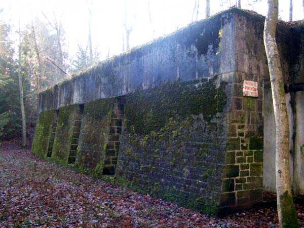 Entrenched camp of Épinal, west of the town, 1889. Small terraced infantry structure organized around a concrete combat shelter, located approximately 1000 m west of the Sanchey battery. Private property.