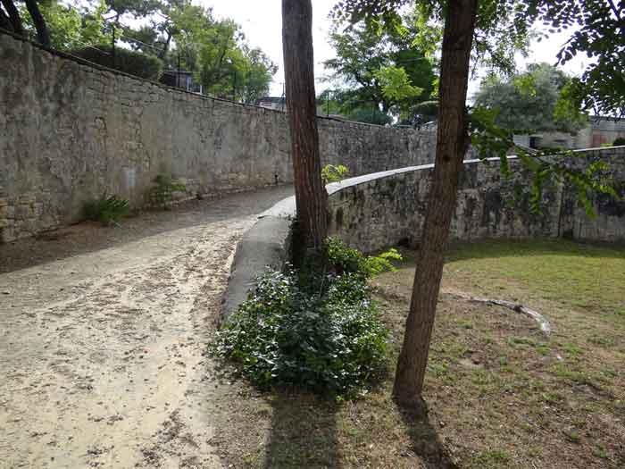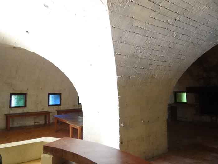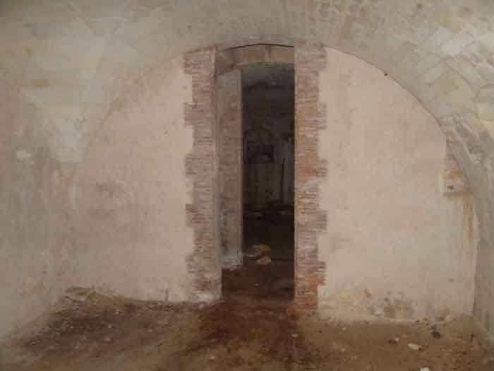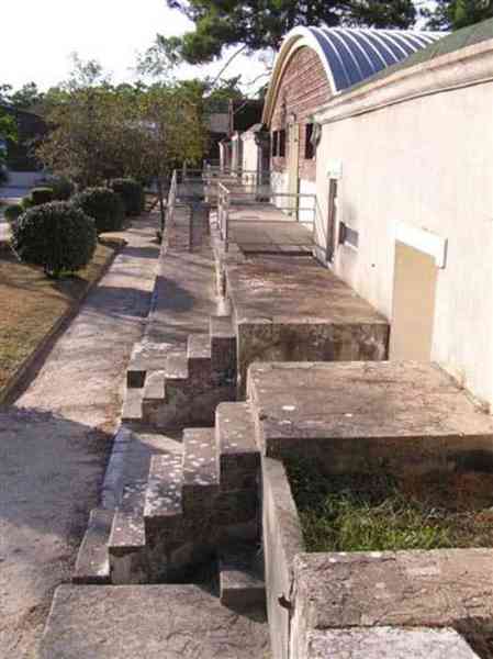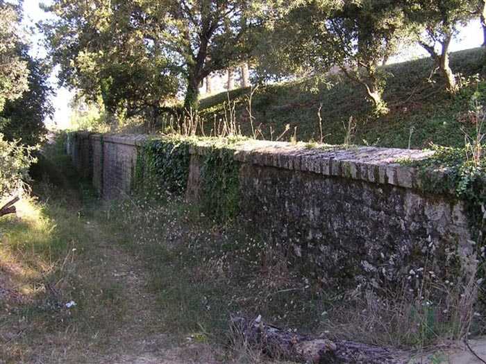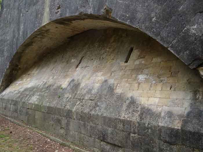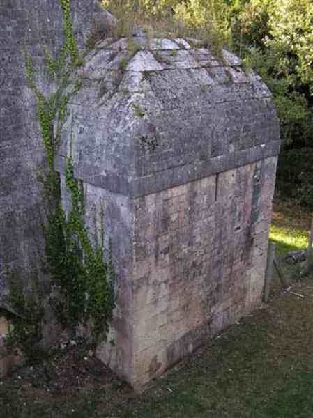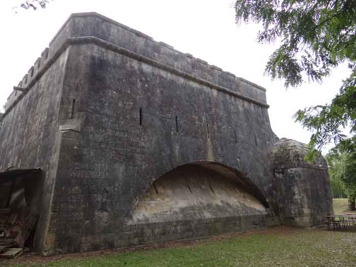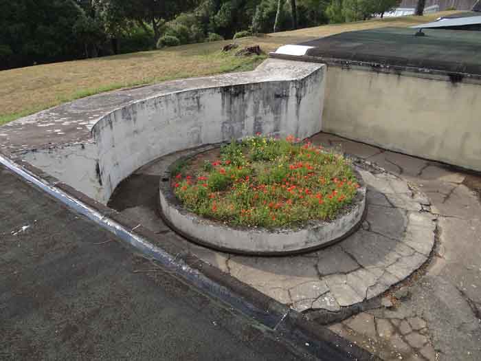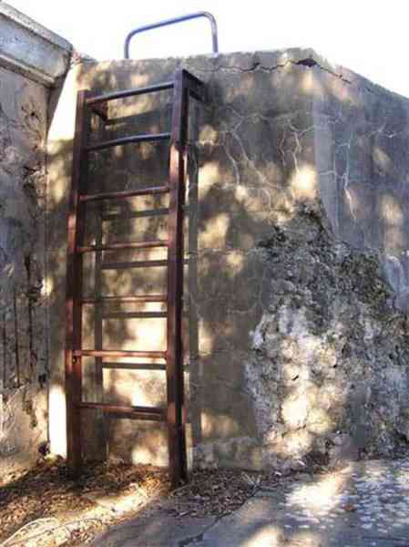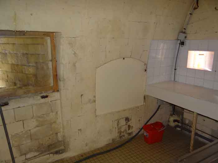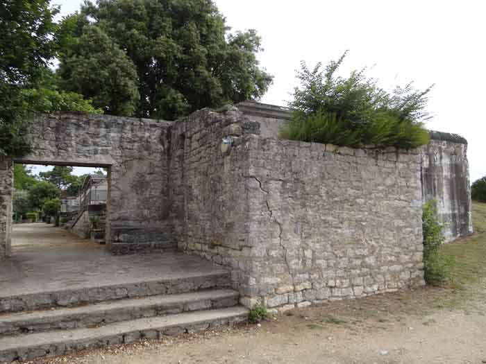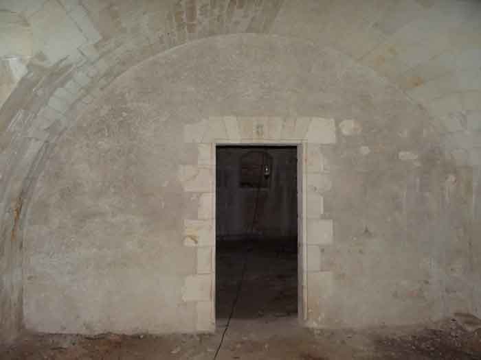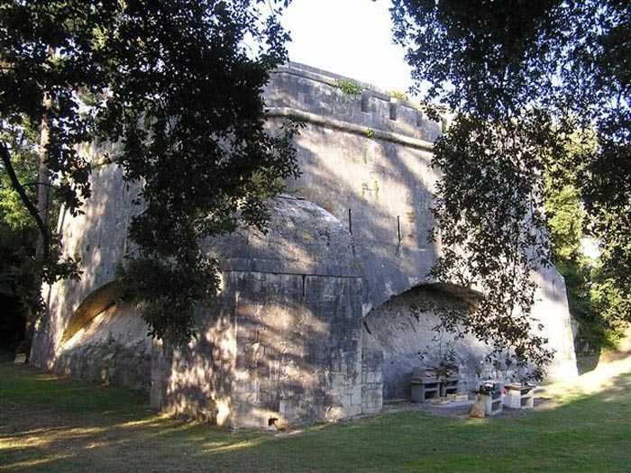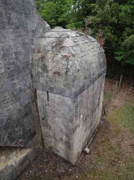 Fortress of Rochefort, north-eastern point of Oléron Island, 1877-1880. Bombardment battery found mentioned only once, and very succinctly. It is located behind the Pointe de la Perrotine. Provided with an enclosure with defensive bastionnets, it takes the shape of a large chevron, each branch of which was to accommodate between traverse-shelters, at least four guns. Its firing steps housed 24 c guns on P.C. mounts. One of the ladders allowing access to the top of the parapet is still sealed in an alcove. The concreted traverses, on the other hand, are completely disfigured. This concreting indicates that the fire crest was recast after 1889. The enclosure, with a semi-detached scarp (breast wall), remained masonry. The battery now houses (09/2007) a holiday center and it is advisable to request permission to enter. To the right of the battery, on the shoreline, was the interior and ignition post for the line of 47 bottom torpedoes that blocked, at the level of the Fort des Saumonards, the passage south of the Boyard shoal. This post was ideally to be doubled with a photoelectric post, but we do not know if anything remains of it. Finally, note to the rear of the battery a very curious tower Model 1811 No. 1 whose flanks are fitted with a single huge foot embrasure and to which two double caponiers have been added, placed on the same diagonal. The construction of this tower was hardly carried out at a rapid pace since started in 1812, one had to wait until 1849 to see it provided with its drawbridge and crowned with a crenellated parapet. This tower constituted the reduit of a battery, a battery which was succeeded by the new battery that motivated the writing of this present short article. The tower is still in very good condition today.