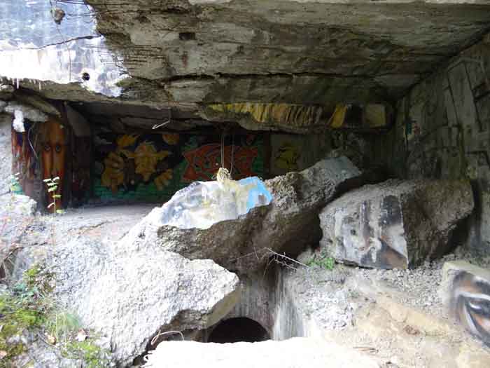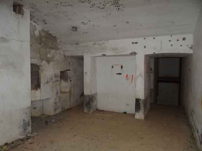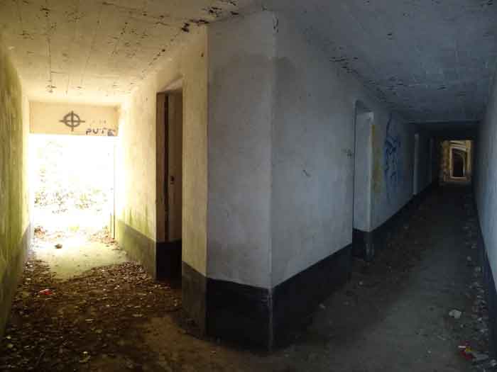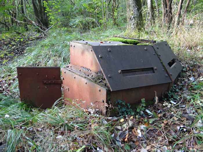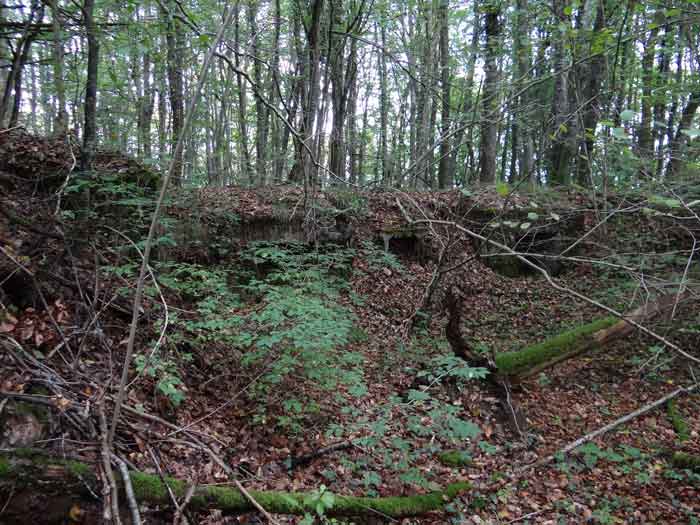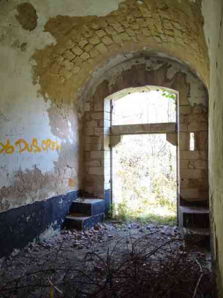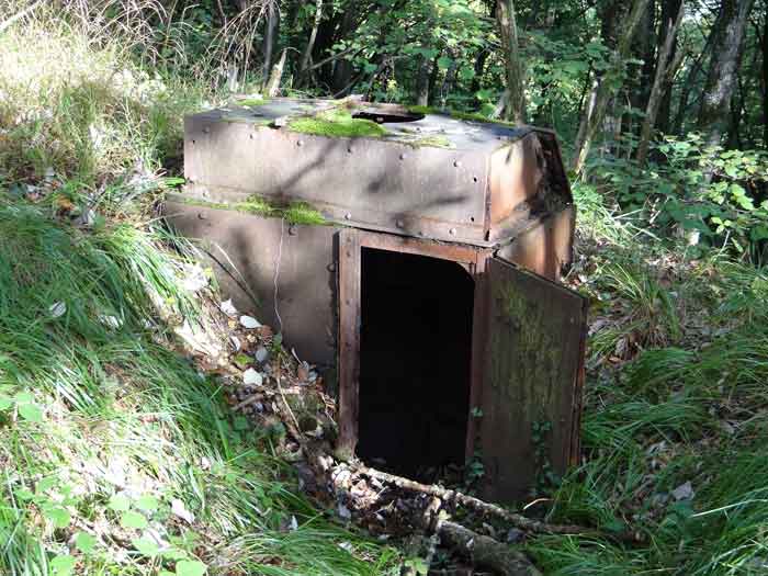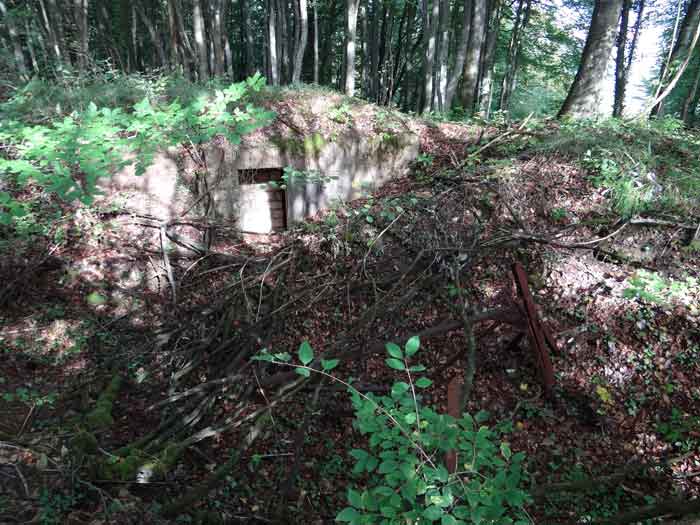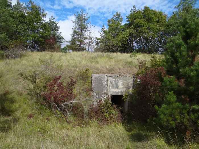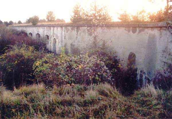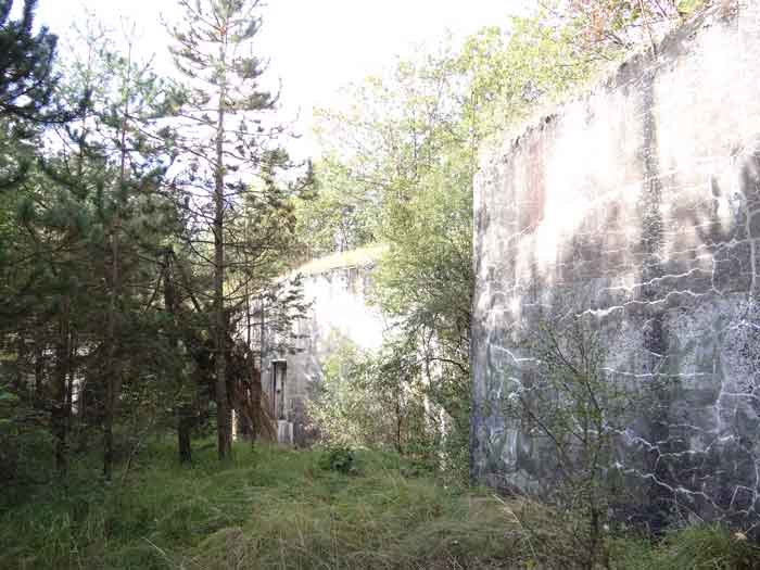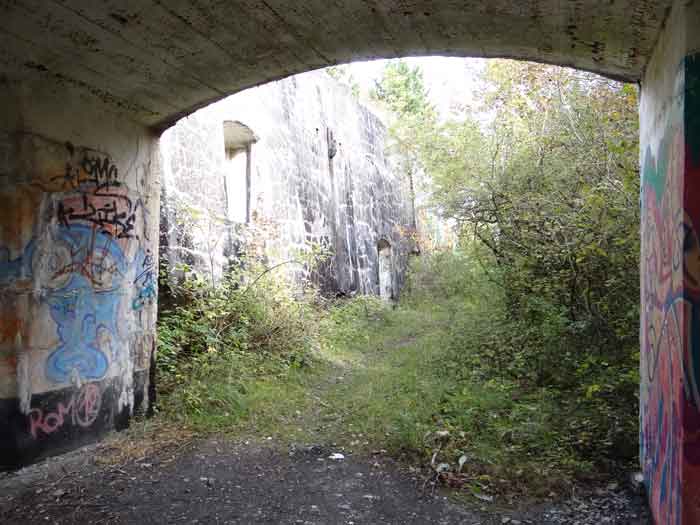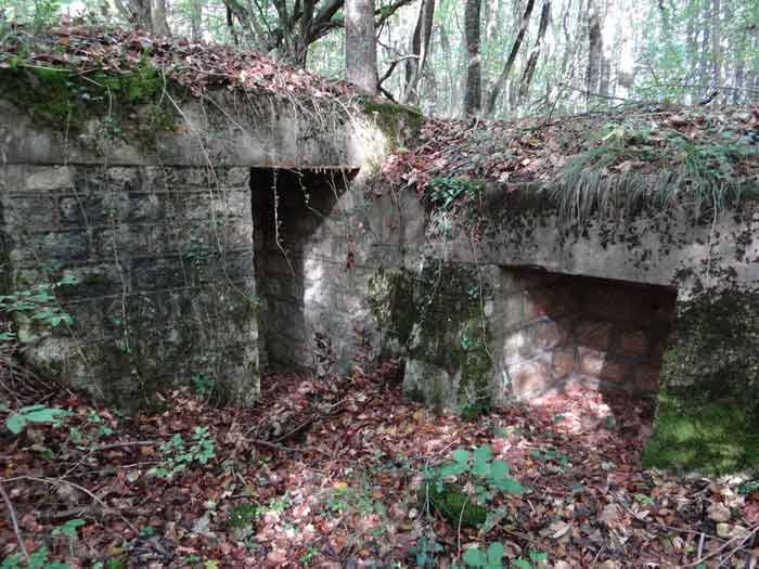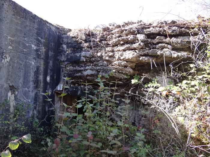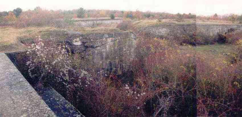 Toul fortified camp, NNW of the city, 1885-1887. 383 m/alt. Called fort Pully. The Bruley post was trapezoidal in shape, with fairly narrow lateral fronts, barely fifty meters wide. The barracks overlooking the gorge were preceded by a ravelin that served as a genuine half-moon. It aligned twice with four casemates separated by the entrance to the capital. To the right and left of this barracks, a small semicircular projection was responsible for defending the gorge. The defense of fronts I-II and II-III was entrusted to a double caponier at salient II, while that of front III-IV was entrusted to a wing at salient III. The capital of the post overlooked a covered passageway leading to a rampart street completely devoid of shelter traverses and even artillery platforms. It was therefore only an infantry redoubt. From 1904, the post was completely redesigned and transformed into a real fort. Only the barracks casemates were preserved, which were located right in the new perimeter of the fort, parallel to front II-III. The new fort, trapezoidal, became a parallelogram, the two lateral fronts being parallel. This being the head front being broken, we end up with five fronts. Only the gorge escarpment was concreted, those of the other fronts being made of flowing earth. On the other hand, the counterscarp of the other fronts was concreted while that of the gorge was made of flowing earth with a gently sloping ramp descending into the ditch at the height of the entrance. A defensive gate occupied the axis of the ditches. The entrance building is limited to very little: an entrance porch with a segmental arched vault and a defensive room to its left. After a bend, the entrance tunnel communicates with a new concrete barracks which was cast parallel to the III-IV front. Seven magazines/officer and non-commissioned officer barracks and three large troop barracks thus form a concrete mass in the center of the fort. From this mass one can reach all the organs of the head fronts by concrete ducts, in its view, from left to right: a single counterscarp box at salient II and an armored observatory beyond the old barracks preserved in its original state; a machine gun turret and a double counterscarp box at salient III; a 75 Mle 05 turret and a simple counterscarp vault at salient IV and, finally, a simple counterscarp vault at salient V. Only the Bourges casemate behind salient I and facing due south could not be reached without going into the open air. The overhaul was completed in 1907 and a final armored observatory was installed in front of the 75 turret. We visited it in November 1996 and it was already in quite poor condition and all its vaults having been used for explosives tests no longer had a facade. That being said, the taggers had spared it. According to the latest news (07/2007) it is still abandoned and in addition to a profusion of ungodly tags, motocross is practiced there, which is probably not the most recommended activity for the preservation of the site.