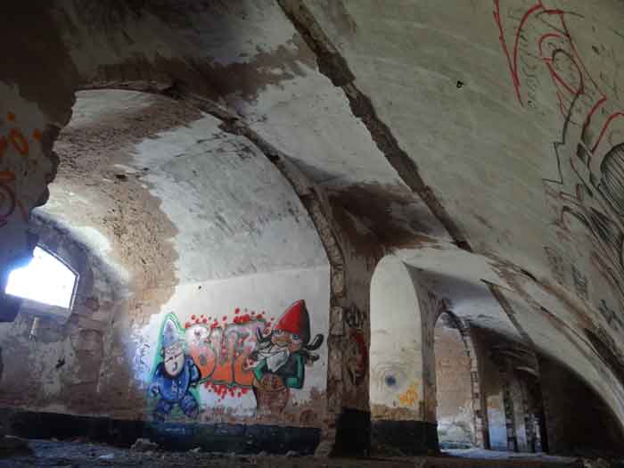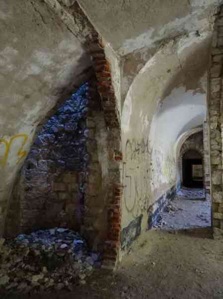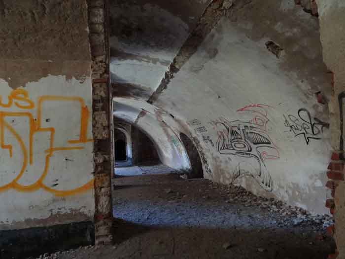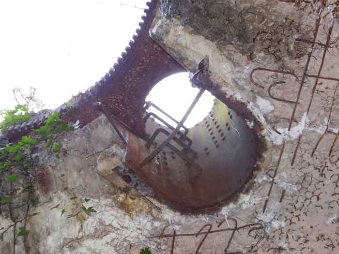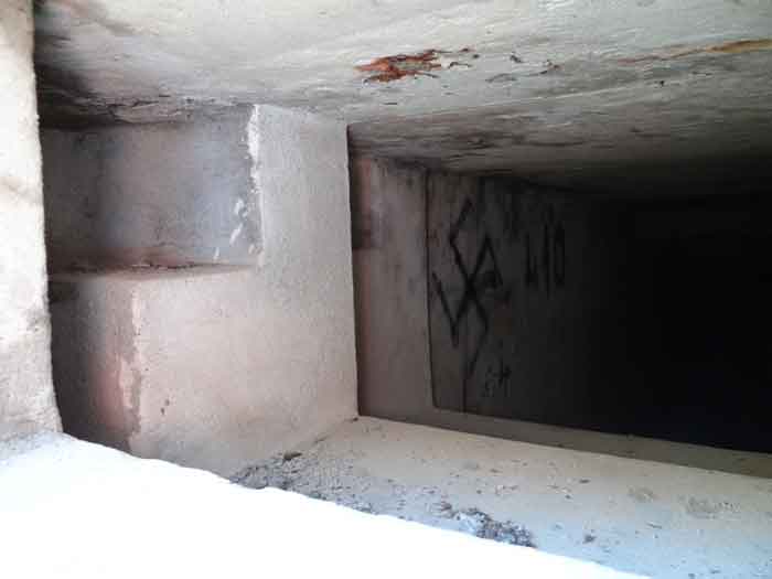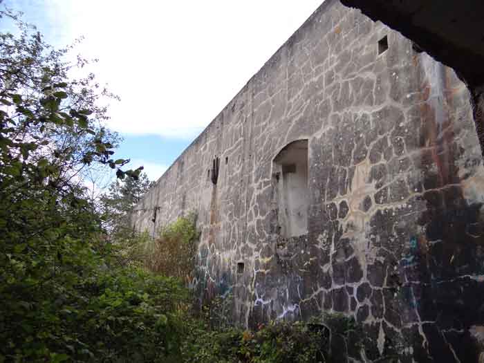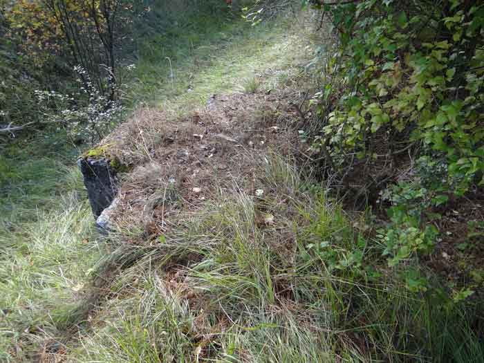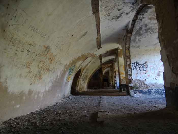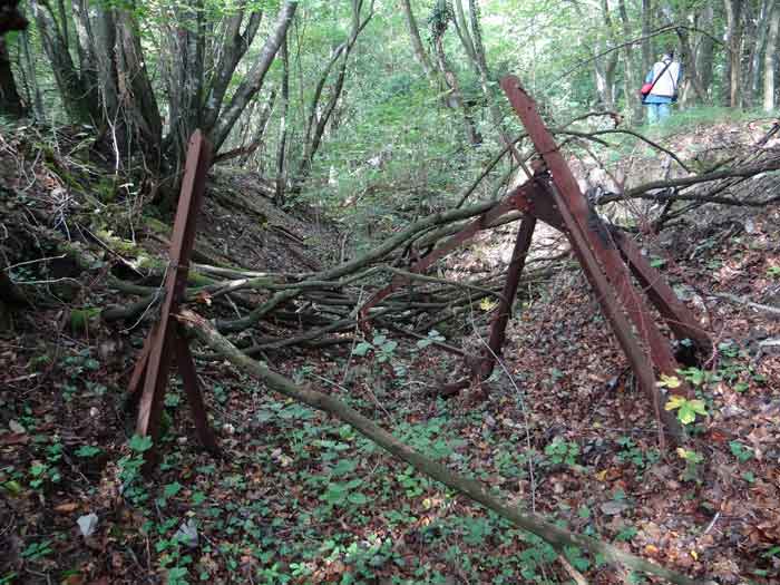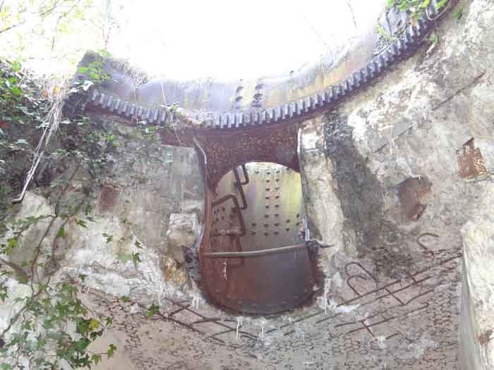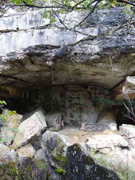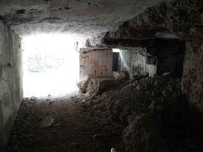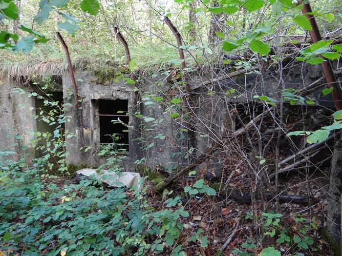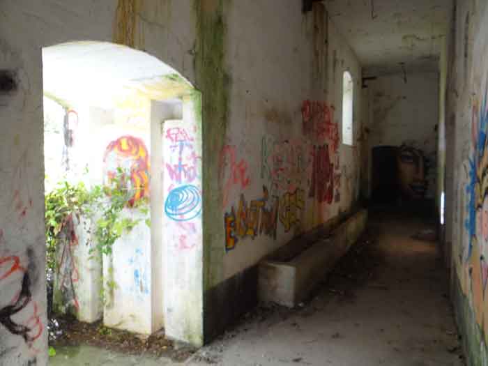 Toul fortified camp, NNW of the city, 1885-1887. 383 m/alt. Called fort Pully. The Bruley post was trapezoidal in shape, with fairly narrow lateral fronts, barely fifty meters wide. The barracks overlooking the gorge were preceded by a ravelin that served as a genuine half-moon. It aligned twice with four casemates separated by the entrance to the capital. To the right and left of this barracks, a small semicircular projection was responsible for defending the gorge. The defense of fronts I-II and II-III was entrusted to a double caponier at salient II, while that of front III-IV was entrusted to a wing at salient III. The capital of the post overlooked a covered passageway leading to a rampart street completely devoid of shelter traverses and even artillery platforms. It was therefore only an infantry redoubt. From 1904, the post was completely redesigned and transformed into a real fort. Only the barracks casemates were preserved, which were located right in the new perimeter of the fort, parallel to front II-III. The new fort, trapezoidal, became a parallelogram, the two lateral fronts being parallel. This being the head front being broken, we end up with five fronts. Only the gorge escarpment was concreted, those of the other fronts being made of flowing earth. On the other hand, the counterscarp of the other fronts was concreted while that of the gorge was made of flowing earth with a gently sloping ramp descending into the ditch at the height of the entrance. A defensive gate occupied the axis of the ditches. The entrance building is limited to very little: an entrance porch with a segmental arched vault and a defensive room to its left. After a bend, the entrance tunnel communicates with a new concrete barracks which was cast parallel to the III-IV front. Seven magazines/officer and non-commissioned officer barracks and three large troop barracks thus form a concrete mass in the center of the fort. From this mass one can reach all the organs of the head fronts by concrete ducts, in its view, from left to right: a single counterscarp box at salient II and an armored observatory beyond the old barracks preserved in its original state; a machine gun turret and a double counterscarp box at salient III; a 75 Mle 05 turret and a simple counterscarp vault at salient IV and, finally, a simple counterscarp vault at salient V. Only the Bourges casemate behind salient I and facing due south could not be reached without going into the open air. The overhaul was completed in 1907 and a final armored observatory was installed in front of the 75 turret. We visited it in November 1996 and it was already in quite poor condition and all its vaults having been used for explosives tests no longer had a facade. That being said, the taggers had spared it. According to the latest news (07/2007) it is still abandoned and in addition to a profusion of ungodly tags, motocross is practiced there, which is probably not the most recommended activity for the preservation of the site.