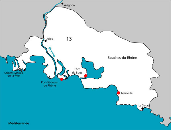 In het hart van de Franse Middellandse Zeekust behoort Bouches-du-Rhône tot de meest versterkte departementen van het land. Marseille, de belangrijkste oorlogshaven van de Middellandse Zee, bezit een uitgebreid netwerk van verdedigingen, gaande van de batterijen op de eilanden Frioul en het Château d’If tot de posities van de zuidelijke rede en de Kaap Croisette. Verder naar het westen omvatten de gebieden rond Bouc, het Étang de Berre en de Golf van Fos talrijke kustbatterijen, posten voor maritieme controle en werken die de Rhône-sector en strategische landroutes moesten beschermen. Het achterland – van de Alpilles tot de vlakte van Arles – vult dit geheel aan met vooruitgeschoven posities, redoutes en waarnemingsposten die meer dan een eeuw kust- en binnenlandse verdediging weerspiegelen.