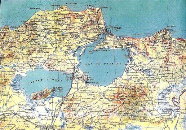 Schließlich werden 6 Flugabwehrbatterien, bewaffnet mit Kanonen 75 mm CA Mle 22-24, die Luftverteidigung sicherstellen, verstärkt durch 2 Batterien 90 mm CA Mle 32 SM. Alle diese Materialien werden von den Achsenmächten im November 1942 erbeutet. Diese werden bei ihrem Abzug alles zerstören, außer 4 der 6 Batterien 75 mm Mle 22-24 und den Batterien 90 mm. Nach dem Krieg, aus dem sie ruiniert hervorgeht, wird Bizerte, wiederaufgebaut und modernisiert, Hauptstützpunkt der Flotte. In der Atmosphäre des Kalten Krieges wird die Batterie des Remel mit 4 Kanonen 105 mm SKC 32 neu bewaffnet. Die strategischen unterirdischen Anlagen des Kébir und des Meslem bleiben unvollendet. Nach dem gescheiterten Gewaltakt von Präsident Bourguiba im Juli 1961 verlässt Frankreich Bizerte am 15. Oktober 1963 und setzt damit einer 82-jährigen Präsenz ein Ende, die die Landschaft endgültig verändert hat. Heutzutage werden die ehemals französischen Anlagen praktisch alle von der tunesischen Armee genutzt, und Besuchsgenehmigungen sind quasi unmöglich zu erhalten. Eine Brücke mit zentraler Hubklappe wurde über den Kanal gebaut, die den Albtraum von Admiral Ponty materialisiert… JJM 14/10/07