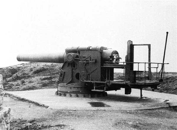 Bizerte, used intensively, particularly to support the Army of the Orient, emerged practically consumed from the conflict, and as early as the 1920s the problem of its modernization and rearmament arose. The organization of a land front, allowing to block infiltration routes, secure possession of observation posts and organize beach defense, was elaborated as early as 1928. The first constructions appeared in 1930, but it was from 1933 that the construction of the 6 support points, finally realized, really began. These resistance nests consisted of blockhouses for machine guns, concrete shelters and observation posts, quite similar to those built at the same time on the Mareth Line. It is quite remarkable to note that the one planned for the defense of the arsenal was, once again, postponed… Regarding the sea front, the carriage Mle 1901, having proven itself, was modernized by raising it to allow firing at 40°. It then took the name carriage Mle 1901-21. With it, range reached 13 500 meters with the P shell, and 17 500 meters with the FAD shell. But the long trajectory duration, due to the low muzzle velocity, made the shell sensitive to wind and accuracy insufficient. Nevertheless, 3 batteries were re-equipped with 4 of these materials each: Rara, El Euch, Ben Negro and one with 2 materials, Djenane. This while awaiting a modern main artillery battery armed with 340 mm Mle 12 guns, which would be El Metline. The 3 remaining materials would arm the Canastel battery in Oran. Four secondary artillery batteries, armed with 164 mm Mle 1893-96 M guns, would also be realized: