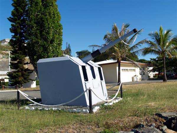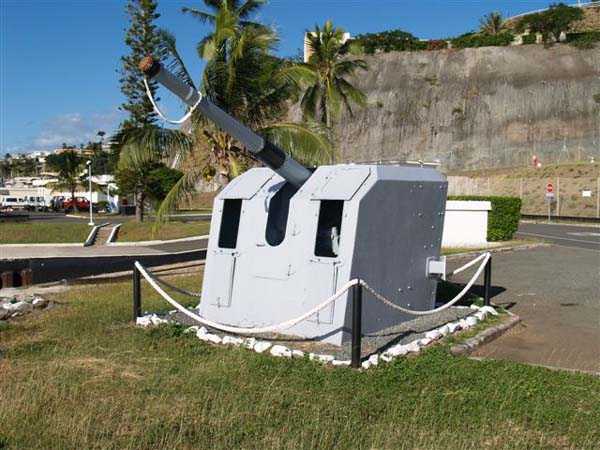 Nouméa. This battery was established in the centre of Îlot Brun at level 44. Armed, like the Pointe Picard battery, with 2 16 cm guns Mle 1858-60 on carriage Mle 1847, it was one of the three originally defending the entrance to the small roadstead. It faces the Pointe Desnouel battery. It was downgraded in 1896, and there was talk for a while of rearming it with 4 16 cm guns Mle 1881. This project was not followed up. Nowadays, Îlot Brun has been joined to Pointe Chaleix, and the whole area houses the naval base of Nouméa. The work on Îlot Brun is inaccessible as it houses sensitive facilities of the French Navy. But satellite images show a completely transformed and levelled site where there is probably not much left to see. The guns have been recovered, unfortunately without their chassis, and stand guard at the foot of the naval base's flagpole. Notably, there is an unusual presence of a German 10.5 cm SKC/32 gun near the jetties, absolutely impeccable and equipped with its muzzle cover and aiming devices. JJM 30/06/07
