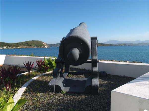 Nouméa. Diese Batterie wurde in der Mitte der Insel Brun auf Höhe 44 errichtet. Bewaffnet wie die Batterie der Pointe Picard mit 2 16 cm Kanonen Mle 1858-60 auf Lafette Mle 1847, war sie eine der drei ursprünglich den Zugang zur kleinen Reede verteidigenden. Sie liegt gegenüber der Batterie der Pointe Desnouel. Sie wurde 1896 außer Dienst gestellt, und es wurde eine Zeit lang erwogen, sie mit 4 16 cm Kanonen Mle 1881 neu zu bewaffnen. Dieses Projekt wurde nicht weiterverfolgt. Heutzutage wurde die Insel Brun mit der Pointe Chaleix verbunden, und der gesamte Bereich beherbergt den Marinestützpunkt von Nouméa. Das Werk auf der Insel Brun ist unzugänglich, da es sensible Einrichtungen der französischen Marine beherbergt. Satellitenbilder zeigen jedoch eine vollständig veränderte und eingeebnete Stelle, an der vermutlich nicht mehr viel zu sehen ist. Die Kanonen wurden geborgen, leider ohne ihre Fahrgestelle, und bewachen den Fuß des Flaggenmastes des Marinestützpunkts. Bemerkenswert ist die ungewöhnliche Präsenz einer deutschen 10,5 cm SKC/32 Kanone in der Nähe der Landungsbrücken, die absolut makellos ist und mit ihrer Mündungskappe und ihren Zielvorrichtungen ausgestattet ist. JJM 30/06/07