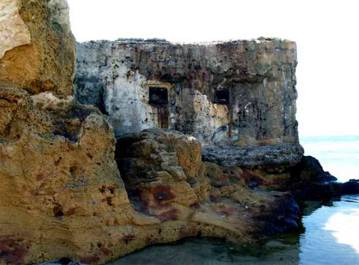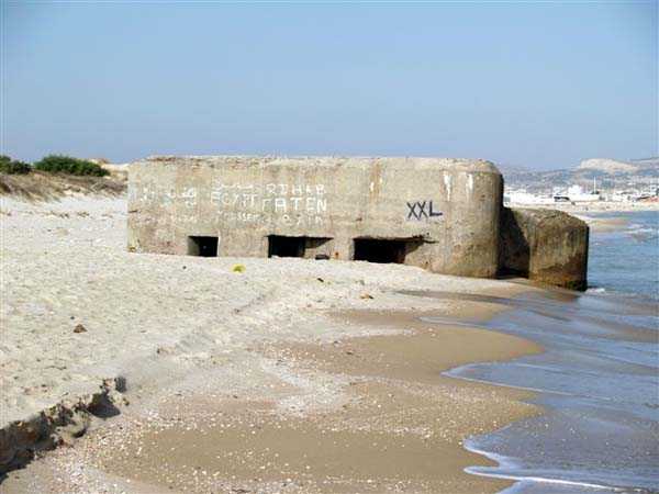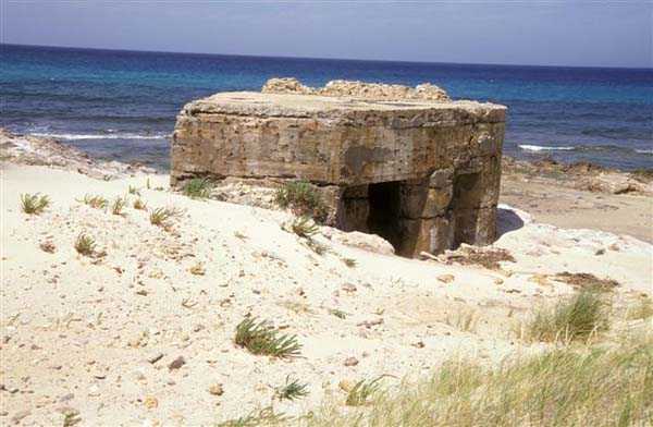Cinq casemates de plage sont réalisées, 4 pour la défense des plages de la baie de Bizerte, et une pour la défense de la plage de Béni-Ata, à l’Est du cap Zébib. Les liaisons téléphoniques sont assurées par une nappe aérienne circulaire à 3 circuits, avec coupure dans 2 centraux bétonnés, se bouclant au central protégé de Bizerte. Les câbles sont enterrés sur 250 mètres à la sortie des ouvrages. Quelques-uns de ces éléments, bien que pillés sans vergogne après, et même pendant la guerre, possèdent encore leur cuirassements.1914 umfasst die Bewaffnung der Landfront 74 Kanonen der Kaliber von 80 bis 120 Millimeter und 12 Maschinengewehre. Ein Teil dieser Bewaffnung ist installiert:
