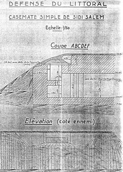 These works are proof against 2 superimposed hits of 155 mm shells, except those of Remel and Menzel-Djemil, built first, resistant to 2 superimposed hits of 105 mm shells. The casemates and blockhouses, with a volume of 250 to 30 m³ of reinforced concrete, do not include living quarters. They receive: