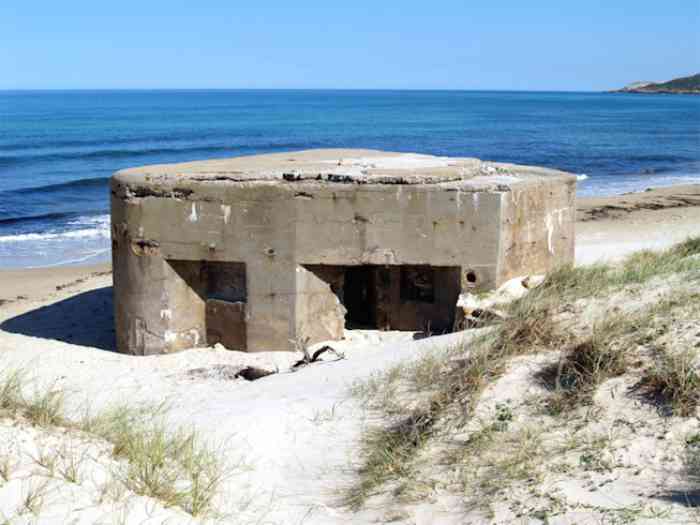 Five beach casemates are built, 4 for the defence of the beaches of the Bay of Bizerte, and one for the defence of the Béni-Ata beach, east of Cape Zébib. Telephone communications are provided by a 3-circuit circular overhead cable harness, with breaks in 2 concrete exchanges, looping back to the protected exchange in Bizerte. The cables are buried for 250 metres at the exit of the works. Some of these elements, although shamelessly looted after, and even during, the war, still possess their armours.V roce 1914 zahrnuje výzbroj pozemní fronty 74 děl ráží od 80 do 120 milimetrů a 12 kulometů. Část této výzbroje je instalována: