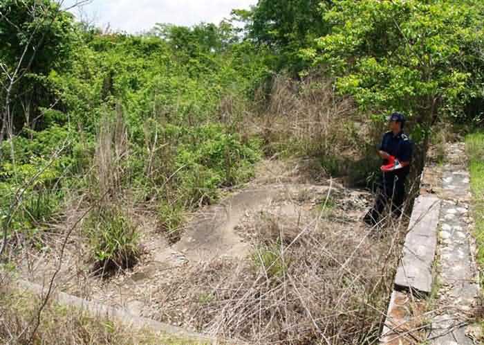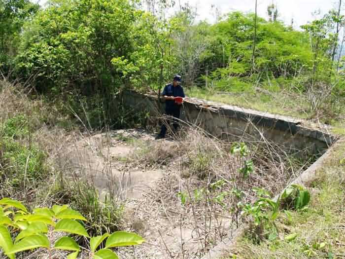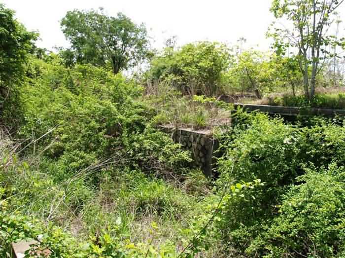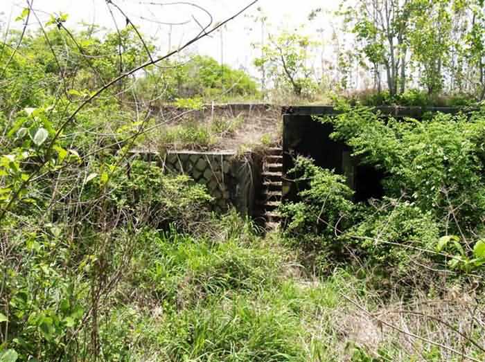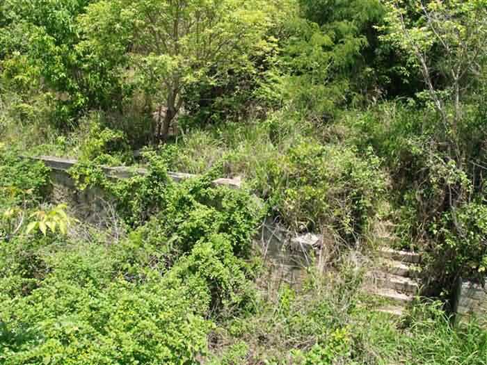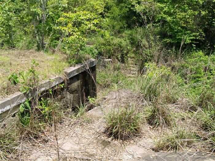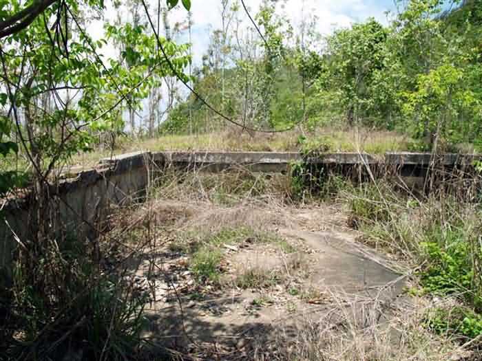 …or of Ban Dinh, Cape Saint-Jacques. Support battery for the land front, located north of the Grand Eperon, at an altitude of 165 metres. It is a masonry work, armed in 1912 with four 14 cm M guns Mle 1881 on M carriage Mle 1897 PC, placed in two emplacements, flanked and separated by traverse shelters. The work was disarmed during the First World War, and its equipment sent back to mainland France. It was rearmed in 1940 with 4 90 mm guns Mle 1877 on carriage Mle 1916, and remained in service until 1945. Nowadays the work is still visible, although very overgrown. JJM 03/07/2008