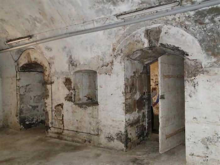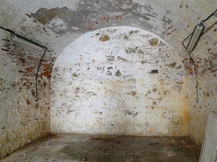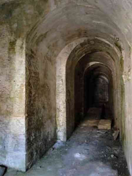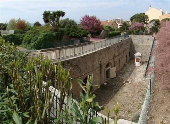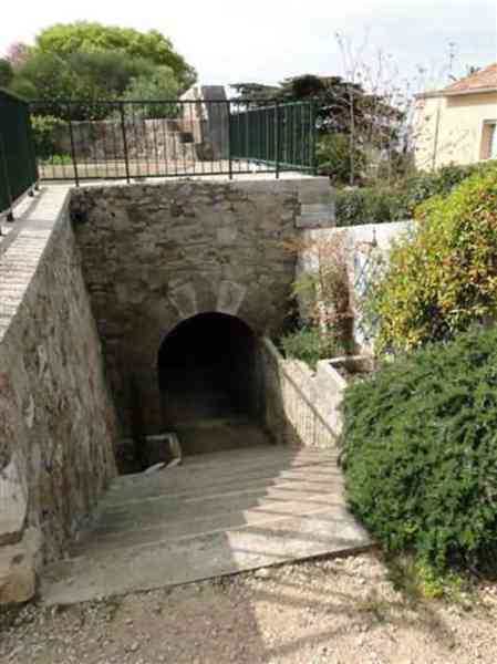 Fortress of Toulon, south-east of the city. 20 m/alt. 1707: The Savoyards overcome the resistance of Saint-Louis fort, protecting the Vignettes roadstead, by firing cannons from the heights of Lamalgue. Taking advantage of this unfortunate experience, a fort was built precisely on this height (42 m alt) between 1738 and 1764. Facing the naval means that an adversary could henceforth deploy, Fort Saint-Louis, with non-extendable footprint, had all the appearance of a bird for the cat. Perpendicular to the south face of bastion 4 of the new Lamalgue fort, i.e., straight towards the sea, a detached work with ditches was established, occupying the entire width of land between fort and sea. Facing east, this detached organ presented a series of five artillery platforms, in steps, spread over the natural slope. Facing the waves, thus at right angles to the five platforms, a coast battery, intended to support the action of Saint-Louis fort, was arranged and completed around 1780. Its main fire crest, for 12 cannons of 24 quickly replaced by as many caliber 36 (pounds ball) is located above a terrace where two mortars were placed, terrace completed in 1783. A classic powder magazine for the era, with three masonry buttresses on each of its flanks, will occupy a pit dug to receive it, directly behind the coast battery. Thus housed in a hollow, it was protected from direct hits whether they came from the sea or an army approaching from the east. This hollow extended in front of the magazine by an alignment of two pairs of barracks separated by the underground communication corridor with the mortar emplacement. Another underground passage, higher in the detached organ, allowed reaching the fort itself. In the mid-19th century, the armament state will vary again and the powder magazine will be remodeled a first time more or less according to the directives of model 1868. For this, the floor will be raised to provide ventilated voids under the storage room and the external buttresses will henceforth be enclosed in covered lateral galleries. A wall will be erected in front of the magazine entrance, forming an entrance lock. The width of the courtyard does not allow seeing the left lateral gallery and the right lateral gallery will be closed on the facade, as a cut stone attests, only in 1878. The lateral buttresses which, on old plans, are not attached to the pit walls, seem to have been reduced and now present a summit arch connecting them to the external walls of the envelope. The unique lamp embrasure could date from the first modification of the magazine and the chamber from which the lamp was serviced has a width of about two meters. This chamber received in its center a particularly thick buttress in the hollow of which the lamp embrasure was pierced as well as the bottom of the inevitable light shaft. We note that this buttress is absent from the first plans of the battery. Finally, the storage room, with approximate dimensions of 12 x 6 m, with barrel vault and two barbicans per flank, should have been able to contain at least thirty tons of powder. Obviously, if, in 1878, one takes the trouble to retouch the powder magazine, it is because the battery enters the new defense plan of the Toulon roadstead, plan implemented from 1876. Above the barracks, the artillery crest will be transformed into a succession of four firing platforms separated by three hollow traverses. The parapet thresholds now peak at level 20.40 m and the trunnions of the 32 c Mle 1870-81 guns were at 21.28 m (piece no. 2 – only available data). These four guns and the two, of the same caliber, of the Grosse Tour battery, thus constituted the entirety of the breakthrough firing device of the north shore of the roadstead. Later, on the lower terrace, which occupies only the left third of the battery front, a battery for two 65 mm quick-fire pieces will be arranged (parapet at level 16.20 m). The observation and command post of the breakthrough battery will be cast on the lowest of the five platforms facing east. Today (04/2010) it must be stated that this battery has become discreet; to such an extent that it was omitted from the first edition of our Index of French Fortification 1874-1914. It constitutes in a way the garden of a building of luxurious apartments within a fenced perimeter. The entrance to the residence is located precisely at the same place as the entrance to the battery, Rue du Capitaine de Vaisseau Renon. The green spaces and the building prevent distinguishing the important vestiges still present. As for important vestiges, except for the command post, sacrificed under the building, the razed 65 mm battery and the most eastern firing platform occupied by a swimming pool, the entire infrastructure is present. The sunken courtyard, with the well, its barracks and the powder magazine are intact. Let's note in passing that barracks room no. 2 (from left to right when facing the barracks) is adjacent at the rear to a carefully ventilated room that could have been a food store. The three traverse-shelters, half sunk into the ground, cap the whole; inside each of them there are two lateral niches of little depth; far too little to claim to be dealing with traverses Mle 1879 whose characteristic is to have two lateral abutments on the facade. The firing steps have been modified for the needs of the residence, but remain perfectly readable. The underground passage from the barracks to the lower platform has been blocked and replaced by another under the western platform. The 65 mm battery has given way to a volleyball court, but the impressive south scarp retains its deterrent role, lined by the coastal road Frédéric Mistral, road from which the profile of the eastern ditch can be perfectly distinguished. Before the erection of the residence, scouts occupied the battery as evidenced by numerous wall drawings. It is too rare to be passed over in silence, the courtyard is paved with beach pebbles ranging in size f