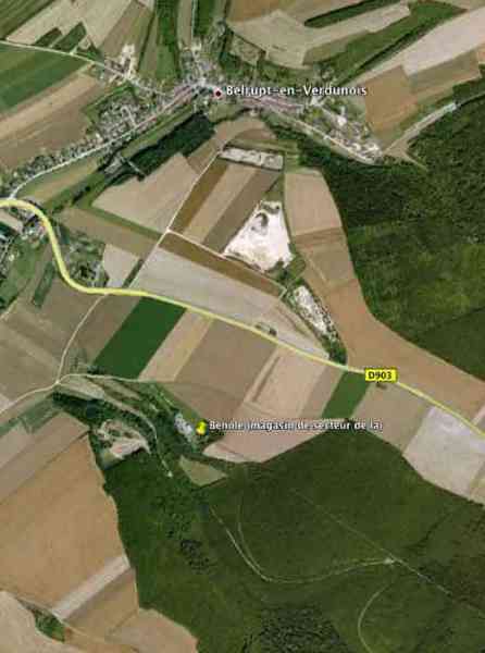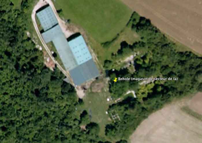 Verdun fortified camp, southeast of the city. 265 m/alt. Sector store 1500 m northwest of the Saint-Symphorien fortification. Coded M4. It has two entrances located at the end of a trenched alley. The one on the right is preceded by a guardhouse on its left. Each entrance has its vault highlighted by an arch of pipes. The interior is in very good condition and the large firework niches even have their wooden doors (12/2005). Sometimes spelled "Béholle". Private property.