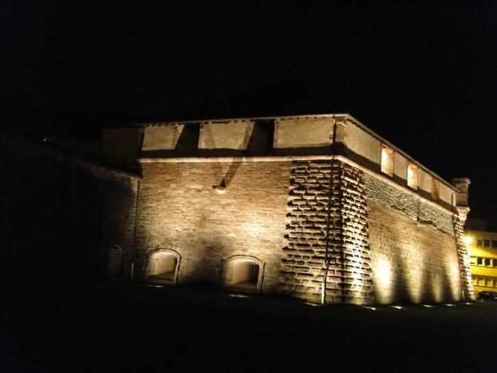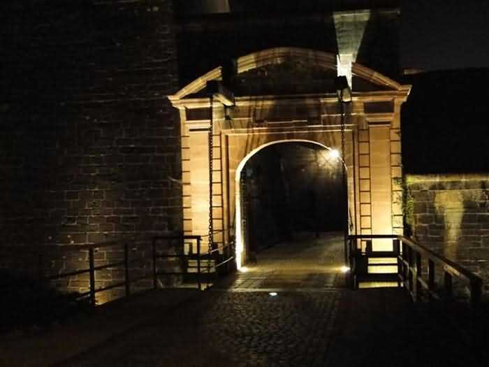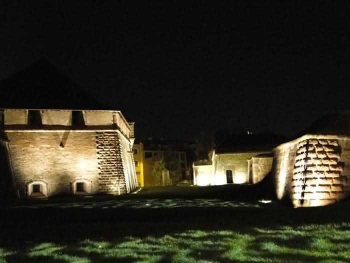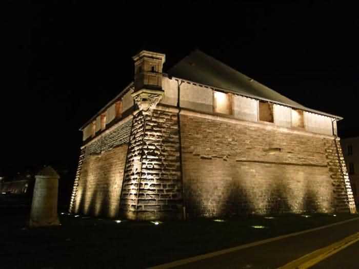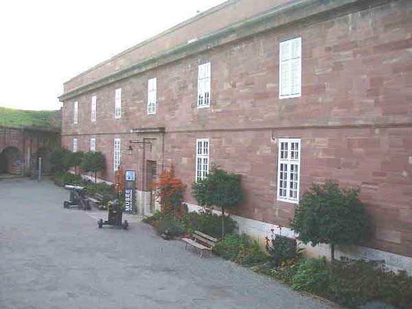 Westliche Mitte des Platzes, ± 420 m ü. M. Es ist nicht unsere Absicht, hier das unschätzbare Erbe des Schlosses Belfort und seiner Mauern zu beschreiben. Von der ersten Festung aus dem frühen 13. Jahrhundert ist nur noch der Bürgerturm erhalten. Die verschiedenen Mauern stammen aus dem 17. Jahrhundert, und das Schloss wurde von 1819 bis 1827 von Haxo umfassend umgebaut, was dazu führte, dass die Stätte von der UNESCO-Welterbe-Nominierung ausgeschlossen wurde … mit der Begründung, Vaubans Werk sei nicht mehr ausreichend sichtbar. Noch weniger bekannt ist, dass das Schloss ausgewählt wurde, um tiefe Pulvermagazine zu beherbergen, die 1877 gegraben wurden (siehe Schlossmagazine). Was für eine Ketzerei! Was einige Puristen ablehnen, ist nichts anderes als das Zeugnis des militärischen Wertes einer Stätte über fast ein halbes Jahrtausend. Stellen Sie sich das vor … Dieses Schloss galt als die Festung des Ortes, auch wenn es wahrscheinlich mehr oder weniger waffenlos war. Der Gouverneur des Ortes wohnte dort, und es gab ein wichtiges optisches Kommunikationsrelais, von dem wir nichts wissen, weder seinen genauen Standort noch seine Konfiguration (kasemattenartig oder nicht?). Während unseres Besuchs (10/2007) wurden wir auch auf eine Artillerieplattform aufmerksam, deren Brüstung aus vorgefertigten Betonelementen besteht. Diese Elemente stammen aus der Zeit um 1880, und die damit ausgestattete Plattform ist keine andere als die, die vom zweiten Gehege aus die vierfache Haxo-Kasematte des dritten Geheges überragt, eine Kasematte, die senkrecht die Zugänge zur Zufahrtsstraße zum Schloss flankiert. Die Plattform ist schmal, kaum acht Elemente, und konnte nur von einer 80-, 90- oder 95-mm-Kanone besetzt werden, aber war sie bewaffnet? Warum nicht auch die vier Kasematten bewaffnen? Die Verteidigung konnte nur davon profitieren. Leider verhindern die Restaurierung dieser Kasematten und das Verlegen von Fliesen nun, dass jede Spur einer möglichen Bewaffnung entdeckt werden kann. Also eine Artilleriestellung oder ein einfacher Aussichtspunkt aus verfügbaren Materialien? Wir haben keine Antwort, außer dass wir feststellen müssen, dass hier kaum eine Kanone im Einsatz war. Wir hatten nicht die Zeit, alle Grate des Geländes zu erkunden, aber man versicherte uns, dass nur diese Plattform solche Merkmale aufwies. Die in diesem Verzeichnis aufgeführten Sehenswürdigkeiten liegen abseits der Touristenroute, aber die architektonischen Schätze des Schlosses sowie das dort untergebrachte Kunst- und Geschichtsmuseum sind zweifellos einen Besuch wert. Besucher sollten es nicht versäumen, unweit des Schlosseingangs die Porte de Brisach und ihre seltene Zugbrücke à la Lacoste zu bewundern.