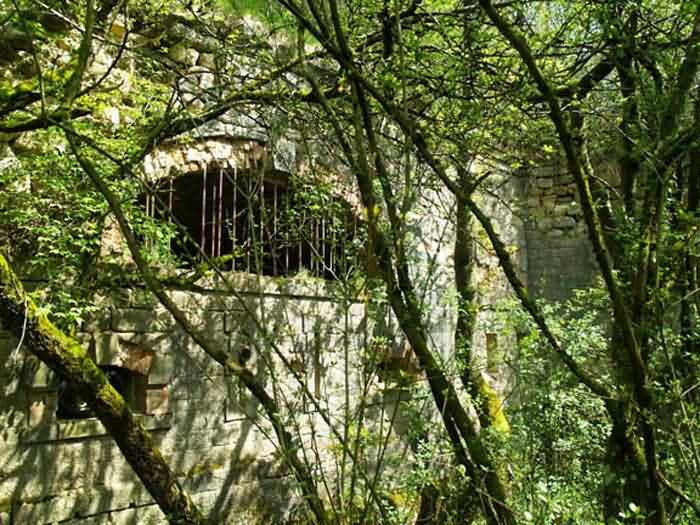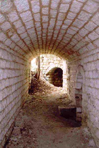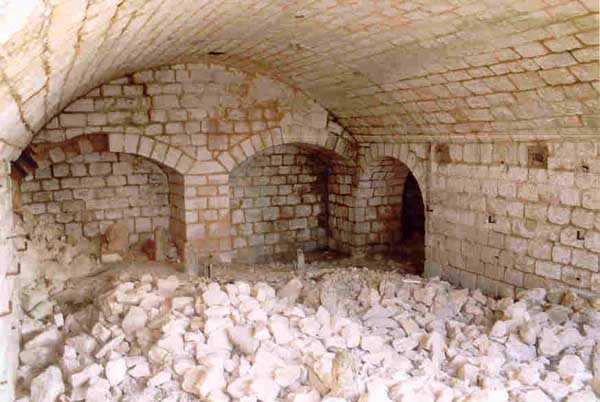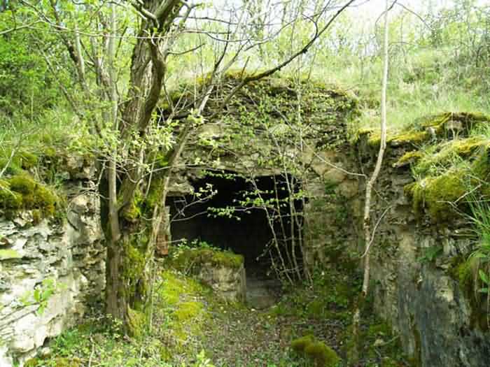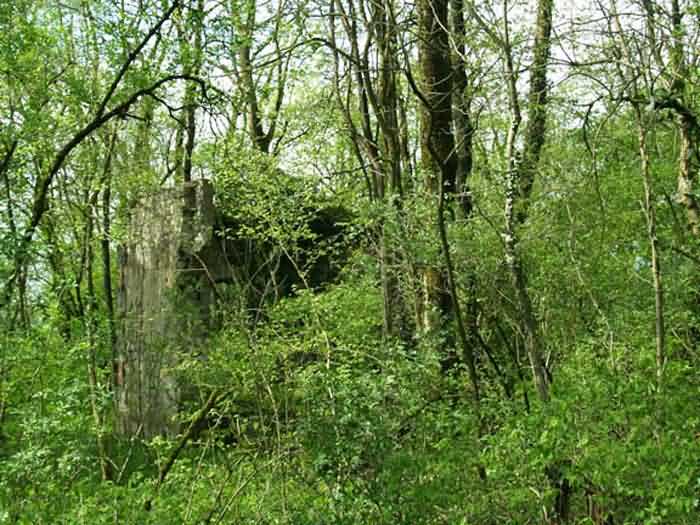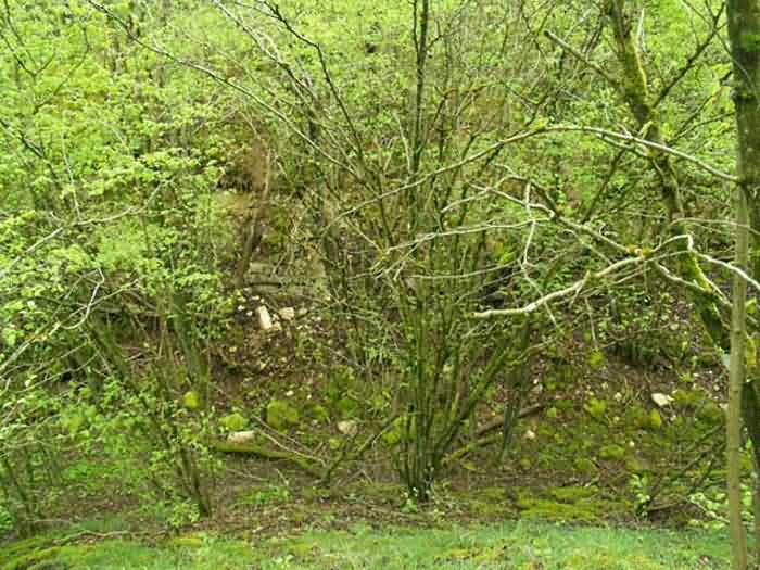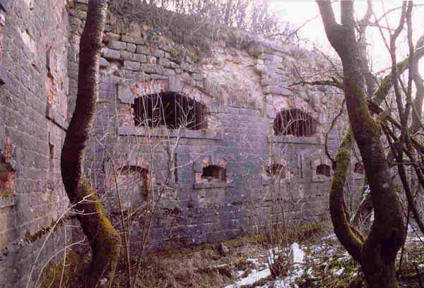 Verdun fortified camp, northwest of the city, 1883. 293 m/alt. Called Brayer post. Small trapezoidal structure, with a retracting gorge, intermediate between the forts of Marre and Vacherauville. In fact, it is only the central component of a set of two batteries linked together by the post itself, which functions as a redoubt. The whole is open at the gorge. On this side, only the post has a curtain wall in the center of which was its entrance. The back of the curtain wall, apparently without a ditch, is composed of six crenellated rooms and the wing returns of the curtain wall are similarly provided with rooms pierced with firing loopholes. In the center of the structure, there is a powder magazine and other artillery rooms, one of which has its lamp crenelation placed in a corner. The flanks and the front of the post are preceded by dry ditches defended by a wing at salient II and a double caponier at salient III. In fact, to ensure defense as close as possible to the redoubt and separate it from the right battery, it was necessary to cut through salient IV and thus establish a fifth small front, defended by a wing. Our trapezoid is therefore, in absolute terms, an irregular pentagon. The firing ridge of the post only includes a simple infantry parapet and no traverse. A gallery running alongside the powder magazine (with three lamp crenelations on the same line) and the artillery magazines allows cover to pass from one side of the front to the other. The caponiers are very small, intended only for rifle fire, and the double caponier has had its faces considerably thickened by internal reinforcement. The action of the double caponier extended in front of the right annex battery. The latter comprises three double platforms bordered on their left by a shelter traverse. This description applies to the left annex battery, except that the latter ends on the left with an infantry parapet providing flank protection, facing west. The rear of this trio consists of a wide esplanade, completely open to the south, onto which the cannons were moved, which, as you will have understood, were supplied by the post's stores. Today (03/2005) the structure is submerged in relatively dense and thorny vegetation. In winter, however, it still displays some beautiful remains. The entrance is certainly collapsed and the damage is serious, but the rooms to the right of the entrance are still accessible, as is the kitchen to the left of the curtain wall. The magazines in the center of the post are certainly cracked, but still valiant, as are the caponiers, chipped but still there. Only the interior of the wing of salient II could not be visited, the access gallery having collapsed. The infantry ridge has been equipped, behind salients II and III, with removable observatories. Both are in place, but only the one on the left is still presentable. Such observatories have become very rare and, to our knowledge, they are the only ones visible on a fortification. Other examples exist in the parking lot of the hill of Vauquois-en-Argonne, or at the private museum of Notre-Dame de Lorette. They are literally metal discs about twenty cm high, equipped with carrying handles. Each is made up of armor plates separated by a void, a void that was filled with pebbles, sometimes combined with pitch, once the stacking was complete. The upper element is pierced with observation slits. In 1916, the whole was targeted by several thousand projectiles, ranging from 77 mm to 210 mm and compared to this deluge, the damage does not seem to be that significant. During 1917, a deep network of galleries was dug with a concrete access about fifty meters behind the redoubt. This network would extend over 659 meters and communicate with a Pamart bell which covers a stump of the traverse of the left battery. Completely abandoned, the structure is, as usual, preceded by signs prohibiting movement. We have several times enjoyed taking our lunch from the bag onto its glacis where we can find Ophrys sphegodes in particular.