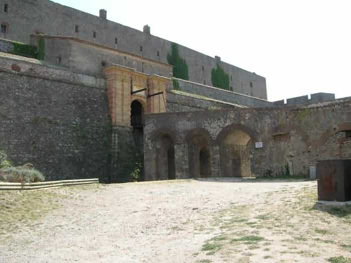 Dépt 66 (Pyrénées-Orientales) 420 m/alt. Vieux fort bastionné implanté au col du Perthus (270 m/alt), sur la frontière franco-espagnole. Imposant et bien dégagé, le fort comprend un grand réduit relié par un chemin couvert, lui-même protégé par l’enceinte, à une redoute positionnée un peu plus en contrebas (402 m/alt). L’entrée principale donne sur un escalier rampe très large, ce qui fait que les marches débordent latéralement des rampes. La redoute inférieure est actuellement délaissée et son casernement tombe en ruines. Il faut noter un très beau puits au centre de la cour de cette redoute. Voulquin ne le cite pas comme ayant été déclassé avec les autres ouvrages des Pyrénées, par la loi du 24 juin 1907, pas plus que les archives des déclassements antérieurs qu’il nous a été loisible de consulter. Des photos qui nous en ont été rapportées (10/2005), il nous a été impossible d’y déceler des éléments de modernisations postérieures à 1874.