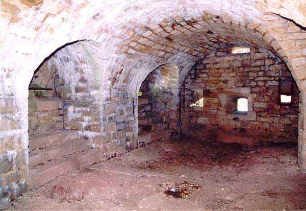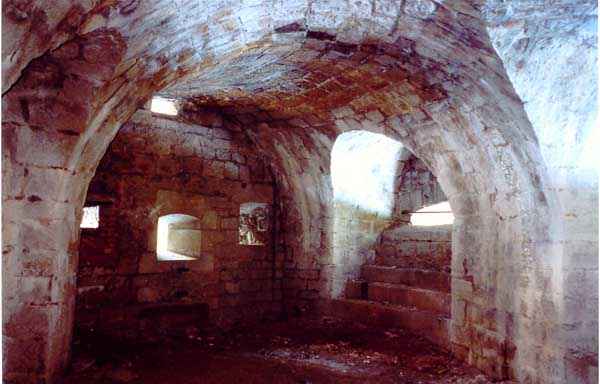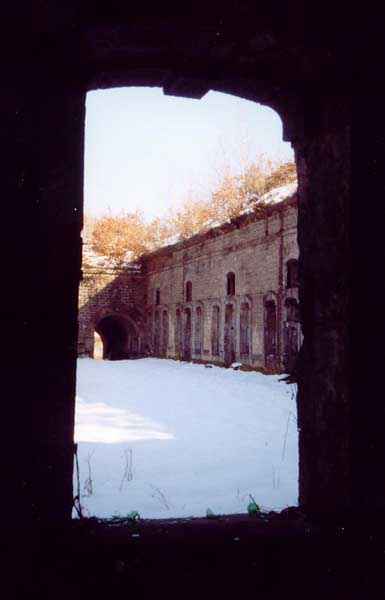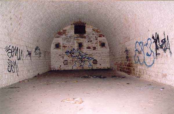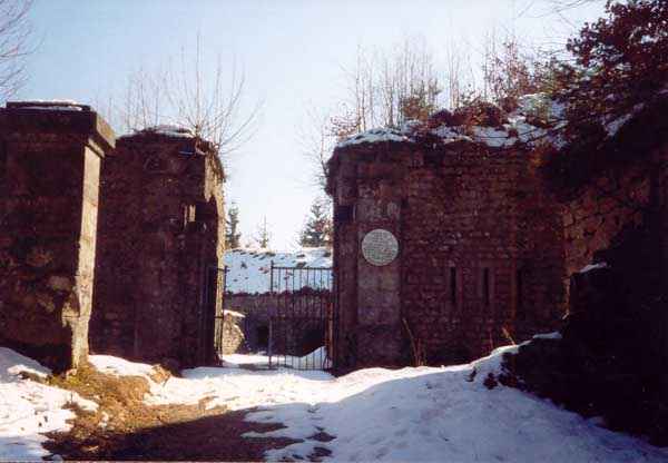 Entrenched camp of Épinal, south of the city, 1880-1882. 523 m/alt. 230 men and 24 guns including 5 machine guns planned from the drafting of the technical sheet of the Engineers in 1880, and this in addition to five 5 or 7 guns. The rest of the armament included 8 x 120 L, 2 x 155 L and 4 smoothbore 22 c mortars. Called fort Bizot. Small fort in the shape of an irregular pentagon with a broken groove. The defense of the perimeter was entrusted to two double caponiers (salients II and IV); The gorge was defended by a defensive platform, in fact a trapezoidal bastion, resting on the existing rock and located ± 150 cm above the level of the courtyard. This platform has a crenellated wall (including a searchlight niche still partially lined with its earthenware tiles), but has no roof. The scarp and counterscarp are not or only slightly covered. Halfway between the bastionnet and salient I, the entrance opens. Framed by two pilasters and followed by a trench path, it does not, however, have any roofing. The counterscarp is also lined with two pilasters, each clad with a guardhouse. Once through the entrance, one finds oneself facing a wide, rooted passage marking the left end of the rampart street. This passage gives access to the caponier of salient II and to the circulation corridor behind the barracks. The four passages rooted on the rampart street all have their segmental arch vault and are all equipped with two double grooves allowing them to be reinforced with beams if necessary. Before reaching this rooted passage, on the right, a tunnel leads into the courtyard. It emerges perpendicular to the seven bays of the barracks which face the reverse of the gorge escarpment. This reverse, as a reminder ± 150 cm higher than the level of the courtyard, is topped with a defensive wall. The barrel vaults of the barracks are not highlighted on the facade by a masonry arch. In one of the barracks, one can still make out on the wall the sketch of a signals troop insignia. The corridor at the rear of these barracks is wide enough to, if necessary, transit or shelter artillery pieces. This corridor runs alongside the powder magazine, which is located in the very center of the structure. This magazine is preceded by an enormous light well. The storage room, designed for 60,000 kg, is nothing special: a semicircular vault, three aligned lamp crenellations. The officers' barracks are located perpendicular to the other end of the courtyard. Three of its windows overlook the gorge ditch. We will note some beautiful masonry and latrines that have retained their metal partition walls (very rusty). The barracks are topped by an infantry position accessed by a staircase. The caponiers are in good condition, including their external equipment. There are the usual (for the Place d'Épinal) caponier machine gun mounts. The shelter traverse of salient III ends in a cul-de-four in which two optical communication crenellations have been pierced and preceded by a stone tablet. These battlements overlooked the forts of Arches and Parmont. A second optical post, with a single battlement facing the fort of Roulon should occupy the back of one of the shelter traverses of front IV-V, but we could not see anything there, perhaps due to lack of time…and not having been aware of this before the visit. The two 180 ration ovens were vandalized. An annex battery in front of salient I, with a shelter traverse and 3 or 4 gun emplacements facing northeast. The winter conditions in which we visited it in March 2003, gave us snow, a superb blue sky and ice stalactites as impressive as they were worrying for the future of the masonry. The visit to this fort, abandoned municipal property, in addition to having discovered a very unusual layout of the gorge, left us with a pleasant memory.