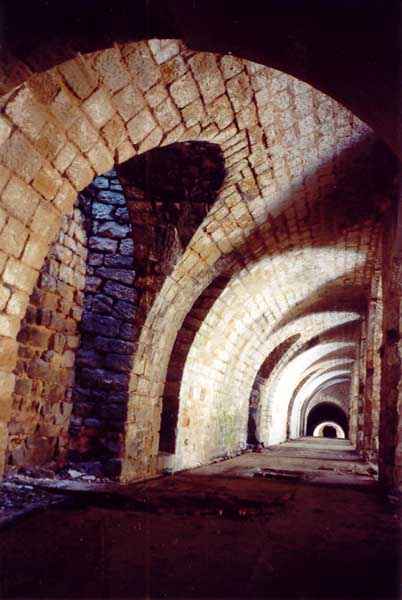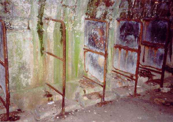 Verschanztes Lager von Épinal, südlich der Stadt, 1880-1882. 523 m ü. M. 230 Mann und 24 Geschütze, darunter 5 Maschinengewehre, die nach dem Entwurf des technischen Datenblatts der Ingenieure von 1880 vorgesehen waren, und dies zusätzlich zu fünf Geschützen des Kalibers 5 oder 7. Die übrige Bewaffnung bestand aus 8 x 120 L, 2 x 155 L und 4 Glattrohrmörsern des Kalibers 22 c. Genanntes Fort Bizot. Kleines Fort in Form eines unregelmäßigen Fünfecks mit unterbrochener Rille. Die Verteidigung des Umkreises wurde zwei Doppelkaponnieren (Vorsprünge II und IV) anvertraut; Die Schlucht wurde durch eine Verteidigungsplattform verteidigt, genauer gesagt eine trapezförmige Bastion, die auf dem bestehenden Felsen ruhte und sich ± 150 cm über dem Niveau des Hofes befand. Diese Plattform hat eine zinnenbewehrte Mauer (einschließlich einer Scheinwerfernische, die teilweise noch mit ihren Tonziegeln ausgekleidet ist), ist jedoch nicht überdacht. Die Böschung und die Kontereskarpe sind nicht oder nur geringfügig überdacht. Auf halbem Weg zwischen dem Bastionnetz und Frontbogen I öffnet sich der Eingang. Er wird von zwei Pilastern eingerahmt und ist von einem Grabenweg gefolgt; er ist jedoch nicht überdacht. Die Kontereskarpe ist ebenfalls von zwei Pilastern gesäumt, die jeweils mit einem Wachhaus verkleidet sind. Nach dem Durchschreiten des Eingangs steht man vor einem breiten, verwurzelten Gang, der das linke Ende der Wallstraße markiert. Dieser Gang bietet Zugang zur Kaponniere von Frontbogen II und zum Verkehrskorridor hinter der Kaserne. Die vier Gänge, die in die Wallstraße eingelassen sind, haben alle ein Segmentbogengewölbe und sind mit zwei Doppelnuten ausgestattet, sodass sie bei Bedarf mit Balken verstärkt werden können. Bevor man diesen eingegrabenen Gang erreicht, führt rechts ein Tunnel in den Hof. Er verläuft senkrecht zu den sieben Jochen der Kaserne, die der Rückseite der Schluchtböschung zugewandt sind. Diese Rückseite, zur Erinnerung ± 150 cm höher als das Niveau des Hofes, ist mit einer Wehrmauer bedeckt. Die Tonnengewölbe der Kaserne werden an der Fassade nicht durch einen gemauerten Bogen hervorgehoben. In einer der Kasernen kann man an der Wand noch die Skizze eines Signaltrupp-Abzeichens erkennen. Der Korridor an der Rückseite dieser Kaserne ist breit genug, um bei Bedarf Artilleriegeschütze durchzubringen oder zu schützen. Dieser Korridor verläuft neben dem Pulvermagazin, das sich genau in der Mitte des Gebäudes befindet. Diesem Magazin geht ein enormer Lichtschacht voraus. Der für 60.000 kg ausgelegte Lagerraum ist nichts Besonderes: ein halbrundes Gewölbe, drei ausgerichtete Laternenzinnen. Die Offizierskaserne liegt senkrecht zum anderen Ende des Hofes. Drei ihrer Fenster blicken auf den Schluchtgraben. Bemerkenswert sind einige schöne Mauerwerke und Latrinen, deren (sehr rostige) Metalltrennwände erhalten geblieben sind. Über der Kaserne befindet sich eine Infanteriestellung, die über eine Treppe zugänglich ist. Die Kaponnieren sind in gutem Zustand, einschließlich ihrer externen Ausrüstung. Es gibt die (für den Place d'Épinal) üblichen Kaponnier-Maschinengewehrlafetten. Der Schutzquerschnitt des Frontbogens III endet in einer Sackgasse, in die zwei optische Kommunikationszinnen eingebrochen sind und denen eine Steintafel vorangestellt ist. Diese Zinnen überblickten die Forts Arches und Parmont. Ein zweiter optischer Posten mit einer einzigen Zinne gegenüber dem Fort Roulon sollte die Rückseite einer der Schutztraversen der Front IV-V einnehmen, aber wir konnten dort nichts sehen, vielleicht aus Zeitmangel … und weil wir uns dessen vor dem Besuch nicht bewusst waren. Die beiden Öfen für 180 Rationen wurden beschädigt. Eine Nebenbatterie vor Frontvorsprung I mit einer Schutztraverse und 3 oder 4 nach Nordosten ausgerichteten Geschützstellungen. Die winterlichen Bedingungen, unter denen wir die Festung im März 2003 besuchten, bescherten uns Schnee, einen strahlend blauen Himmel und ebenso beeindruckende wie besorgniserregende Eisstalaktiten. Der Besuch dieser Festung, die sich in verlassenem Gemeindebesitz befindet, hinterließ bei uns nicht nur eine sehr ungewöhnliche Schluchtführung, sondern auch eine schöne Erinnerung.