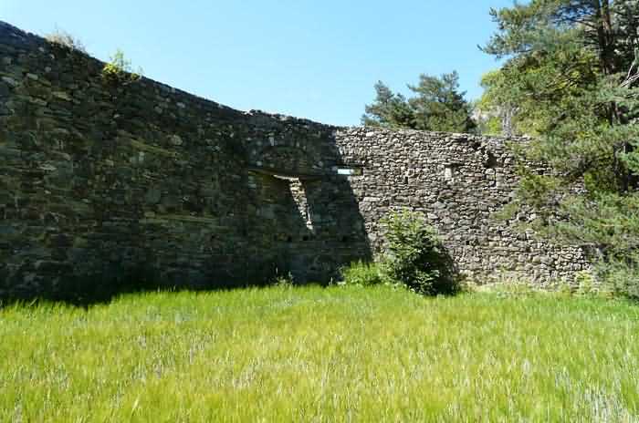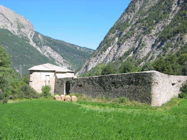 Fortress of Tournoux, north of the fortress. 1326 m/alt. It was in 1709 that Marshal de Berwick received the funds that would allow him to build seven redoubts to protect the Ubaye valley upstream from the confluence with the Ubayette. The one located on the bank of the Ubaye, left bank, between the village and the fort of Tournoux, the only surviving one, would have been restored in 1891 at the request of General Séré de Rivières according to the explanatory panel installed at its gate. There must be a typo (something that only happens to those who work) since this general no longer held any function since January 1880. Perhaps he had decided on this restoration and the funds were only released eleven years later? We cannot decide. Be that as it may; this restoration was limited to raising the walls and no real improvement is detectable from the outside. It is a quadrangular redoubt (diamond-shaped) with a triangular tower attached to its tip by one of its angles. This tower, serving as barracks and redoubt, is located to the left of the entrance. Still according to the panel on site, at the beginning of the 20th century, about fifty men were garrisoned there and the enclosure housed two sheds and a powder magazine. In the bibliography, we have noted the mention that in 1914, the guns of the battery of Mallemort were stored there. The other redoubts, upstream, are reputed to be razed except for those of Riou Sec (substantial remains) and La Lausière (insignificant remains). The latter, to our knowledge, not appearing in the works reputed to be active within the period covered by this index, are mentioned only for indicative purposes and are not developed in separate articles. Today (05/2008), this redoubt, a precious witness to the numerous achievements attributed to Marshal de Berwick, is closed, but in a remarkable state of conservation.