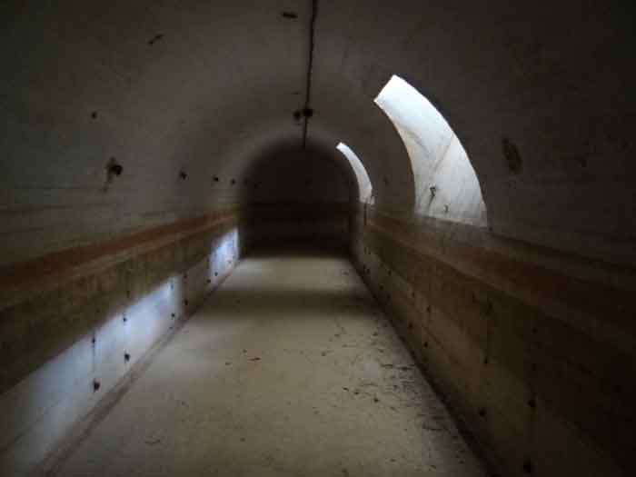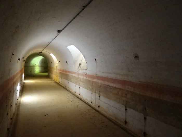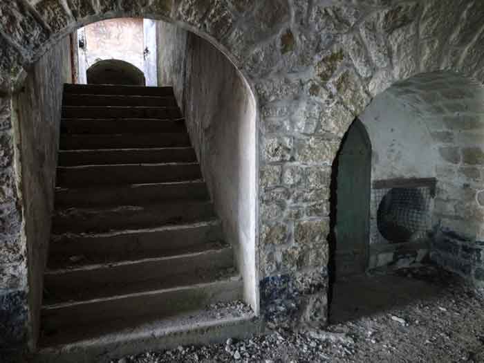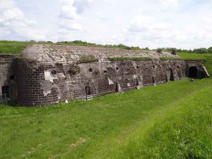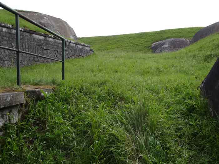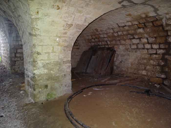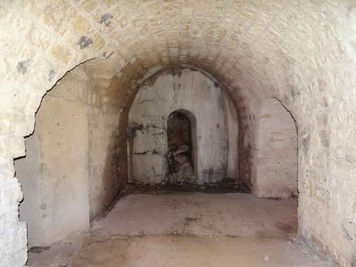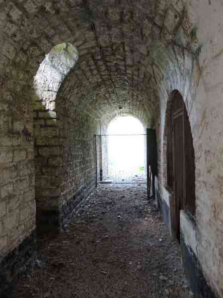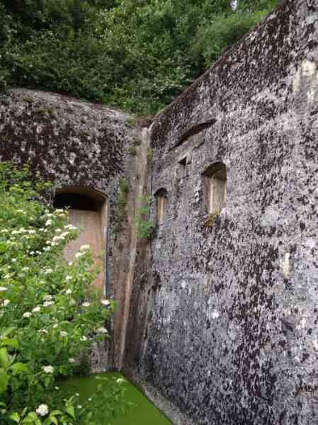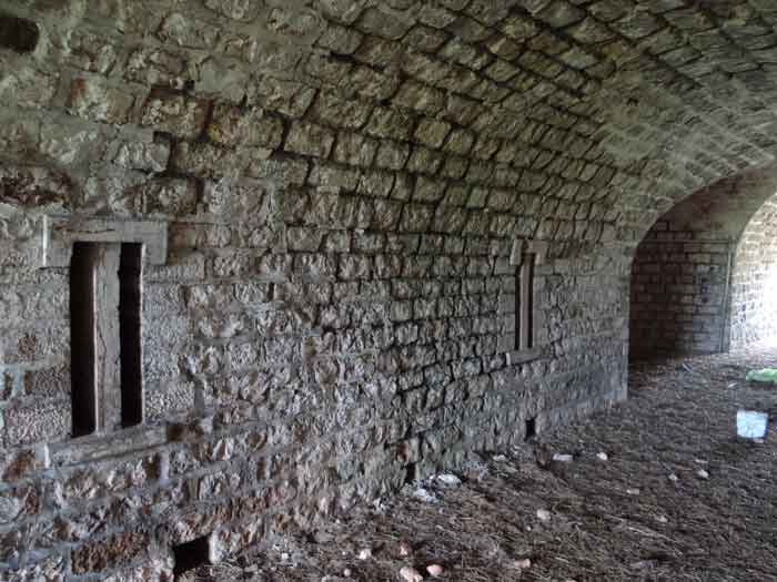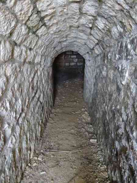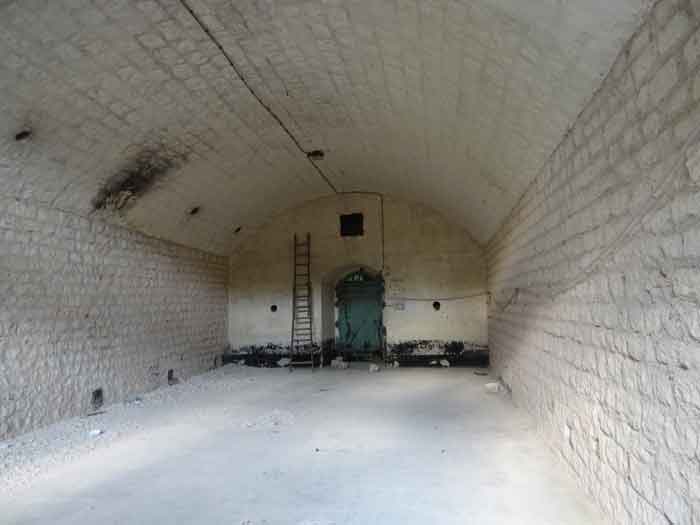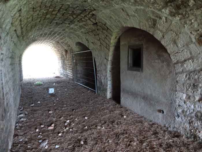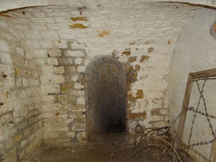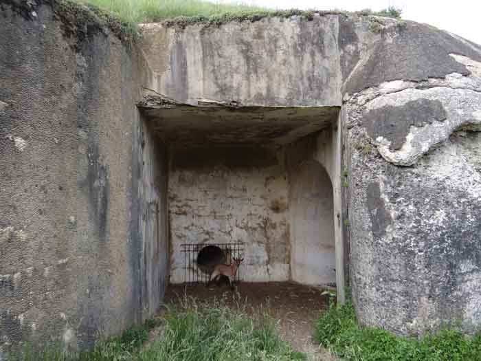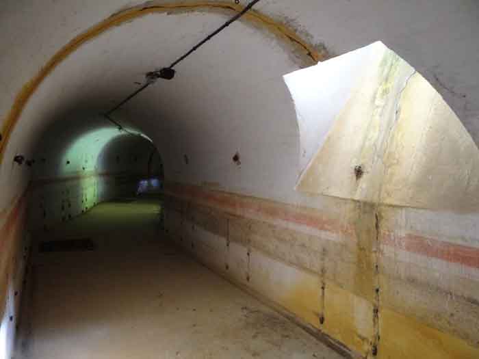 Belfort fortified camp, east of the city, 1883-1886. 381 m/alt. 673 men and 34 guns including 12 flanking. Called Fort Sénarmont. Large pentagonal fort with a broken gorge in the center of which is a wide curtain wall. Its ditches were defended by two wings (salients II and IV) and by a double caponier (salient III); the curtain wall coffers were responsible for protecting the gorge ditch with their crossfire. These coffers were preceded by a ditch preventing the attacker descending into the ditch from reaching their embrasures. The bottom of the curtain wall is occupied by ten casemates where, in particular, the officers were housed. The entrance to the fort consists of a porch separating the fifth from the sixth casemate. In front of it, on the glacis, we still find the stable building. The entrance porch, clad with its two guardhouses, projects slightly from the line of the casemates on the curtain wall. Quite attractive with its drip edge supported by small decorative corbels, it bears a plaque on the pediment indicating its name Boulanger. The entrance tunnel is quite short and opened in the center and in front of a perpendicular alignment of no fewer than 21 bays (on a single level) + two porches making up the troop barracks. These barracks were further extended on both sides by three rooms whose facades further lengthened the stretching of the whole. The imperfect is appropriate since, as we will see, modernizations have somewhat modified the initial appearance of the place. In the returns towards the gorge of the wings of the massif of the main barracks, there were two powder magazines. The rampart street had thirteen sheltered traverses distributed equally on the lateral and head flanks. Barely two years after its construction, the fort was outdated. The modernizations that were to be carried out there made this fort very interesting since one can see the disarray of the Engineers and the first efforts to deal with the torpedo shell crisis. For example, the artillery platforms were retained but the guns were placed under concrete shelters. The rampart street remained. From 1888, the five bays on the far left of the main barracks received a special concrete covering, 2.50 m thick and separated from the extrados of the vaults by 1.50 m of sand. This concrete covering was to be carried in front of the initial facade in order to create a circulation corridor in front of the latter. The circulation corridor at the rear was also maintained and protected in the same way. Note the concern to aestheticize the concrete by imitating, on the courtyard side, rubble masonry. Bessoncourt was the first in the area to have its caponiers replaced by counterscarp vaults, as early as 1895. The forts of Vézelois, Bois d'Oye and Roppe would not follow until eleven years later. That said, being the first would not have been very profitable for him since none of his vaults were connected to the central massif by an underground gallery. The caponier descent shafts were preserved and, at the height of the scarp wall, blocked by a gate. To reach the vaults, it was necessary to cross the open ditch. Probably at the same time (after 1896), a war entrance was created on the right of the curtain wall at the bottom of the ditch. Along the axis of this entrance, a concrete tunnel will lead to what was the second porch of the main barracks, located between bays 14 and 15. This porch, also concreted, will be extended to the rampart street facing the right outlet of a horseshoe-shaped infantry position, with a concrete gallery and chicane entrances, which will replace traverses 6, 7 and 8 in the capital. Similar positions will man salients II and IV and will have artillery sheds attached to them. Similar gun shelters, their two openings facing the gorge, will be cast in front of traverses 1 and 13, which will be condemned and filled with concrete. These shelters and infantry positions are a real particularity of this fort. The rounded concrete massifs are reminiscent of the Belgian forts of the Meuse which were being finished pouring (1892). The powder magazines will be very significantly modified. Only a few meters of the storage room will be preserved, the remainder being completely filled in. Below this backfilled section, the ventilated voids will then serve as a ceiling for a new projectile magazine, after the torpedo shell crisis, the latter being no longer manufactured in the forts. Access to these underground magazines will be from the passages rooted on either side of the large barracks, and this by a gently sloping gallery coming up against a lamp crenel backing onto the magazine airlock. In 1908 and 1909, the fort will receive its armor. Two 75 turrets will be placed next to the new accesses to the projectile magazines just mentioned. Thus, the fort of Bessoncourt will be the only one to have the entrance to its 75 turret blocks facing the front line. A machine gun turret will be intended for salient II and a second for salient V. Two armored observation posts were planned for the latter, but they were not installed. Only those of the 75 turrets and one intended for the command, installed roughly in the center of the III-IV front, will be. The infantry parapets will each have their observation sentry box. Plans had been drawn up to sink a concrete monolith for two 155 R Mle 1907 turrets near the fort. The two turrets would have been separated by projectile magazines as well as two large barracks. This project was not followed up. In 1917, the fort will have a network of underground galleries dug, a bit like those seen at Verdun. The vaults will be connected below the ditch and two diverticula will be launched under the front of the head to receive Pamart bells, bells which will never be installed. Visited in October 2001, the fort appeared to us to be in very good condition, notwithstanding the reinforcement of all its armor. The 1917 tunnel system is probably the most beautiful and intact we have eve