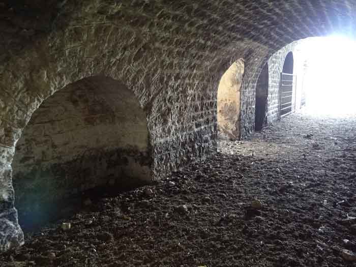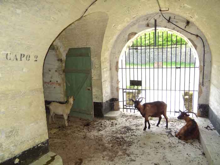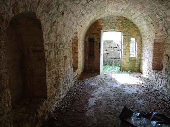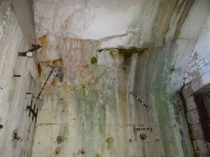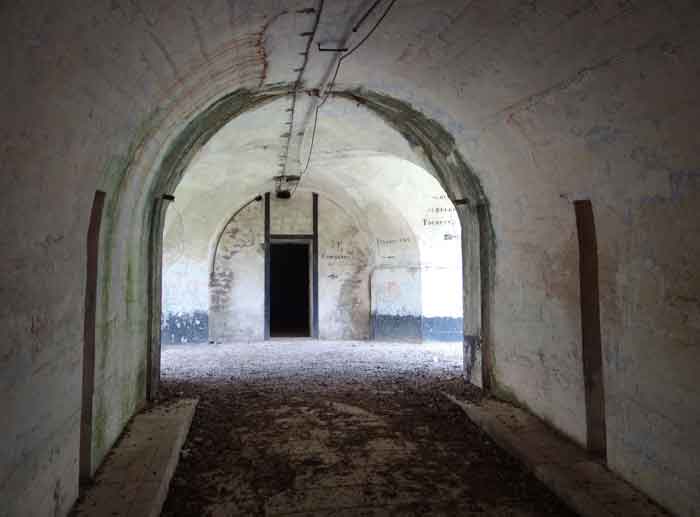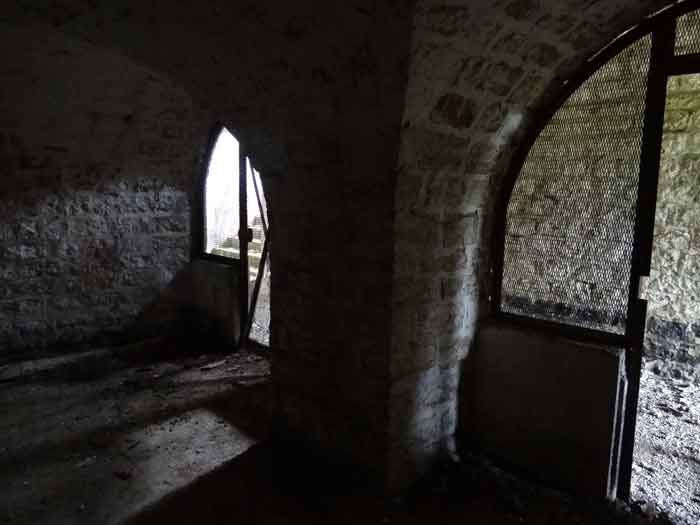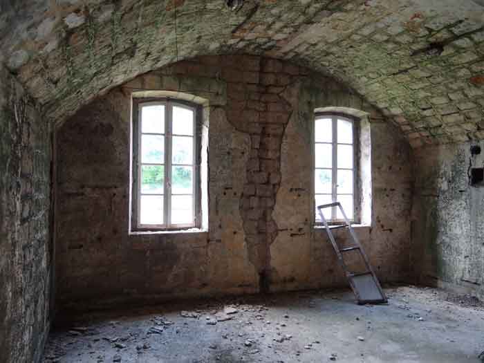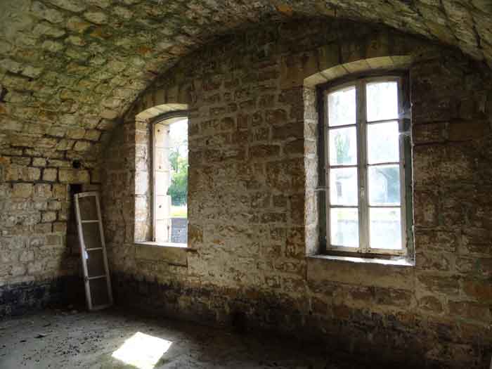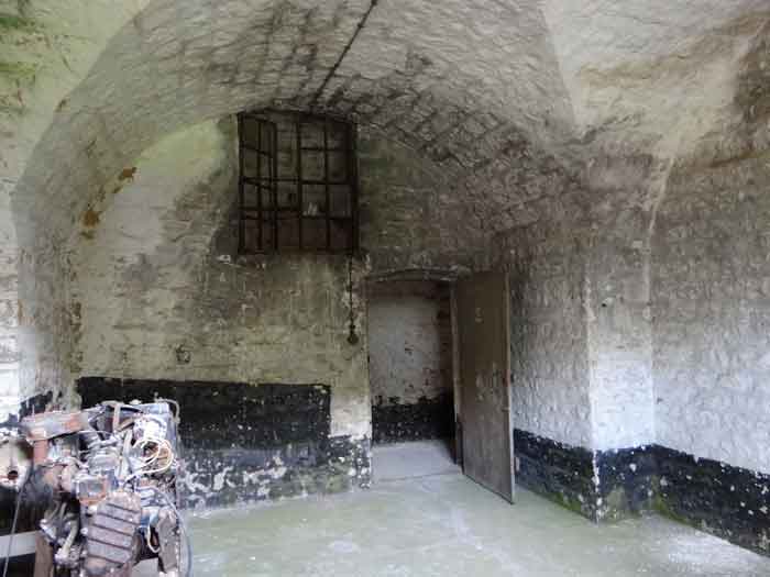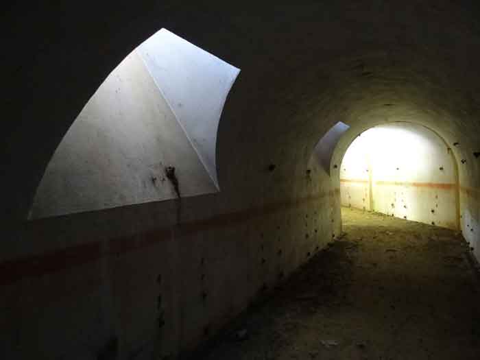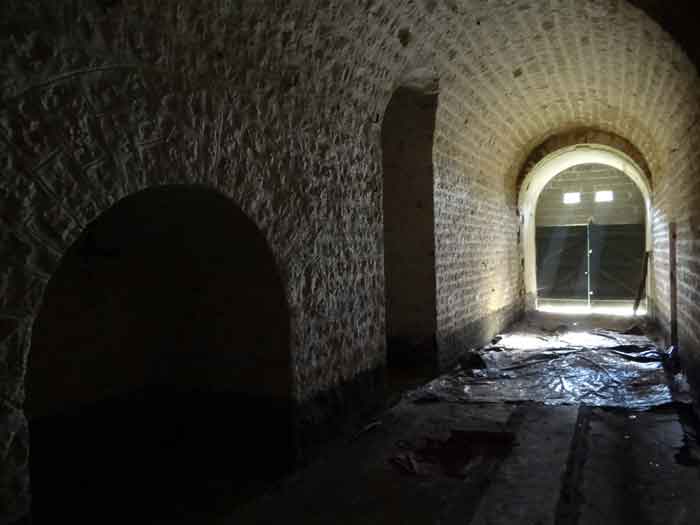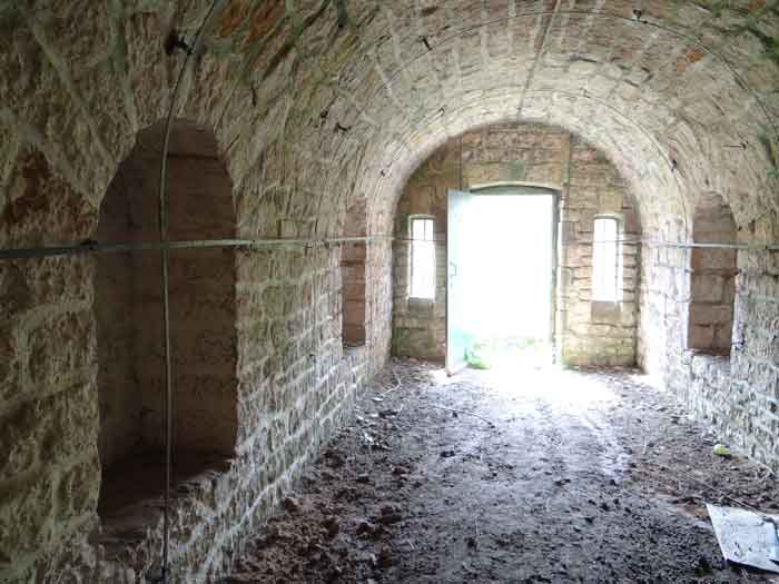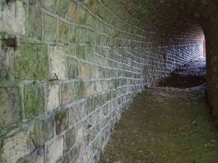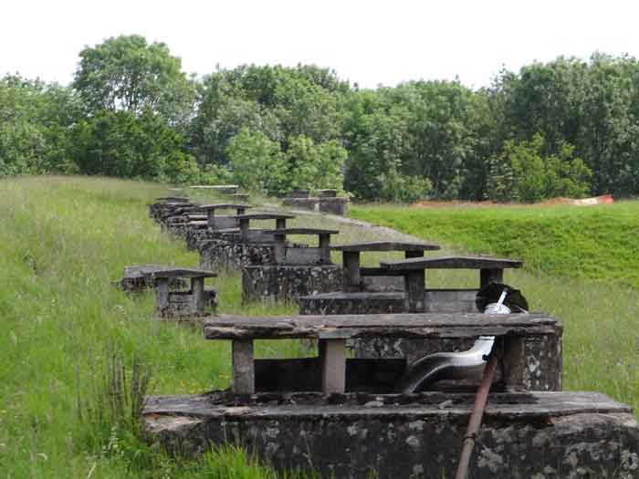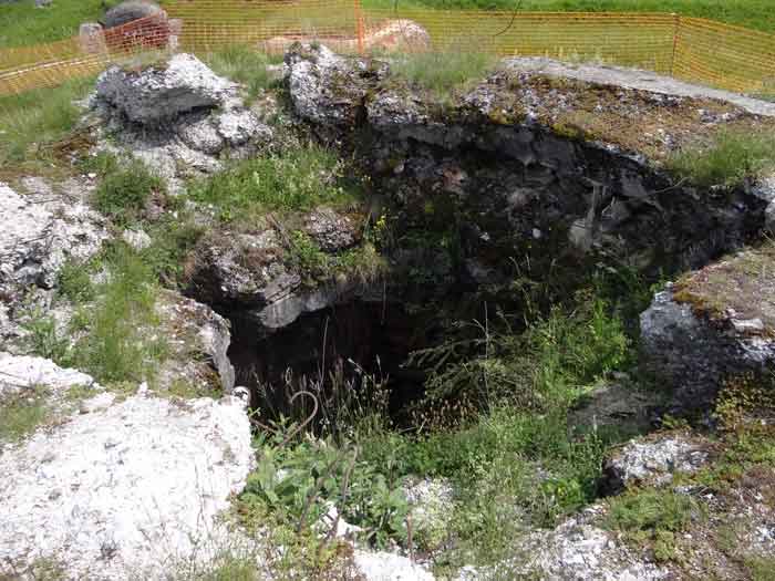Belfort fortified camp, east of the city, 1883-1886. 381 m/alt. 673 men and 34 guns including 12 flanking. Called Fort Sénarmont. Large pentagonal fort with a broken gorge in the center of which is a wide curtain wall. Its ditches were defended by two wings (salients II and IV) and by a double caponier (salient III); the curtain wall coffers were responsible for protecting the gorge ditch with their crossfire. These coffers were preceded by a ditch preventing the attacker descending into the ditch from reaching their embrasures. The bottom of the curtain wall is occupied by ten casemates where, in particular, the officers were housed. The entrance to the fort consists of a porch separating the fifth from the sixth casemate. In front of it, on the glacis, we still find the stable building. The entrance porch, clad with its two guardhouses, projects slightly from the line of the casemates on the curtain wall. Quite attractive with its drip edge supported by small decorative corbels, it bears a plaque on the pediment indicating its name Boulanger. The entrance tunnel is quite short and opened in the center and in front of a perpendicular alignment of no fewer than 21 bays (on a single level) + two porches making up the troop barracks. These barracks were further extended on both sides by three rooms whose facades further lengthened the stretching of the whole. The imperfect is appropriate since, as we will see, modernizations have somewhat modified the initial appearance of the place. In the returns towards the gorge of the wings of the massif of the main barracks, there were two powder magazines. The rampart street had thirteen sheltered traverses distributed equally on the lateral and head flanks. Barely two years after its construction, the fort was outdated. The modernizations that were to be carried out there made this fort very interesting since one can see the disarray of the Engineers and the first efforts to deal with the torpedo shell crisis. For example, the artillery platforms were retained but the guns were placed under concrete shelters. The rampart street remained. From 1888, the five bays on the far left of the main barracks received a special concrete covering, 2.50 m thick and separated from the extrados of the vaults by 1.50 m of sand. This concrete covering was to be carried in front of the initial facade in order to create a circulation corridor in front of the latter. The circulation corridor at the rear was also maintained and protected in the same way. Note the concern to aestheticize the concrete by imitating, on the courtyard side, rubble masonry. Bessoncourt was the first in the area to have its caponiers replaced by counterscarp vaults, as early as 1895. The forts of Vézelois, Bois d'Oye and Roppe would not follow until eleven years later. That said, being the first would not have been very profitable for him since none of his vaults were connected to the central massif by an underground gallery. The caponier descent shafts were preserved and, at the height of the scarp wall, blocked by a gate. To reach the vaults, it was necessary to cross the open ditch. Probably at the same time (after 1896), a war entrance was created on the right of the curtain wall at the bottom of the ditch. Along the axis of this entrance, a concrete tunnel will lead to what was the second porch of the main barracks, located between bays 14 and 15. This porch, also concreted, will be extended to the rampart street facing the right outlet of a horseshoe-shaped infantry position, with a concrete gallery and chicane entrances, which will replace traverses 6, 7 and 8 in the capital. Similar positions will man salients II and IV and will have artillery sheds attached to them. Similar gun shelters, their two openings facing the gorge, will be cast in front of traverses 1 and 13, which will be condemned and filled with concrete. These shelters and infantry positions are a real particularity of this fort. The rounded concrete massifs are reminiscent of the Belgian forts of the Meuse which were being finished pouring (1892). The powder magazines will be very significantly modified. Only a few meters of the storage room will be preserved, the remainder being completely filled in. Below this backfilled section, the ventilated voids will then serve as a ceiling for a new projectile magazine, after the torpedo shell crisis, the latter being no longer manufactured in the forts. Access to these underground magazines will be from the passages rooted on either side of the large barracks, and this by a gently sloping gallery coming up against a lamp crenel backing onto the magazine airlock. In 1908 and 1909, the fort will receive its armor. Two 75 turrets will be placed next to the new accesses to the projectile magazines just mentioned. Thus, the fort of Bessoncourt will be the only one to have the entrance to its 75 turret blocks facing the front line. A machine gun turret will be intended for salient II and a second for salient V. Two armored observation posts were planned for the latter, but they were not installed. Only those of the 75 turrets and one intended for the command, installed roughly in the center of the III-IV front, will be. The infantry parapets will each have their observation sentry box. Plans had been drawn up to sink a concrete monolith for two 155 R Mle 1907 turrets near the fort. The two turrets would have been separated by projectile magazines as well as two large barracks. This project was not followed up. In 1917, the fort will have a network of underground galleries dug, a bit like those seen at Verdun. The vaults will be connected below the ditch and two diverticula will be launched under the front of the head to receive Pamart bells, bells which will never be installed. Visited in October 2001, the fort appeared to us to be in very good condition, notwithstanding the reinforcement of all its armor. The 1917 tunnel system is probably the most beautiful and intact we have eve