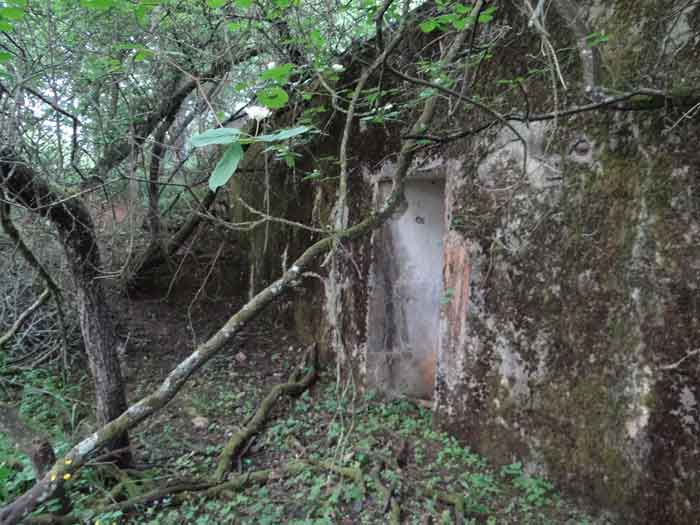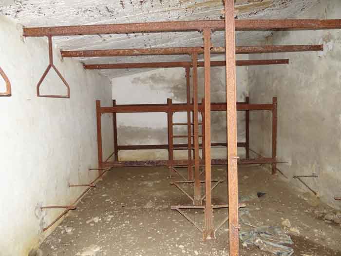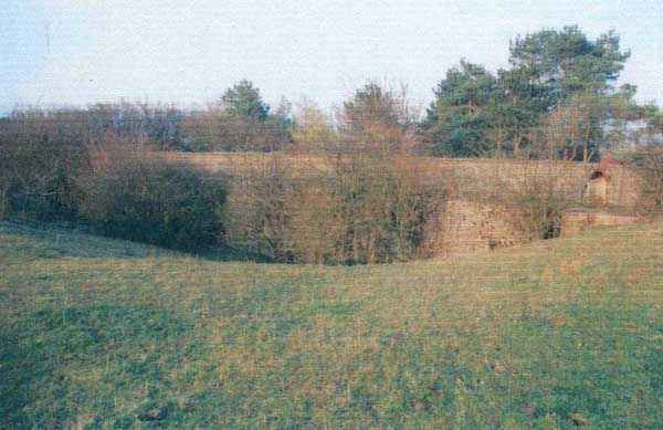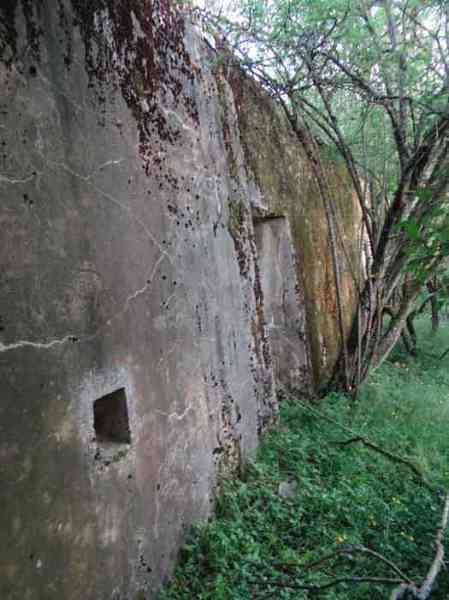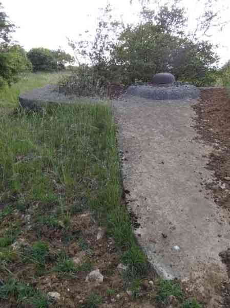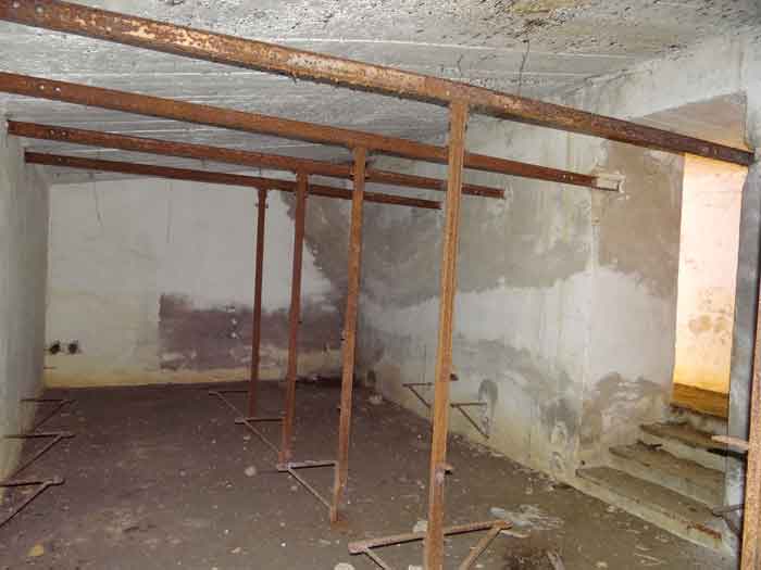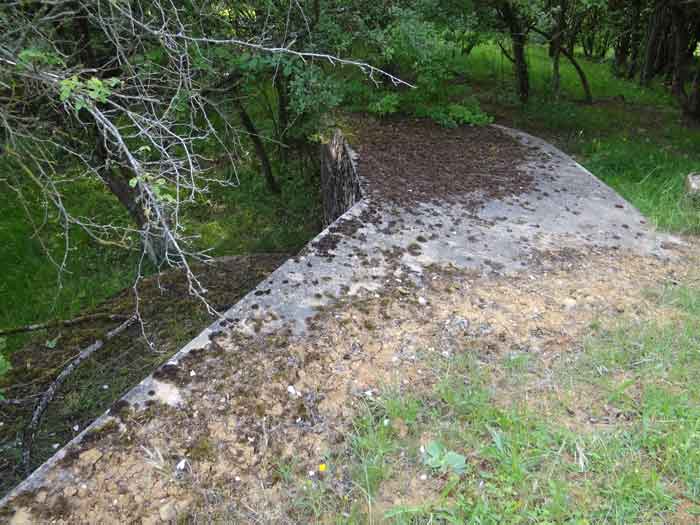 Toul fortified camp, east of the town. 1906. Infantry position located 1500 m behind the Fays fortification. Its ditch has a triangular profile. It is a concrete structure whose facade with 5 entrances gives access to a transverse corridor serving 4 barracks (2 for 50 men and 2 for 38 men). The two smallest housed the telegraph station and the commander's room. The upper parts include an infantry parapet and an observation sentry box (in place) communicating with the lower parts of the fortification.