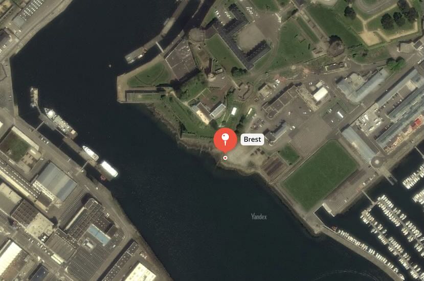 Festung van Brest, vor dem Schloss, 1877–1878. Eine der Batterien des Außenhafens am linken Ufer des Penfeld. 1876 war geplant, sie mit einem 32-cm-Geschütz und/oder zwei weiteren 27-cm-Geschützen zu bewaffnen, ab 1878 war jedoch nur noch die Bewaffnung aus dem Jahr 1900 vorhanden, d. h. 3 M-Geschütze 27-cm-Modell 1870 M auf M-Lafetten Modell 1876-T-83 P.A. Nachdem 1902 ein viertes 27-cm-Geschütz hinzugefügt werden sollte, wurde schließlich, während die Batterie entwaffnet wurde, per Ministerialbeschluss vom 29.08.1904 die Stilllegung der Batterie angeordnet. Im Jahr 1914 wurde in den Rüstungsaufzeichnungen nichts weiter vermerkt, im Dezember 1916 waren jedoch 2 Geschütze G 19 c Modell 1878 und 2 Geschütze 27 c M Modell 1870 vorhanden, die jedoch nicht zum Einsatz kamen. Für die Aufzeichnungen sei erwähnt, dass im Februar 1916 im Schloss selbst ein 90-cm-Feuerwerfer installiert wurde.