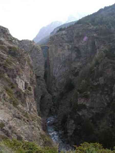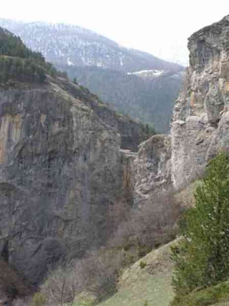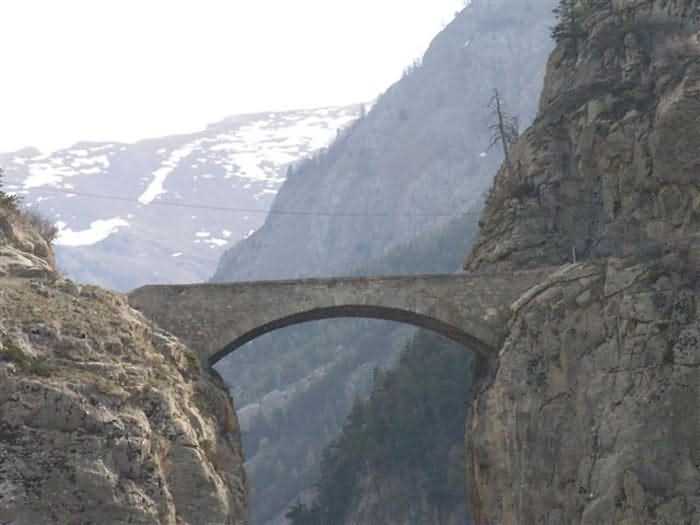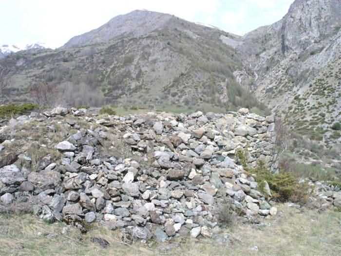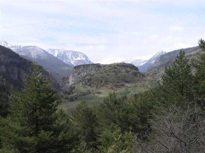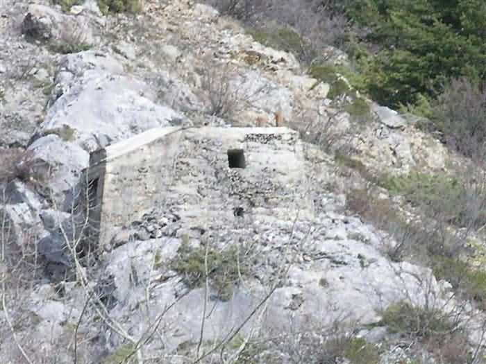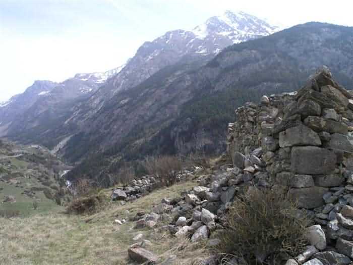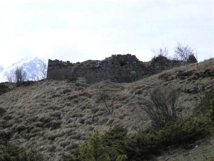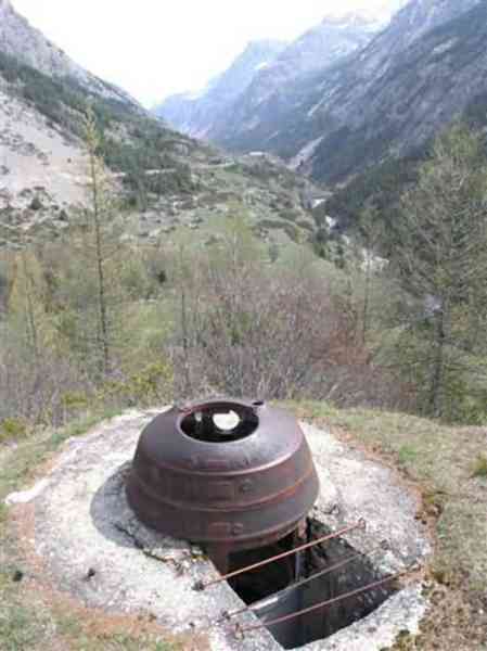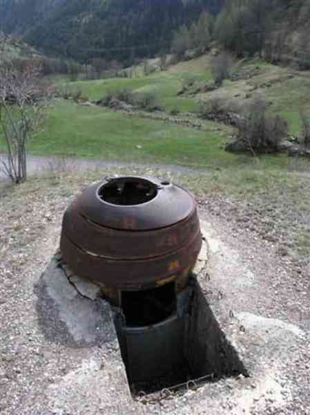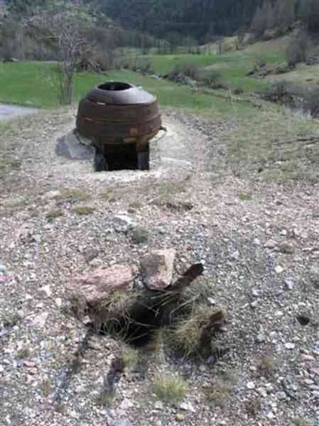 Fortress of Tournoux, north-north-east of the fortress, 1678 m/alt. Most septentrional element of the fortress, this post, built before 1874, is located 3500 m upstream from the hamlet of Saint-Paul in the upper Ubaye valley and monitors, besides the upstream Ubaye, the vallon of Plate Lombarde. Today (05/2008), only the foundations of a rectangular building of barely a few square meters remain. Nevertheless, enthusiasts will not fail to go there because, besides the Châtelet itself, a huge rock, a veritable barrier across the Ubaye valley and the eponymous bridge, a puny ant bridge surmounting, with its single arch of 18 m span (1882), the Ubaye embedded 108 m below, one finds there a dusting of blockhouses including two with demountable turrets. Several unit insignia brighten the walls of these light constructions, some of them admirably camouflaged. To this it should be added, for the visitor of late May/early June, thousands of orchidées in the pastures where clans of marmots frolic. Note that in 1693, the construction of a barracks for 100 men, two entrenchments, a cistern, a bakery and a powder magazine was planned on the summit of this authentic barrier. Sometimes reported as "redoute du Castelet".