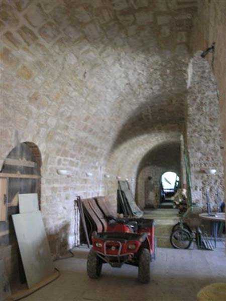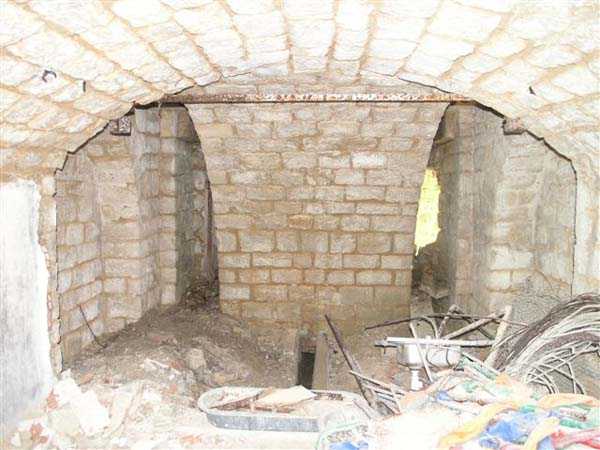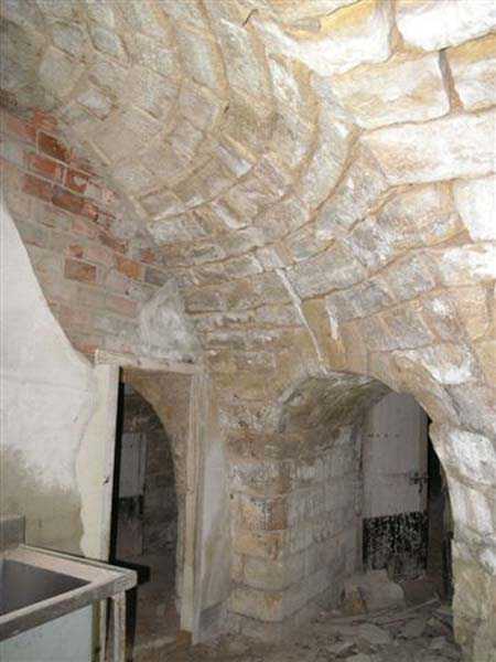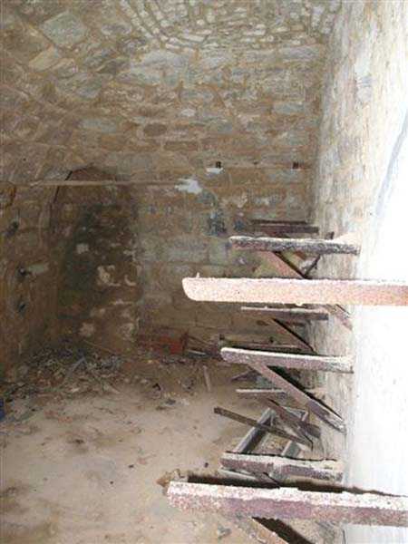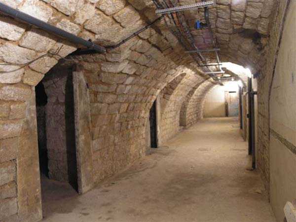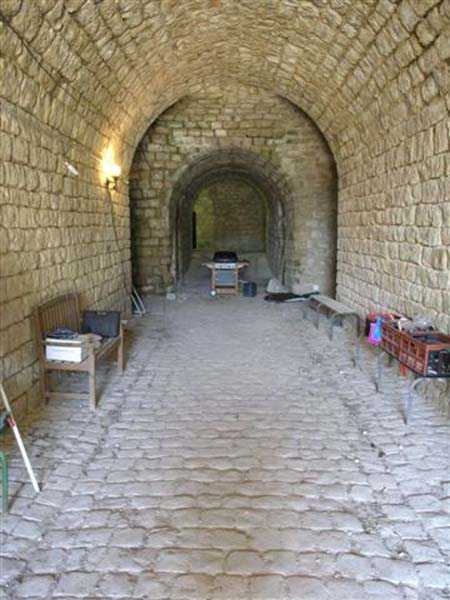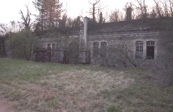 Fortress of Reims, northwest of the city, 1879-1880. 201 m/alt. Called the Ronzier redoubt or battery. The last structure in the belt northwest of the city of Reims and south of the Saint-Thierry fort, for 138 men and 8 guns. Taking the form of an irregular trapezoid, it has a curtain wall at the throat, a curtain wall defended by two small chests for musketry fire and whose back is occupied by the four bays on two levels (ground floor and basement) of the barracks. This was recently sandblasted (08/2007) and the basement battlements modified, but while retaining a certain aesthetic. In the center of this barracks, a fifth, narrower bay serves as an entrance porch. This one is nicely fitted, with a beautiful buffer to cushion the raising of the drawbridge below, and the hollows between the stone corner chains are filled with rubble masonry in opus incertum, but with stones much smaller than those of the rest of the facade of the barracks. The two defensive crenels of this porch are placed at a height of 2 m and are very flared towards the bottom. The capital is paved and, beyond the barracks, includes, on its left, a well 50 m deep and, on its right at the height of the well, the staircase joining the two levels of premises. The well is crowned by a very old electric pump but without date. It is marked "RBR N° 2 E. KAMMER constr. REIMS" and the engine was sitting on a base nearby. It drove a belt that operated an 82 mm wide wheel with a diameter of 82 cm, which was coupled to another 42 cm diameter wheel on which was fixed a short-stroke connecting rod. Two metal cisterns also occupy the well room as well as an antique hand pump stored on the side. The staircase opens into the basement perpendicular to the vault of the circulation corridor. The edge of this junction is a jewel of masonry. The service room of the drawbridge still houses the essential part of the mechanism. Oddly enough, under the well room is another room… crossed by the lining of the well in vertically laid terracotta bricks. The capital ends with a fork, each branch of which opens onto a small courtyard. This fork houses a very pretty rotunda and the location of a fountain terminal behind which the latrines were located. Front I-II includes two coated Mle 1879 shelter traverses behind which is the powder magazine block with a capacity of 30,000 kg. The latter, 3.5 m wide and about fifteen meters long, has a semicircular vault culminating at barely 3.2 m and lighting was provided by two lamp crenellations. The partition of these crenellations was modified by the removal of a crenellation in favor of a door. This modification seems very old to the point that we wondered about the real presence of this second crenellation because to serve the lamp room, it was then necessary, given the absence of side galleries, to come out into the open air and go around the magazine block. The arrangement of the various lintels framing the openings is confusing and does not allow us to resolve the question. On the entrance hall side of the store, it is necessary to cross perpendicularly a rooted passage of the rue du rempart (with another superb masonry rotunda) to enter the traverse 3. The latter's premises have its width reduced by the presence of a thin brick partition insulating it from the descent shaft towards the double caponier. Today this partition has collapsed and the interior of the double caponier… partitioned! The main embrasure of each side had a sliding shutter between two vertical guides spaced 78 cm apart. Two pulleys with a diameter of 14 cm helped in its operation. Note another very beautiful vault in this caponier. The head front includes three other traverses, the central one being rooted to a mass of land opposite which is the fork of the capital. The access shaft to the wing of salient III does not open into a deep passage, but rather into the right courtyard, facing the right outlet of the fork of the capital. For security reasons, we were not allowed access to this wing, which is reputed to be dangerously dilapidated. Finally, front III-IV includes shelter traverses no. 7 and 8, both from the Mle 1879 and coated. The redoubt is bypassed by a dry ditch with a scarp and counterscarp of flowing earth. The counterscarp is, however, coated at the height of the caponiers. A defensive grille still adorns the foot of the scarp. This, still complete in April 1991, has unfortunately been eradicated in front of the gorge curtain. The redoubt, inhabited, has become the heart of an equestrian center and is not open to the public.