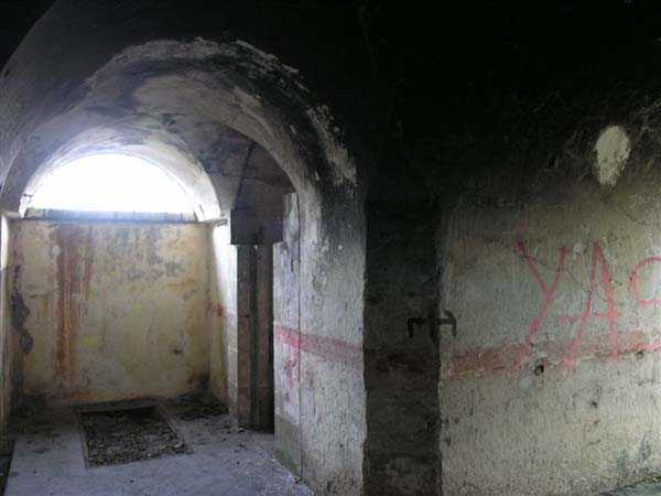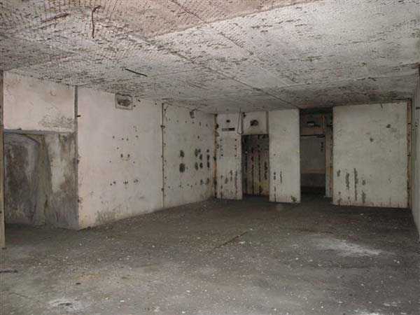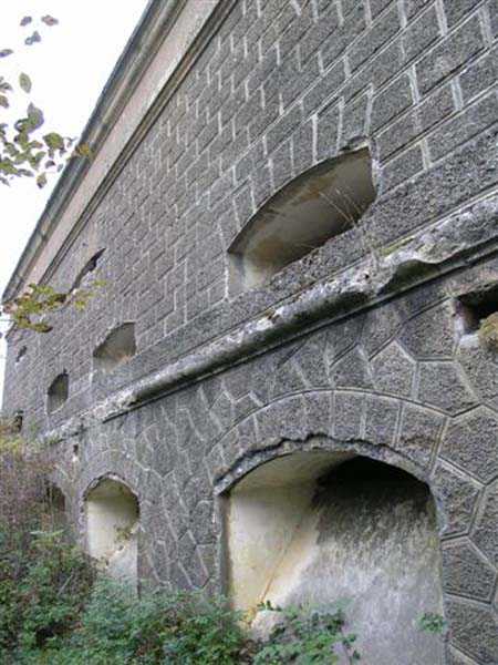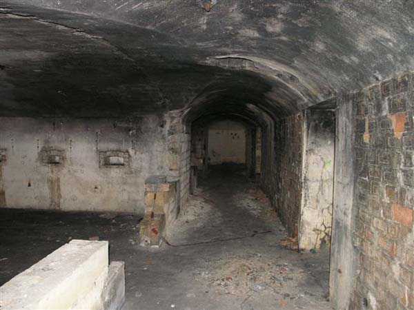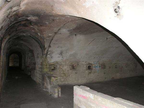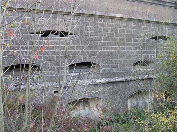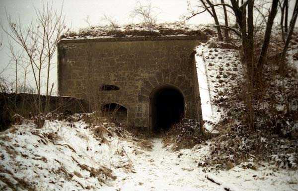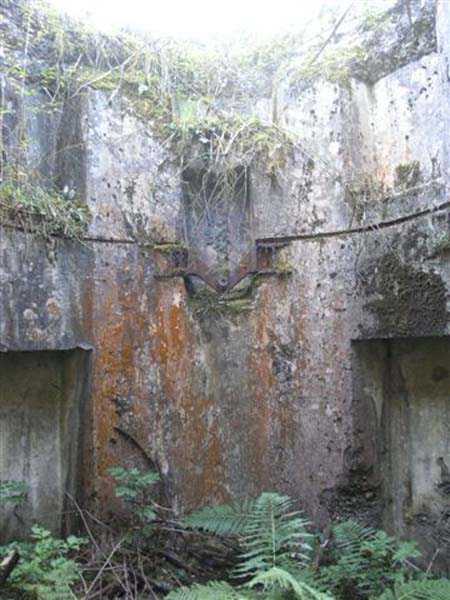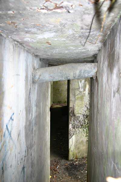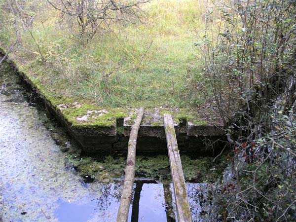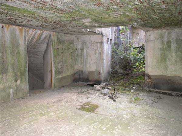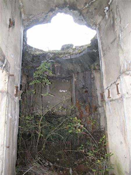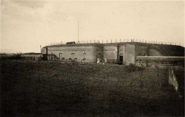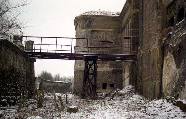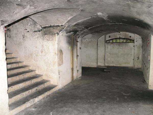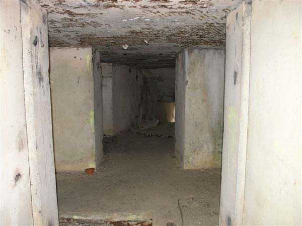 Belfort fortified camp, ESE of the town, 1889-1890. 385 m/alt. Trapezoidal structure occupying the interval between the forts of Vézelois and Bessoncourt. Initially a simple infantry structure, apart from its barracks, it was completely rebuilt in 1906. The ditches were given a triangular profile with a lined counterscarp. Their entire perimeter included a grid at the foot of the escarpments made of flowing earth. The defense of these ditches was ensured by counterscarp coffers, single at salient II and double at salient III. The concrete barracks protrude into the gorge, thus the defense of the ditch was ensured from the sides of this building, the cement covering of which was worked in such a way as to imitate rubble masonry. Note that the arch of the foot crenelation of the basement embrasures, embrasures for a 12-pounder gun and a searchlight, had to be cut out for the installation of this equipment. This is a foot crenelation of the former infantry structure. It is no longer possible to serve this foot crenelation from the upper floor, the room being occupied by a revolver cannon and no longer having any other opening than the embrasure of this gun. The structure of Chèvremont must have had a certain family link with that of Monceau; the barracks will therefore have been preserved with these small modifications to the defense of the gorge. Two doors with drawbridges allowed access to the structure, one on each side of the barracks block. The latter comprises two floors (a ground floor and a basement) with a total of four large barracks for the troops and a whole series of related premises for non-commissioned officers and officers, latrines, etc. Note in passing the support of a balance pump still surmounting a cistern. Beyond the circulation corridor at the rear of the barracks, another series of premises surmounts the cisterns. This extension is crossed perpendicularly by the capital gallery on which a power station has been grafted. Beyond, it gives right to a machine gun turret at the right rear of which is the command observatory. From here, two diverticula branch off laterally, serving the counterscarp chests as well as, in passing, two 75 Mle 05 turrets. The substructures of these two turrets are identical. From the gallery parallel to the front, you have to go down a flight of stairs leading, about 3 m below, into a large room where light partitions (now gone, only traces remain on the ceiling) separated the projectiles from the men whose bench supports are still fixed to the wall. This room provides level access to the turret's balance floor, at the foot of the armored observatory shaft, but also to the descent shaft to the corresponding counterscarp box. When they took action, the scrap metal dealers recovered the voussoirs of the 75 turrets with explosives, this caused a certain quantity of concrete rubble. This rubble was pushed into the access shafts to the boxes, making access difficult today. That being said, if the metal salvagers took the trouble to go with a ladder to remove one by one the letters of the name of the structure from its pediment, they abandoned these boxes which had become difficult to access. The shaft of the double box still has its grille. Most of the metal elements such as the bench and brush supports are in place. It is also worth noting the presence of twelve (double chest) and six (single chest) collars for attaching oxygen bottles from the oxyacetylene plants. The originality of the gallery leading to the single chest lies in the extraordinary development of saltpeter that can be observed there. The work contains rare wall inscriptions, but, as is customary in Belfort, marks intended to help re-aim the 12-gauge breech-loaded cannon, marks in the form of a cross or a simple vertical line, sometimes called "sand sights", are faithful to the position at the rear of each of the embrasures of these cannons, except for the one flanking salient I. In the barracks, in the flanking casemates on the ground floor, a deep line in the ground allowed the revolver cannon to be wedged. The upper parts, between the line of armor and the barracks massif, are organized in infantry positions. On either side of the barracks is a concrete shelter from which one can access an observation post. These shelters are quite original with several niches, a curved entrance, one end with a cul-de-four vault, etc. On the glacis, a vast network of barbed wire completely surrounded the structure. The structure is generally in good condition (10/2007), notwithstanding the disappearance of its armor and some rooms where fires have blackened the walls. This is a military site dependent on the 35th Infantry Regiment and access is prohibited. The glacis in front of the gorge are still lined with barracks that served as barracks and stores in peacetime. There are probably some dating from the interwar period. Some are in a state close to ruin. We were told that unit insignia painted on the walls were still visible here and there, but we were unable to verify this.