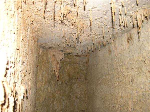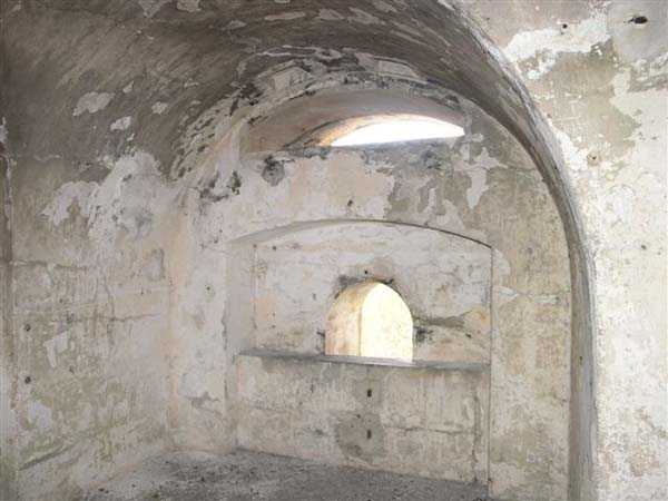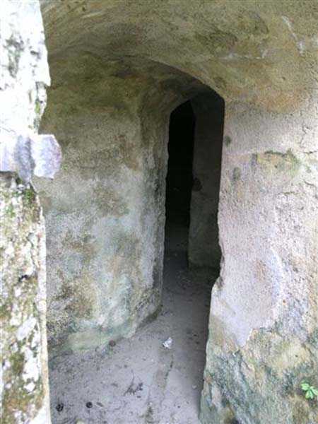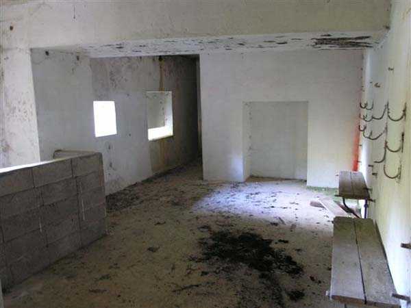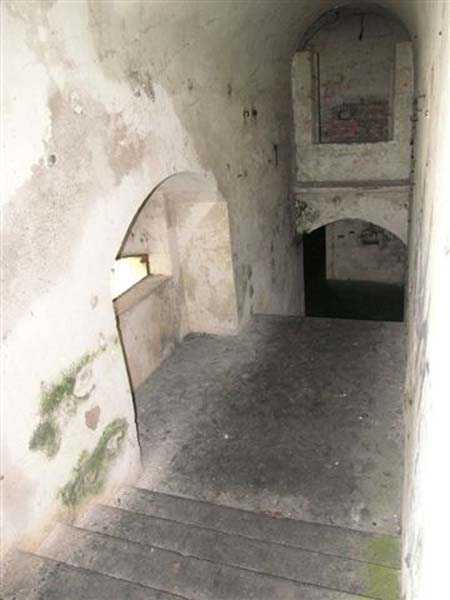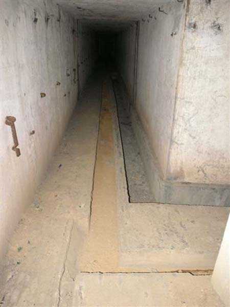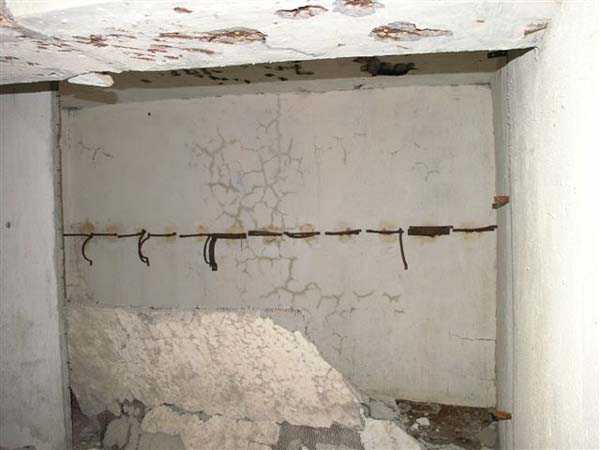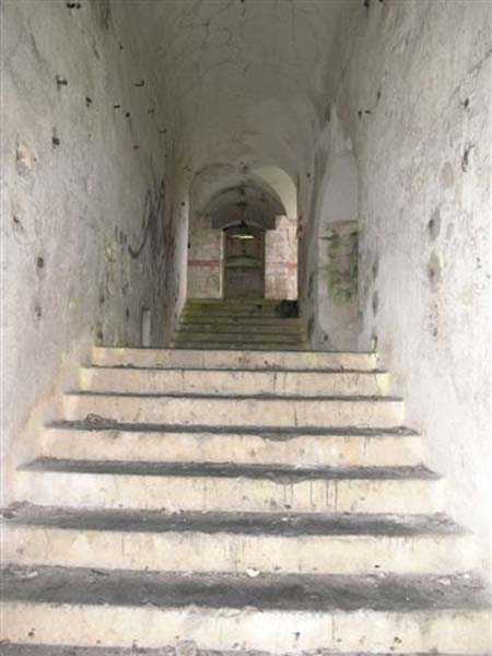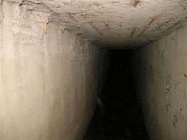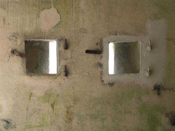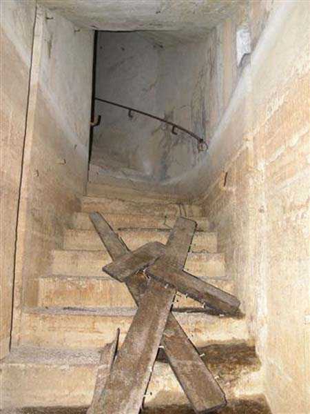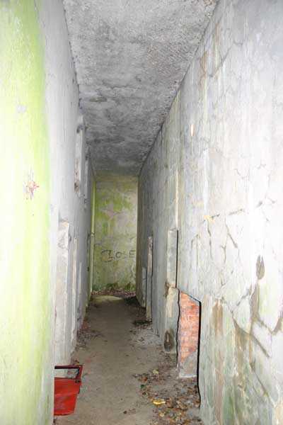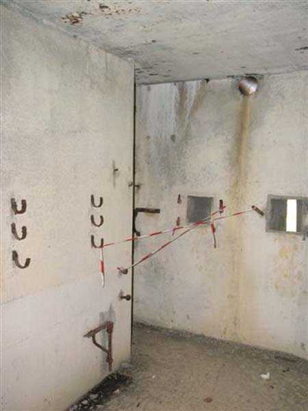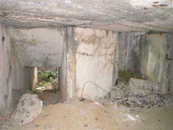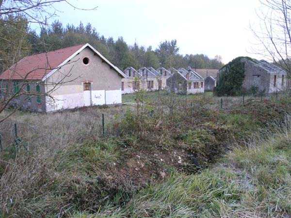 Belfort fortified camp, ESE of the town, 1889-1890. 385 m/alt. Trapezoidal structure occupying the interval between the forts of Vézelois and Bessoncourt. Initially a simple infantry structure, apart from its barracks, it was completely rebuilt in 1906. The ditches were given a triangular profile with a lined counterscarp. Their entire perimeter included a grid at the foot of the escarpments made of flowing earth. The defense of these ditches was ensured by counterscarp coffers, single at salient II and double at salient III. The concrete barracks protrude into the gorge, thus the defense of the ditch was ensured from the sides of this building, the cement covering of which was worked in such a way as to imitate rubble masonry. Note that the arch of the foot crenelation of the basement embrasures, embrasures for a 12-pounder gun and a searchlight, had to be cut out for the installation of this equipment. This is a foot crenelation of the former infantry structure. It is no longer possible to serve this foot crenelation from the upper floor, the room being occupied by a revolver cannon and no longer having any other opening than the embrasure of this gun. The structure of Chèvremont must have had a certain family link with that of Monceau; the barracks will therefore have been preserved with these small modifications to the defense of the gorge. Two doors with drawbridges allowed access to the structure, one on each side of the barracks block. The latter comprises two floors (a ground floor and a basement) with a total of four large barracks for the troops and a whole series of related premises for non-commissioned officers and officers, latrines, etc. Note in passing the support of a balance pump still surmounting a cistern. Beyond the circulation corridor at the rear of the barracks, another series of premises surmounts the cisterns. This extension is crossed perpendicularly by the capital gallery on which a power station has been grafted. Beyond, it gives right to a machine gun turret at the right rear of which is the command observatory. From here, two diverticula branch off laterally, serving the counterscarp chests as well as, in passing, two 75 Mle 05 turrets. The substructures of these two turrets are identical. From the gallery parallel to the front, you have to go down a flight of stairs leading, about 3 m below, into a large room where light partitions (now gone, only traces remain on the ceiling) separated the projectiles from the men whose bench supports are still fixed to the wall. This room provides level access to the turret's balance floor, at the foot of the armored observatory shaft, but also to the descent shaft to the corresponding counterscarp box. When they took action, the scrap metal dealers recovered the voussoirs of the 75 turrets with explosives, this caused a certain quantity of concrete rubble. This rubble was pushed into the access shafts to the boxes, making access difficult today. That being said, if the metal salvagers took the trouble to go with a ladder to remove one by one the letters of the name of the structure from its pediment, they abandoned these boxes which had become difficult to access. The shaft of the double box still has its grille. Most of the metal elements such as the bench and brush supports are in place. It is also worth noting the presence of twelve (double chest) and six (single chest) collars for attaching oxygen bottles from the oxyacetylene plants. The originality of the gallery leading to the single chest lies in the extraordinary development of saltpeter that can be observed there. The work contains rare wall inscriptions, but, as is customary in Belfort, marks intended to help re-aim the 12-gauge breech-loaded cannon, marks in the form of a cross or a simple vertical line, sometimes called "sand sights", are faithful to the position at the rear of each of the embrasures of these cannons, except for the one flanking salient I. In the barracks, in the flanking casemates on the ground floor, a deep line in the ground allowed the revolver cannon to be wedged. The upper parts, between the line of armor and the barracks massif, are organized in infantry positions. On either side of the barracks is a concrete shelter from which one can access an observation post. These shelters are quite original with several niches, a curved entrance, one end with a cul-de-four vault, etc. On the glacis, a vast network of barbed wire completely surrounded the structure. The structure is generally in good condition (10/2007), notwithstanding the disappearance of its armor and some rooms where fires have blackened the walls. This is a military site dependent on the 35th Infantry Regiment and access is prohibited. The glacis in front of the gorge are still lined with barracks that served as barracks and stores in peacetime. There are probably some dating from the interwar period. Some are in a state close to ruin. We were told that unit insignia painted on the walls were still visible here and there, but we were unable to verify this.