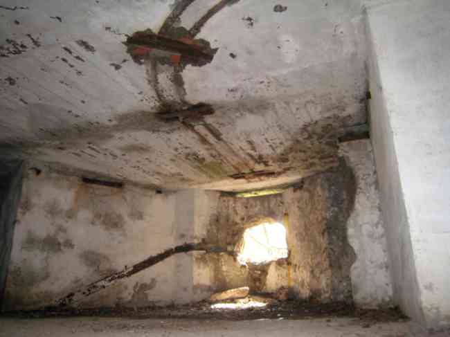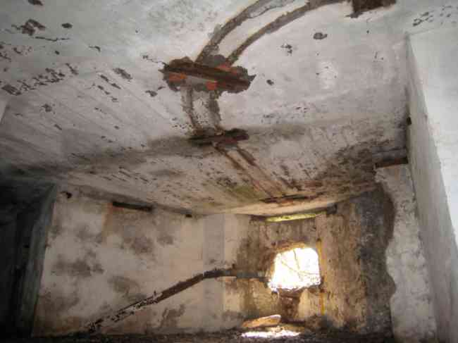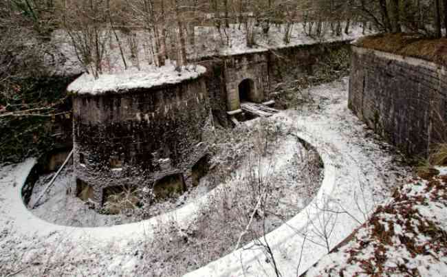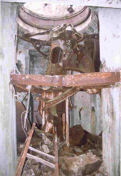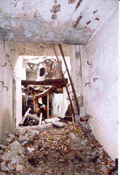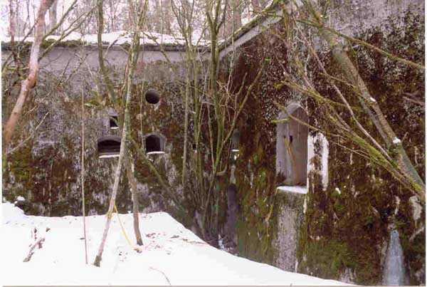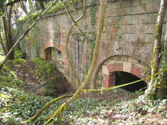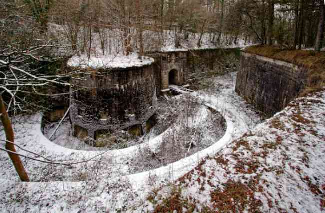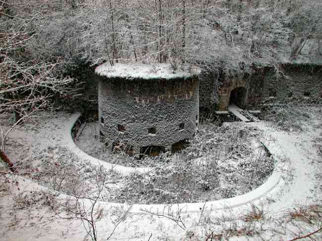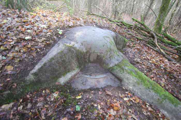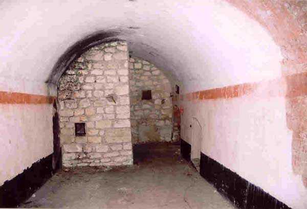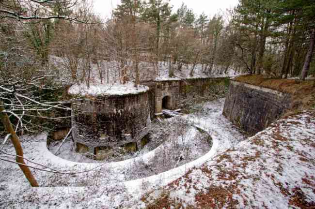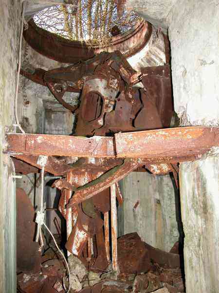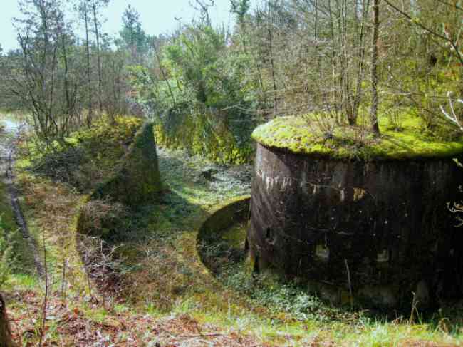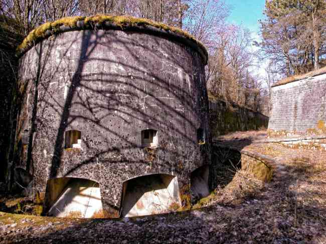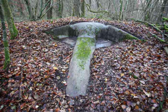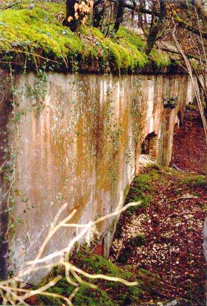 Verdun fortified camp, west-northwest of the city, 1883-1886. 289 m/alt. Called fort Manèque. Pentagonal fort for which we have been unable to find a plan before modernization. We can bet that the current counterscarp coffers (single at salients II and IV and double at salient III) replaced caponiers, that the barracks were preceded by a courtyard and surrounded by a street of the classical rampart; this is subject to verification, of course. This reservation is more than necessary because it would have been foolhardy of us to be satisfied with such a simplistic hypothesis. Indeed, the old barracks are located at the same level as the glacis and its barracks have battlements instead of windows. We are therefore dealing with a defensive barracks that is reminiscent of that of the Belle Épine post. Therefore, did not this barracks constitute the bottom of a curtain wall, a curtain wall absorbed by the extension towards the gorge required by the concreting of the war barracks? This is simply to demonstrate that in the absence of reference, it is always advisable to take advantage of what the terrain shows us and to avoid drawing hasty conclusions. Choisel was modernized or rather redesigned in several phases (1894, 1901 and 1906), which will give rise to a resolutely modern structure. A ramp descends, resting on the counterscarp, reaching the bottom of the ditch opposite the entrance. This entrance is preceded by a small ditch crossed by a drawbridge of the longitudinal Tripier type (with a bascule underneath). To the left of the entrance is a double caponier protected by the extension of the small ditch in front of the entrance. This horseshoe-shaped caponier is practically identical to that of the fort of Sartelles. To the right of the entrance is the alignment of the five large barracks of the concrete barracks. These barracks are preceded by a circulation corridor whose battlements overlook the gorge ditch. Note, a rare thing, that a urinal with a drainage pit is leaning against the counterscarp facing these barracks. Behind and right next to these barracks, a notch higher, is the old barracks. Two-thirds of the latter was buried so that these premises could continue to be occupied, but with a certain protection. As is the case in most of the reworked structures, the combat organs can be reached without leaving the protection of concrete ducts. Thus, behind front I-II, one can access a first Bourges casemate. The staircase joining the firing chambers to the basement has disappeared, but we will note that each of these firing chambers has its own niches for supplying ammunition. Behind the machine gun turret located to the right of this casemate, is the access shaft to the single vault of salient I. The latter is quite conventional except for its pink wall painting. The capital opens onto a rooted and chicane passage in which one can observe a washhouse as well as, singularly offset to the left in relation to salient III, the old access shaft to the caponier of this salient. We do not understand the usefulness of having preserved it, especially since it is blocked at its end, but it is a case that one sometimes encounters. Parallel to this shaft, a few meters on the right, is another, concreted, which leads to the double vault and to the 75 Mle 05 turret. It is necessary to return to the war barracks and cross it to reach behind the IV-V front a second Bourges casemate whose observatory has preserved its goniometer support. This casemate touches, within a meter, the gorge escarpment with its right rear and that of the IV-V front with its wing protection wall; this shows how close it is to the ditch. Via the left of this casemate, we reach a machine gun turret itself bypassed by the gallery leading to the simple vault of the IV salient. Note, on the top, between this machine gun turret and the 75 turret the presence of an infantry parapet with an observation sentry box whose neck is very long. Visited in February 1999 and March 2005, Choisel, although military terrain, is abandoned. It still has all of its armor. However, in 1944, the U.S. troops, before going to confront the Siegfried Line, carried out explosive tests here. Thus, the three armored observation posts were broken and their pieces stuck in their respective shafts. The body of the machine gun turret of salient II lies in the ditch, turret 75 resembles a puzzle with pieces scattered across the top. The cap of the machine gun turret of salient IV lies intact, three meters from its shaft. Even the armored sentry box appears to have received a massive hammer blow. That said, the underside of turret 75 offers a unique and Dantesque spectacle. During the explosion, the turret was in battery. The force of the blast pushed it back so violently that its lever arm was broken clean off. The rest of the mobile part, shredded, has something pathetic about it. From 1916-17, work was done to make it a center of resistance; galleries were chicaned, and an underground network with a cumulative length of 807 m, with access to two Pamart cloches, was dug. The most motivated will manage to find two concrete cisterns, isolated from the surrounding walls to reduce the vibrations caused by bombardment, cisterns one of whose faces is covered with graffiti dating from the 1920s. If it weren't for the state of its armor, and even then it is very informative, the fort is in a very satisfactory state of preservation. Note an annex battery on either side of the fort. A third was planned in the 1909 program, much further back, about 800 m to the east, for 4 x 155 L, but it seems to have remained in the boxes. In June or July 2008, the fort's gate was walled up with concrete blocks.
