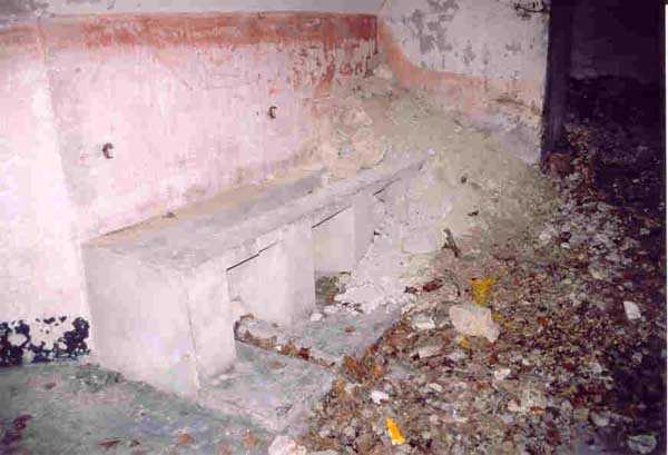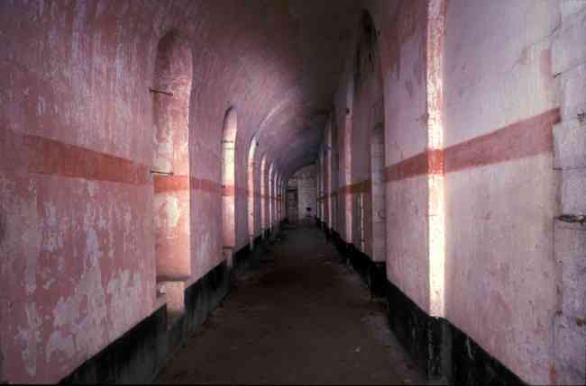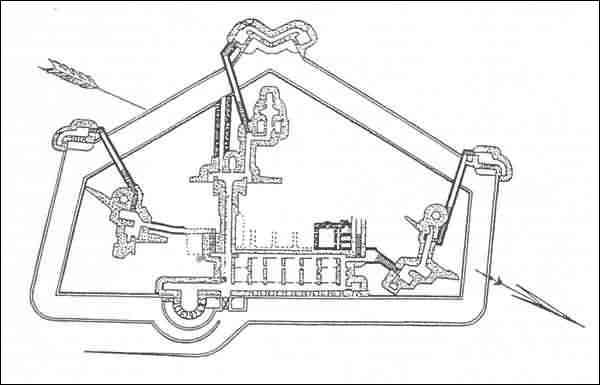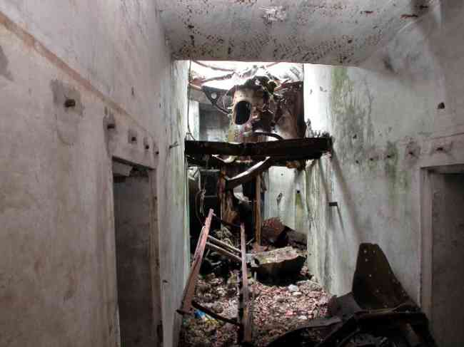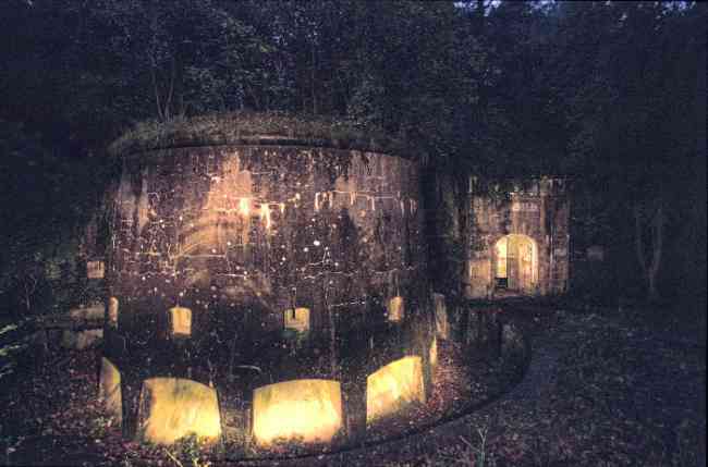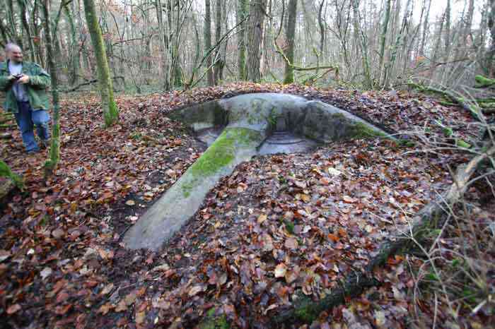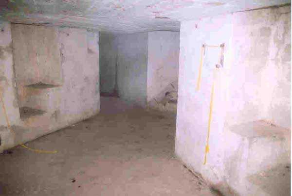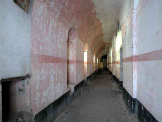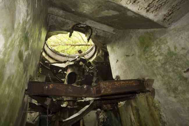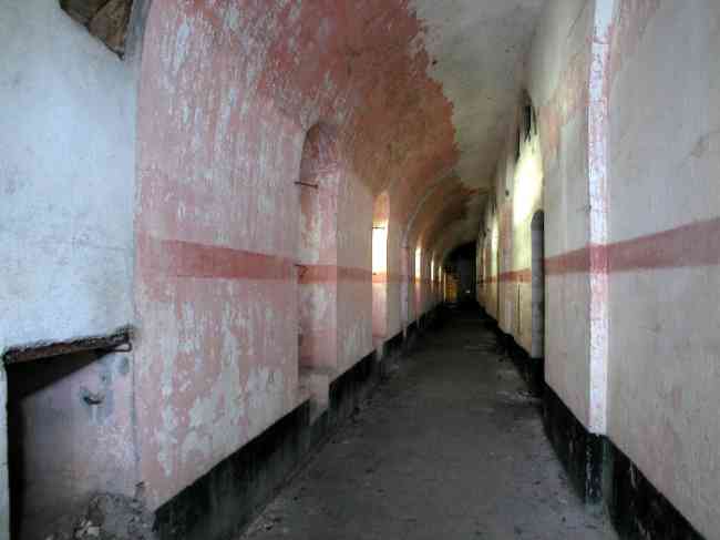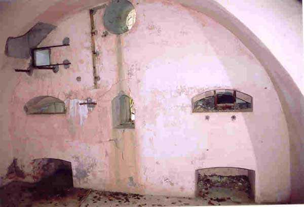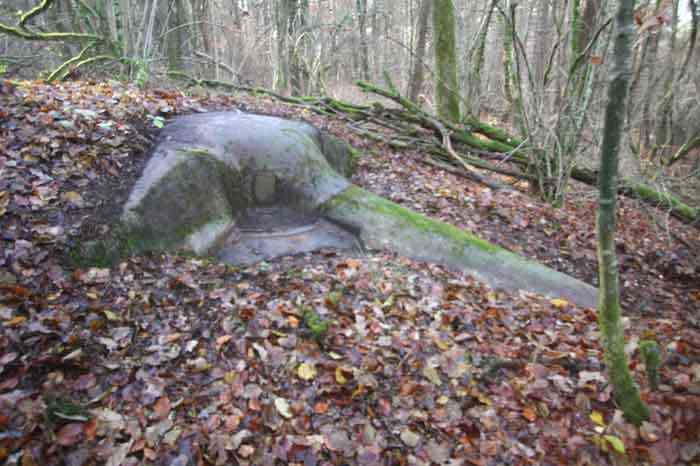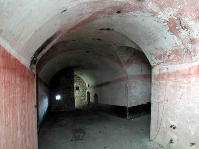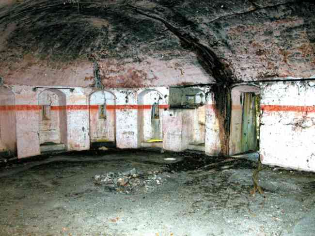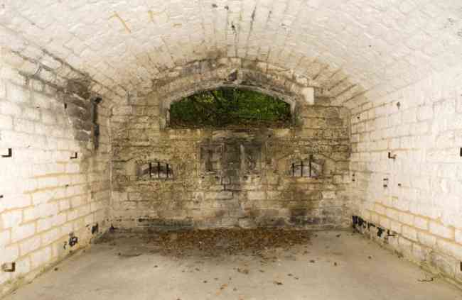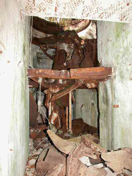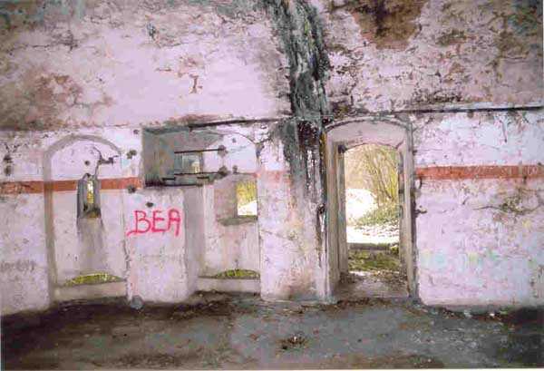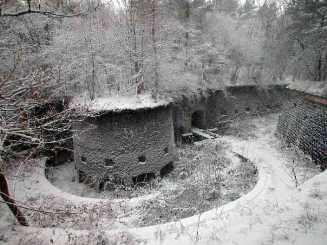 Verdun fortified camp, west-northwest of the city, 1883-1886. 289 m/alt. Called fort Manèque. Pentagonal fort for which we have been unable to find a plan before modernization. We can bet that the current counterscarp coffers (single at salients II and IV and double at salient III) replaced caponiers, that the barracks were preceded by a courtyard and surrounded by a street of the classical rampart; this is subject to verification, of course. This reservation is more than necessary because it would have been foolhardy of us to be satisfied with such a simplistic hypothesis. Indeed, the old barracks are located at the same level as the glacis and its barracks have battlements instead of windows. We are therefore dealing with a defensive barracks that is reminiscent of that of the Belle Épine post. Therefore, did not this barracks constitute the bottom of a curtain wall, a curtain wall absorbed by the extension towards the gorge required by the concreting of the war barracks? This is simply to demonstrate that in the absence of reference, it is always advisable to take advantage of what the terrain shows us and to avoid drawing hasty conclusions. Choisel was modernized or rather redesigned in several phases (1894, 1901 and 1906), which will give rise to a resolutely modern structure. A ramp descends, resting on the counterscarp, reaching the bottom of the ditch opposite the entrance. This entrance is preceded by a small ditch crossed by a drawbridge of the longitudinal Tripier type (with a bascule underneath). To the left of the entrance is a double caponier protected by the extension of the small ditch in front of the entrance. This horseshoe-shaped caponier is practically identical to that of the fort of Sartelles. To the right of the entrance is the alignment of the five large barracks of the concrete barracks. These barracks are preceded by a circulation corridor whose battlements overlook the gorge ditch. Note, a rare thing, that a urinal with a drainage pit is leaning against the counterscarp facing these barracks. Behind and right next to these barracks, a notch higher, is the old barracks. Two-thirds of the latter was buried so that these premises could continue to be occupied, but with a certain protection. As is the case in most of the reworked structures, the combat organs can be reached without leaving the protection of concrete ducts. Thus, behind front I-II, one can access a first Bourges casemate. The staircase joining the firing chambers to the basement has disappeared, but we will note that each of these firing chambers has its own niches for supplying ammunition. Behind the machine gun turret located to the right of this casemate, is the access shaft to the single vault of salient I. The latter is quite conventional except for its pink wall painting. The capital opens onto a rooted and chicane passage in which one can observe a washhouse as well as, singularly offset to the left in relation to salient III, the old access shaft to the caponier of this salient. We do not understand the usefulness of having preserved it, especially since it is blocked at its end, but it is a case that one sometimes encounters. Parallel to this shaft, a few meters on the right, is another, concreted, which leads to the double vault and to the 75 Mle 05 turret. It is necessary to return to the war barracks and cross it to reach behind the IV-V front a second Bourges casemate whose observatory has preserved its goniometer support. This casemate touches, within a meter, the gorge escarpment with its right rear and that of the IV-V front with its wing protection wall; this shows how close it is to the ditch. Via the left of this casemate, we reach a machine gun turret itself bypassed by the gallery leading to the simple vault of the IV salient. Note, on the top, between this machine gun turret and the 75 turret the presence of an infantry parapet with an observation sentry box whose neck is very long. Visited in February 1999 and March 2005, Choisel, although military terrain, is abandoned. It still has all of its armor. However, in 1944, the U.S. troops, before going to confront the Siegfried Line, carried out explosive tests here. Thus, the three armored observation posts were broken and their pieces stuck in their respective shafts. The body of the machine gun turret of salient II lies in the ditch, turret 75 resembles a puzzle with pieces scattered across the top. The cap of the machine gun turret of salient IV lies intact, three meters from its shaft. Even the armored sentry box appears to have received a massive hammer blow. That said, the underside of turret 75 offers a unique and Dantesque spectacle. During the explosion, the turret was in battery. The force of the blast pushed it back so violently that its lever arm was broken clean off. The rest of the mobile part, shredded, has something pathetic about it. From 1916-17, work was done to make it a center of resistance; galleries were chicaned, and an underground network with a cumulative length of 807 m, with access to two Pamart cloches, was dug. The most motivated will manage to find two concrete cisterns, isolated from the surrounding walls to reduce the vibrations caused by bombardment, cisterns one of whose faces is covered with graffiti dating from the 1920s. If it weren't for the state of its armor, and even then it is very informative, the fort is in a very satisfactory state of preservation. Note an annex battery on either side of the fort. A third was planned in the 1909 program, much further back, about 800 m to the east, for 4 x 155 L, but it seems to have remained in the boxes. In June or July 2008, the fort's gate was walled up with concrete blocks.
