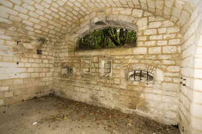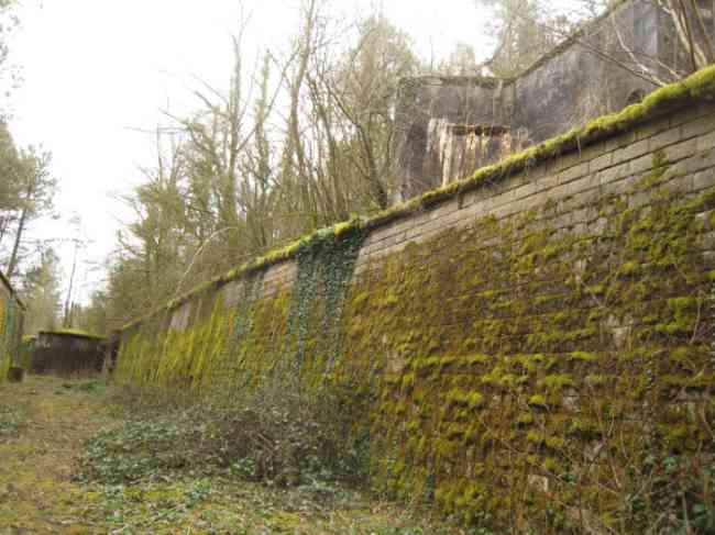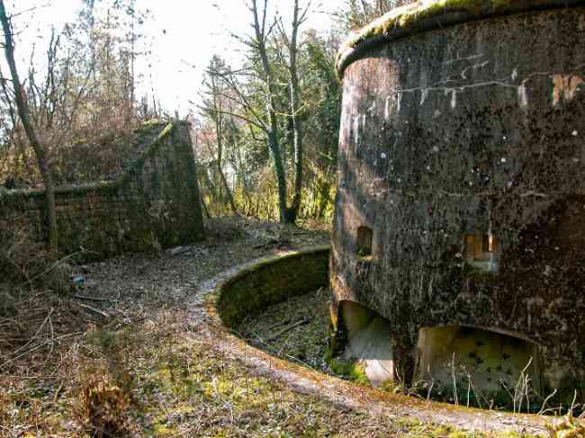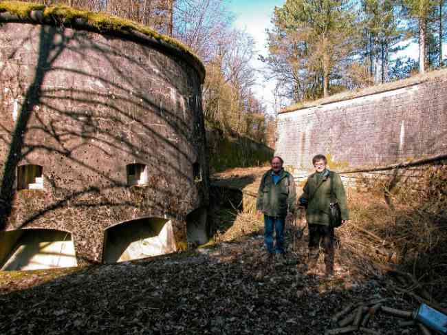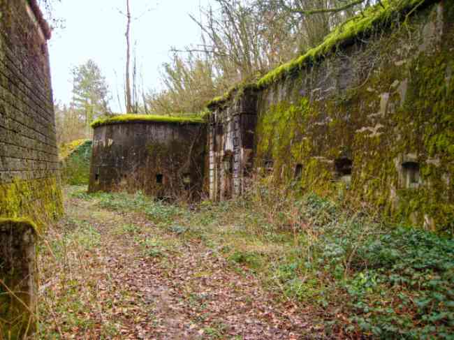 Befestigtes Lager von Verdun, westnordwestlich der Stadt, 1883–1886. 289 m ü. M. Genannt Fort Manèque. Fünfeckiges Fort, für das wir vor der Modernisierung keinen Plan finden konnten. Wir können wetten, dass die heutigen Kontereskarpenkassetten (einfach an den Frontbogen II und IV und doppelt an Frontbogen III) die Kaponnieren ersetzten, dass den Kasernen ein Hof voranging und sie von einer Straße des klassischen Walls umgeben waren; dies muss natürlich überprüft werden. Dieser Vorbehalt ist mehr als notwendig, denn es wäre tollkühn von uns gewesen, uns mit einer so vereinfachenden Hypothese zufrieden zu geben. Tatsächlich befinden sich die alten Kasernen auf der gleichen Höhe wie das Glacis und ihre Kasernen haben Zinnen anstelle von Fenstern. Es handelt sich also um eine Verteidigungskaserne, die an die des Stützpunkts Belle Épine erinnert. Bildete diese Kaserne also nicht den unteren Teil einer Kurtine, die von der durch die Betonierung der Kriegskaserne erforderlichen Erweiterung in Richtung Schlucht absorbiert wurde? Dies soll lediglich zeigen, dass es in Ermangelung von Referenzen immer ratsam ist, das zu nutzen, was uns das Gelände zeigt, und voreilige Schlussfolgerungen zu vermeiden. Choisel wurde in mehreren Phasen (1894, 1901 und 1906) modernisiert bzw. neu gestaltet, wodurch eine entschieden moderne Struktur entstand. Eine Rampe führt hinunter, ruht auf der Kontereskarpe und erreicht den Boden des Grabens gegenüber dem Eingang. Diesem Eingang geht ein kleiner Graben voraus, über den eine Zugbrücke vom Typ Tripier (mit einer Klappbrücke darunter) führt. Links vom Eingang befindet sich eine doppelte Kaponniere, die durch die Verlängerung des kleinen Grabens vor dem Eingang geschützt ist. Diese hufeisenförmige Kaponniere ist praktisch identisch mit der des Forts von Sartelles. Rechts vom Eingang befinden sich die fünf großen Betonbaracken. Diesen Baracken geht ein Verkehrskorridor voraus, dessen Zinnen den Schluchtgraben überblicken. Beachten Sie, was selten ist, dass an der Kontereskarpe gegenüber diesen Baracken ein Urinal mit einer Abflussgrube lehnt. Hinter und direkt neben diesen Baracken, etwas höher, befinden sich die alten Baracken. Zwei Drittel der letzteren wurden eingegraben, damit diese Räumlichkeiten weiterhin bewohnt werden konnten, jedoch mit einem gewissen Schutz. Wie bei den meisten umgebauten Bauwerken sind die Kampforgane erreichbar, ohne den Schutz der Betonkanäle zu verlassen. So gelangt man hinter der Front I-II in eine erste Kasematte von Bourges. Die Treppe, die die Feuerkammern mit dem Keller verbindet, ist verschwunden, aber wir werden feststellen, dass jede dieser Feuerkammern ihre eigenen Nischen für die Munitionsversorgung hat. Hinter dem Maschinengewehrturm rechts von dieser Kasematte befindet sich der Zugangsschacht zum Einzelgewölbe von Frontbogen I. Dieser ist bis auf seine rosa Wandbemalung recht konventionell. Das Kapitell öffnet sich zu einem gewurzelten und schikanierten Gang, in dem man ein Waschhaus sowie, im Verhältnis zu Frontbogen III etwas nach links versetzt, den alten Zugangsschacht zur Kaponniere dieses Frontbogens sehen kann. Wir verstehen nicht, warum es sinnvoll war, ihn zu erhalten, zumal er an seinem Ende verstopft ist, aber man sieht so einen Fall manchmal. Parallel zu diesem Schacht, einige Meter rechts, befindet sich ein weiterer, betonierter Schacht, der zum Doppelgewölbe und zum Turm 75 Mle 05 führt. Man muss zur Kaserne zurückkehren und diese durchqueren, um hinter der Front IV-V eine zweite Bourges-Kasematte zu erreichen, deren Observatorium seinen Goniometerträger erhalten hat. Diese Kasematte berührt mit ihrer rechten Rückseite im Umkreis von einem Meter die Böschung der Schlucht und mit ihrer Flügelschutzmauer die der Front IV-V; dies zeigt, wie nah es am Graben liegt. Links von dieser Kasematte erreichen wir einen Maschinengewehrturm, der von einer Galerie umgangen wird, die zum einfachen Gewölbe des Frontbogens IV führt. Oben, zwischen diesem Maschinengewehrturm und Turm 75, ist eine Infanteriebrüstung mit einem Beobachtungshäuschen mit sehr langem Hals zu sehen. Choisel wurde im Februar 1999 und März 2005 besucht und ist trotz seines militärischen Status verlassen. Es ist noch vollständig gepanzert. 1944 führten die US-Truppen hier jedoch Sprengstofftests durch, bevor sie in die Schlacht gegen den Westwall zogen. Dabei wurden die drei gepanzerten Beobachtungsposten zerstört und ihre Teile blieben in ihren jeweiligen Schächten stecken. Der Korpus des Maschinengewehrturms von Frontbogen II liegt im Graben, Turm 75 ähnelt einem Puzzle, dessen Teile oben verstreut sind. Die Kappe des Maschinengewehrturms von Frontbogen IV liegt intakt, drei Meter von seinem Schacht entfernt. Sogar das gepanzerte Wachhäuschen scheint einen massiven Hammerschlag abbekommen zu haben. Dennoch bietet die Unterseite von Turm 75 ein einzigartiges, danteskes Schauspiel. Während der Explosion befand sich der Turm in Bewaffnung. Die Wucht der Druckwelle drückte ihn so heftig zurück, dass sein Hebelarm vollständig abbrach. Der zerfetzte Rest des beweglichen Teils hat etwas Pathoshaftes an sich. Von 1916 bis 1917 wurde daran gearbeitet, es zu einem Widerstandszentrum zu machen; Stollen wurden mit Schikanen versehen und ein unterirdisches Netzwerk mit einer Gesamtlänge von 807 m mit Zugang zu zwei Pamart-Glocken gegraben. Die Motiviertesten werden zwei Betonzisternen finden, die von den umgebenden Mauern isoliert sind, um die durch den Beschuss verursachten Vibrationen zu dämpfen. Eine der Zisternen ist mit Graffiti aus den 1920er Jahren bedeckt. Wäre da nicht der Zustand der Panzerung – und selbst dann ist er sehr aufschlussreich –, befindet sich das Fort in einem sehr zufriedenstellenden Erhaltungszustand. Beachten Sie eine Nebenbatterie auf beiden Seiten des Forts. Eine dritte war im Programm von 1909 viel weiter hinten, etwa 800 m östlich, für 4 x 155 L geplant, scheint aber i