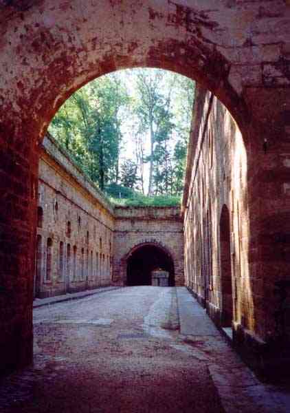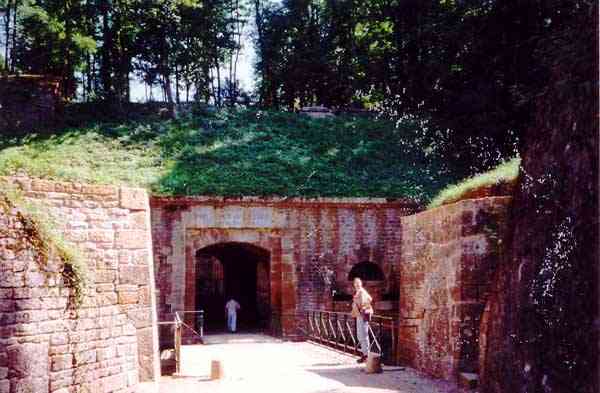 Fortress of Langres, southeast of the city, 1874-1877. 482 m/alt. Called fort Vercingétorix. The southern pillar of Langres Square, it was intended, in particular, to protect the Chalindrey railway junction. This is a large fort with an envelope, perfectly deserving of this designation because, and this is exceptional, the redoubt is isolated within this envelope, or, in other words, no front of this redoubt constitutes part of the outer perimeter. The envelope occupies a vast trapezoidal space surrounded by a dry ditch. No fewer than seven shelter traverses and three direct-fire casemates are distributed there so as to have all-round action. These casemates have in their extension a room used for mixed barracks/storerooms, with a hearth. The envelope also housed a guardhouse, two artillery hangars, and one or more barracks. Two of the sheltered traverses of this envelope are topped with a concrete observatory. A few meters from the entrance to the redoubt, under the counterscarp, a small rock magazine has been dug out, the head of whose freight elevator opens into the envelope in the form of a large concrete dome. The shape of the redoubt can be compared to a rectangle broken at a third of its length. The defense of its perimeter is quite remarkable, the break resulting in a re-entrant angle which was provided with a double scarp chest, probably unique in the Séré de Rivières system, insofar as the salient angle of the connecting gallery between the gun cellars is located at the junction point of the extension of the scarp lines; in our opinion, it cannot be a question of a curtain wall. Specialists will decide the question. This chest enfilades fronts I-II and II-III. Salient IV (this numbering includes the re-entrant angle counted as II) had a double counterscarp box built, but projecting into the ditch. In other words, this box is not nestled in a corner, but advances into the ditch. Its fires, beating fronts III-IV and IV-V, therefore do not intersect as is the case in a classic arrangement. This arrangement implies an intersection of the angle of the scarp which, like the tip of the Éperon battery in Nancy, thus has one more angle than its counterscarp. The rest of the perimeter of the redoubt, fronts V-VI and the gorge, is under the fires of a second counterscarp box, the latter more classic, although such rubble masonry structures are not legion. These two boxes are preceded by their own ditch which is crossed perpendicularly by the access shaft which, crenellated, forms a caponier. We have not encountered this arrangement anywhere else. The entrance to the redoubt opens into the hollow of a small curtain wall whose sides do not include any defensive battlements. The escarpment is attached. The entrance porch extends into a tunnel on either side of which are cubicles, one of which houses a drinking water well. Behind these cubicles, two powder magazines aligned with four lamp battlements were supposed to contain, one 100 tons and the other, 2.25 m shorter, 80,600 kg. The tunnel opens into a courtyard with a light well bordered on each side by seven barracks on a single level. Opposite, a second tunnel passage serves some magazines before opening into a second courtyard, also with a light well, but smaller and oriented according to the break in the perimeter. Four large bays, one of which contains a furnace for 300 rations, are located on the right and various magazines face them. None of the bays have the cradle of its vault highlighted by a masonry arch on the facade. Each barracks was heated by a hearth. A circulation gallery at the rear of all these rooms allowed access to any part of the redoubt without having to cross one of these two courtyards. The double escarpment vault has a postern protected by a ditch crossed by a retractable footbridge. It was possible to access the envelope from there. The perpendicular defense of the cannon embrasures has been modified. Two grenade chutes open into each of the foot crenellations. This modification is not visible from the exterior where the original crenellations have been preserved. On the interior side, the pierced reinforcement of the chutes is exceptionally neat, with cemented plaster and false masonry joints. The drainage of wastewater from the fort appears in the fruit of the left foot crenellation. Sixteen shelter-crossings, five of which are rooted, line the rampart street. The gorge front is devoid of them. The three located behind salient III are all direct-fire casemates. In fact, the Cognelot was to have received two armored casemates in hard cast iron Mle 1878 and a third in its envelope; this was never realized. The upper parts of the central massif are organized into an infantry crest. Two spiral staircases provided access to them. Nevertheless, the most remarkable element of the upper parts is undoubtedly the three-way casemated optical communications post. The two right-hand battlements are very large, approximately 100 cm on each side. One communicated with the Chailluz fort in Besançon (75 km) and the other with the Mont Afrique redoubt in Dijon (65 km). With all due reservations, it is possible that the last battlement, the one furthest to the left and of smaller dimensions, was oriented towards the Plesnoy fort, 11,800 m away. Some elements of the heliostat are still in place. Outside the optical post, an orientation table, with a bronze circular indicating several directions, was to be used for exercises. The circular in question had been recovered by a villager who piously preserved it until the creation of the association for the preservation of the fort in January 2002. Since 1995, the fort has been the property of the community of communes of the Chalindrey region. It is also locally called "Fort de Chalindrey". Having visited it in August 2000 and again in October 2007, we are able to appreciate the enormous work carried out by the volunteers of the "Effort du Cognelot" association. To their credit, 