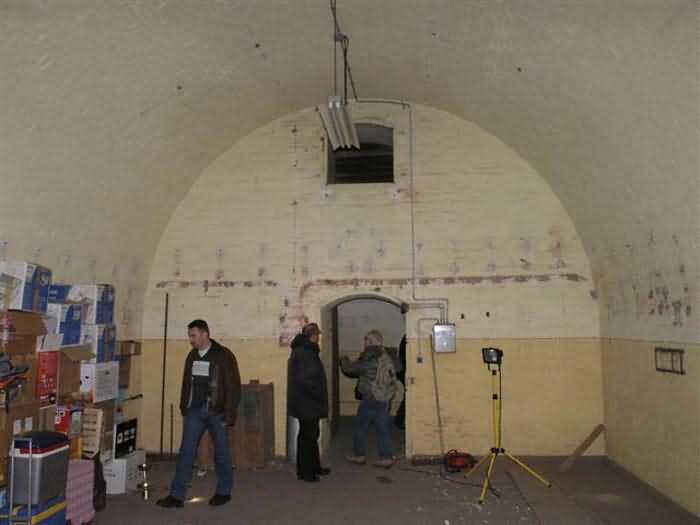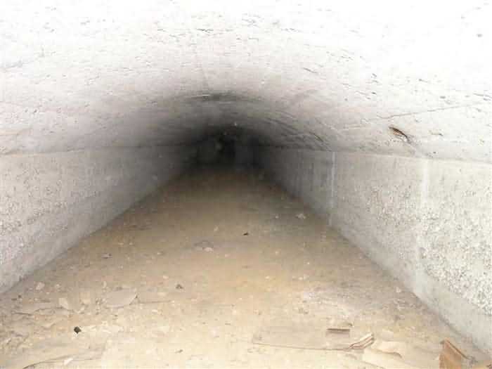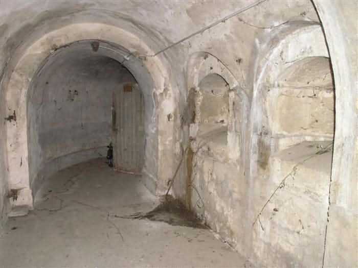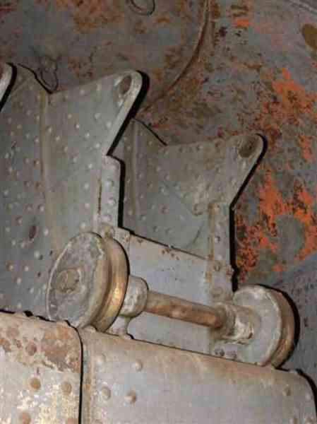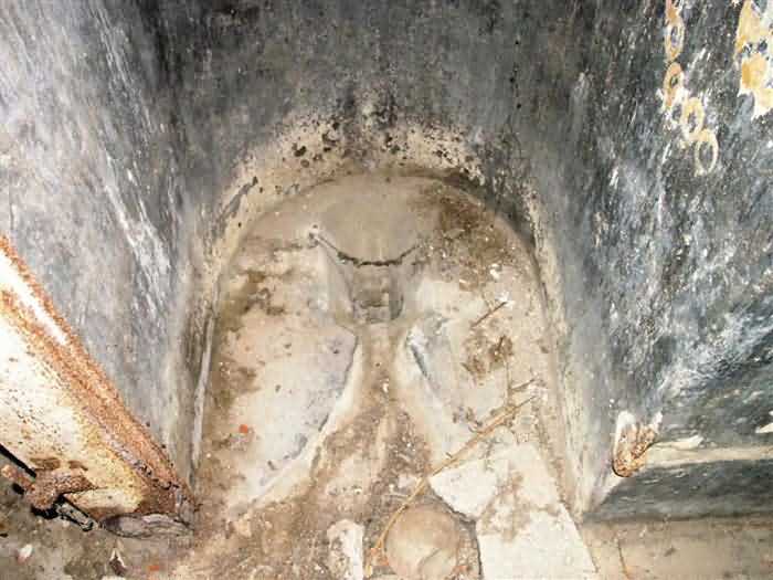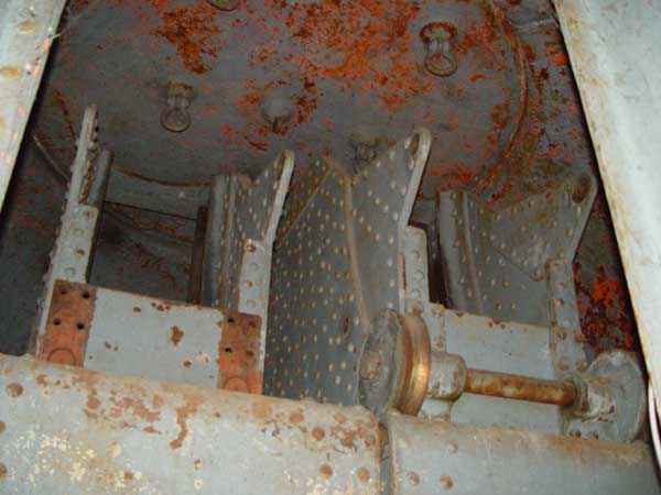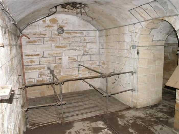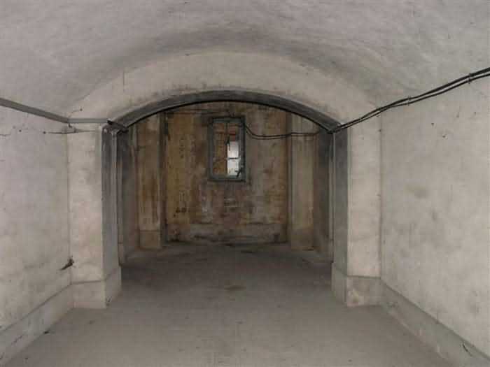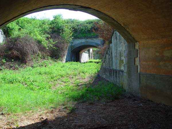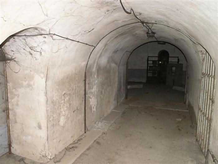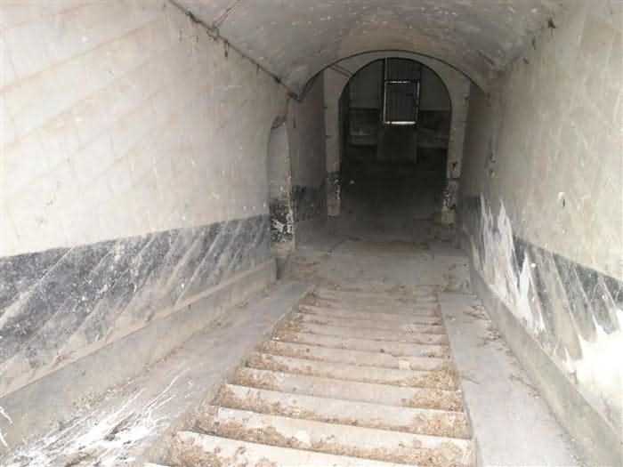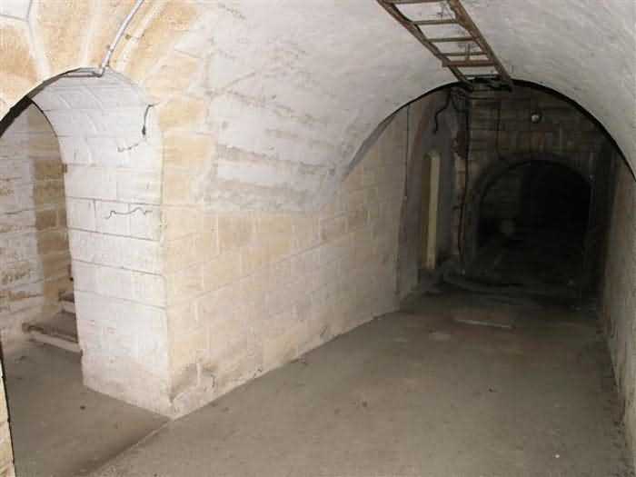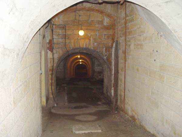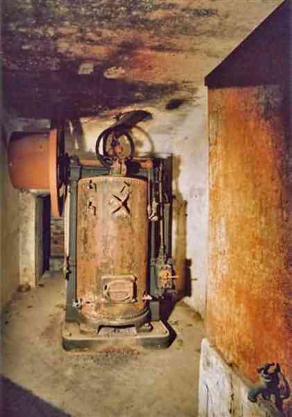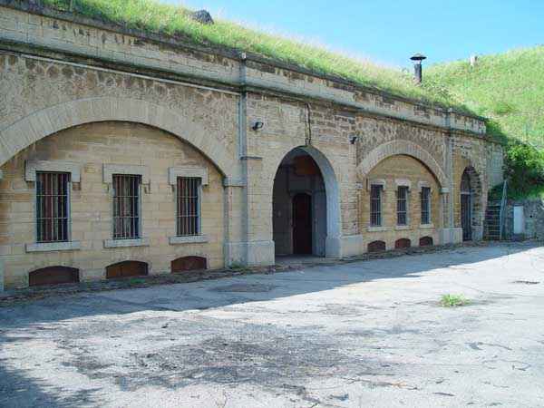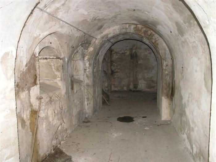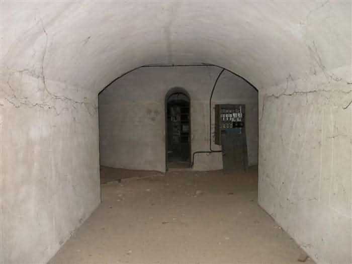 Fortress of Lyon, south-south-east of the city, 1878-1880. 210 m/alt. 164 men. Irregular quadrilateral with re-entrant gorge, Fort Corbas occupies a rather restricted area. On this surface, it concentrates a not insignificant sum of points of interest and specificities for the amateur. A covered way follows the perimeter of the counterscarp, except at salient II where it encircles an excrescence of a few tens of metres where two solid traverses are located and at the centre of front III-IV where an infantry bonnet has been arranged. The gorge is also preceded by a ravelin on the glacis. The scarp and counterscarp walls, mostly in concrete, have a pronounced batter, but nevertheless less than at Feyzin. The fixed bridge still rests on the original metal pillars. The entrance is original and very pretty with towers occupying the internal angles of the gorge front curtain. The entrance building is also worth seeing for its basement and mezzanine. The defensive coffres have a very great depth (7 x 4 m), their blind spots are swept from the foot of the corner towers and a conical shaft in their vault must have contributed to their ventilation. A stair-ramp serves each coffre. The one of the right coffre is surmounted by a strange metal tank covering the entire vault and parallel to the first flight of steps as well as the first landing. Of the bascule bridge underneath, few vestiges remain and the shaft, lacking a curbstone, covered with a simple stone plug, opens in the floor of the lower level where the washbasins are still found. The mezzanine is occupied by the remarkably preserved disciplinary rooms, with doors and locks, as well as by the officers' kitchen and the provision store. It should be noted that the vast majority of door frames and panels indicating the function of the rooms are in place. The rather small courtyard precedes the barracks of five bays on two levels transformed over the course of occupations. Nevertheless, the ventilation device of the quarters on the first floor appears in two double small openings on either side of the projection of the piers. The same thing existed on the ground floor but has been blocked up. We do not know of any other fort where one can see a similar arrangement. On either side of the courtyard, a tunnel passage leads towards the rampart street. The left one runs alongside the powder magazine, which is installed perpendicularly on the left of the passage. Rarely, the ventilated voids are discernible in this passage thanks to two basement windows. The lattice doors still bar the lateral galleries in which the usual angular loopholes are replaced by oblique conduits (nine per flank, directed downwards) of 14 cm diameter (also a unique case). The entrance door of the airlock comprises the three locks that are usually found on the outer door of the storage room. This outer door has, here, all its bronze hardware and has preserved its lock which, at 14 x 10 cm is smaller than usual (225 x 113 mm). The inner door is no longer there, but a bronze strap caged the bolt of the lock and hinges of the same metal testify to its past presence. The left lateral gallery ends with a staircase surmounted by a shaft with its armour in place. The staircase descends towards the ventilated voids and there, we find the concrete with which the forts of Lyon are accustomed. A third ventilated void runs under the right lateral gallery. The rampart street, running behind fronts I-II, II-III and III-IV, comprises three shelter-traverses per front. Three traverses are rooted, namely the central one of the head front and those behind salients II and III which, in addition, house the descent galleries towards the caponiers. We must note for accuracy that the traverse behind salient II has no shelter body, the space taken by the substructures of the turret being too cumbersome. This gives us a total of eleven hollow traverses, ten of which with a shelter/magazine. These traverses are covered on the facade with a cement plaster, have for the most part retained their door frames (double-leaf doors surmounted by fixed shutters) and one accesses the firing platforms via stairs originating in a rounded return of their facade. Externally, the double caponier at salient II is almost square. Its access gallery nevertheless emerges into an arc of a circle formed by piers separating the firing chambers, two per flank. The 12 calibre breech-loading guns were placed as they should be on the counterscarp side and the embrasure oriented towards salient III has preserved its wooden sliding obturator shutter. The angle at the junction of the flanks includes a triangular projection provided with loopholes to protect the exterior of these flanks. The wing at salient III has nothing particular except that one accesses the shelter traverse of this salient from the gallery and a staircase and that the concrete is clearly apparent in the rooted passage. Onto the rampart street also open Turkish latrines, the doors of whose cubicles have retained a handle to help visitors get up. Although, as we have just read, the fort is already worthy of interest as it is, we must come to the essential: the Mougin turret Mle 1876 for two 155 L de Bange guns, installed in 1883. This turret, as we have already mentioned, surmounts the access gallery to the double caponier. Certainly the guns have disappeared, but for the rest it is in its original state. Among those we have visited, it retains a special place. Numerous door frames, including tool boards behind the guns, with inexplicable sieves, were only seen there. In the firing chamber, the place of everyone is indicated in full words: ammunition passer, loader, gun captain…. Another inscription, with the same characters, indicates that it was overhauled on 22- ??-3?. The grey colour, as one only encounters in the fortress of Toul, is still everywhere apparent on a background of orange red lead. The embrasures have been walled up and the rotation device has