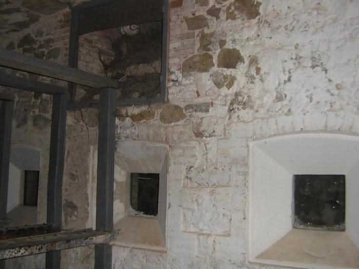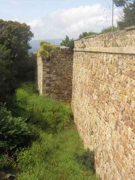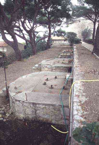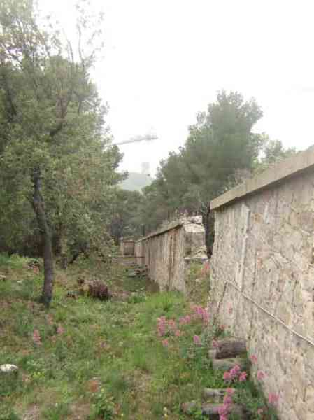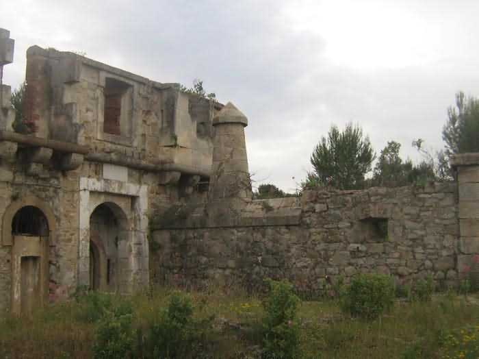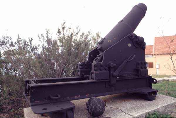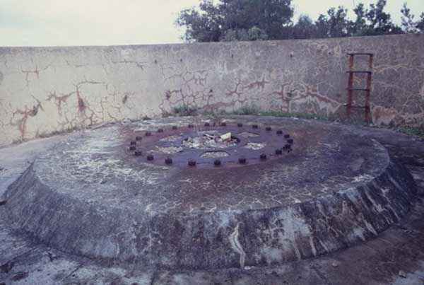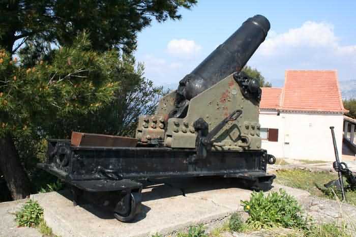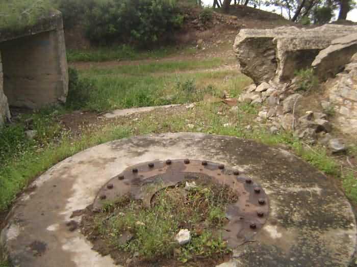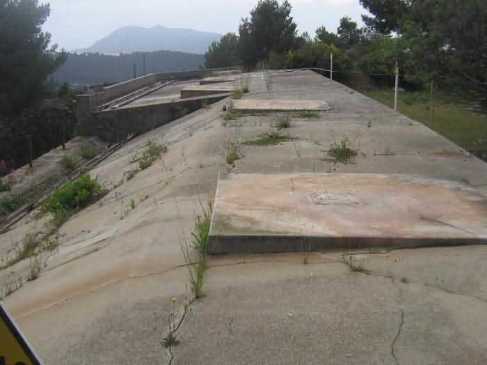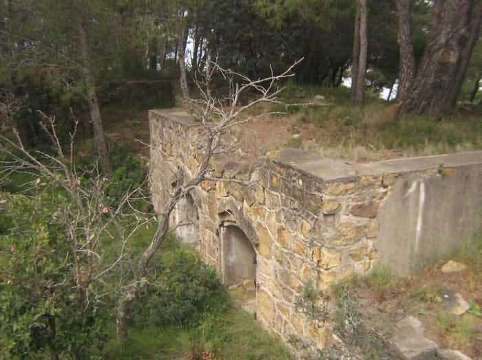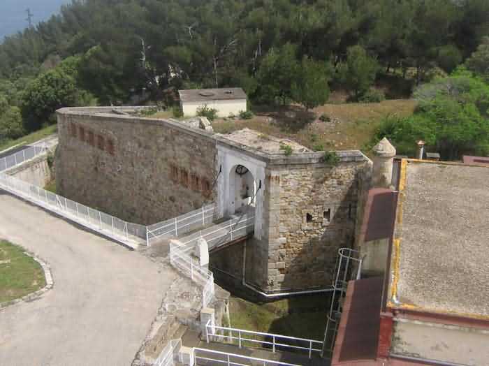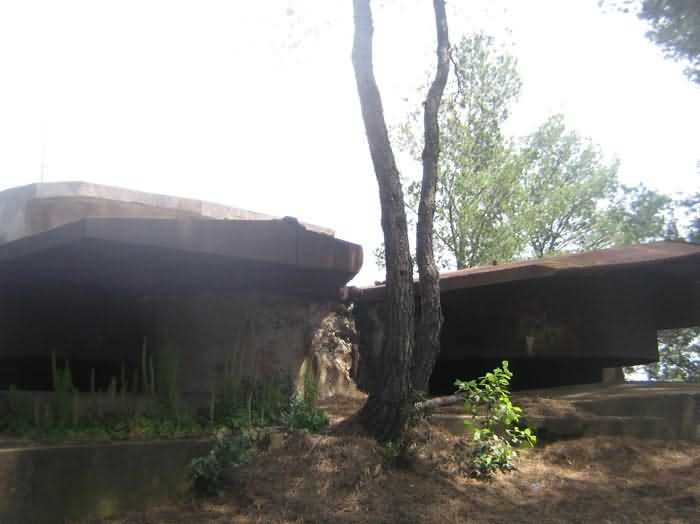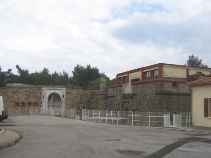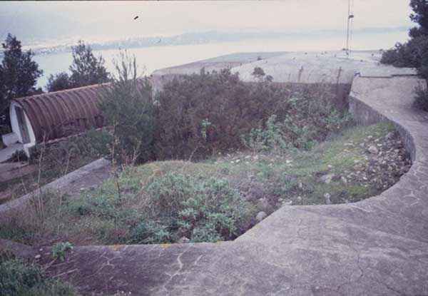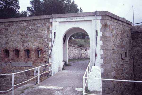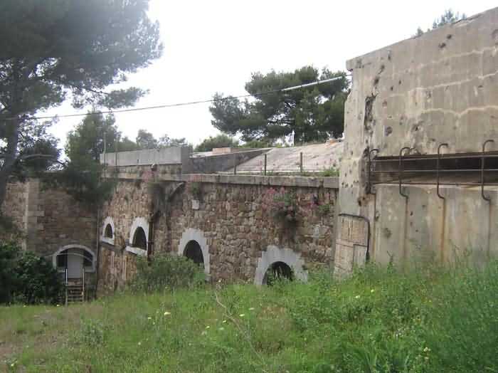 Fortress of Toulon, south of the city. Peninsula of Saint-Mandrier. 90 to 110 m/alt. A tower Mle 1811 no. 1 is erected in 1812. From 1849 to 1853, a rampart with barracks is built around this tower, giving the whole the shape of a pentagonal fort, the tower forming the salient at the center of the gorge. Coastal batteries are built from 1877 in the surroundings (decision of October 16, 1874). Thus, along the access road, just past the high battery of the caraque, one finds the three pairs of firing emplacements of what will be designated the "North 90 mm Battery" (Mle 1877 on field carriage) and trained on the roadstead just opposite the fort's tower, 2 guns 19 c G Mle 1875-76 on G P.A. carriage. Let us note moreover that after the battery keeper's lodging remains on a pedestal what we initially took for a very pretty 19 c muzzle-loading cannon while in fact it is the mounting of a 30 carronade (16 cm), baptized R 1842 No. 118 mounted on a naval carriage, manufactured in 1882 by the company Claparède, in Saint-Denis, and bearing No. 74. In the counterscarp of the northeast ditch of the fort are arranged, side by side, two magazines. The first, for powder, has a storage room of 16.80 × 5.60 m; the second, for projectiles, measures 12 × 6 m at floor level. In 1891 an underground magazine is dug whose staircase emerges into this projectile magazine. This magazine communicates with three lifts, one of which opens into the lateral passage of the powder magazine. This underground magazine also has a very long gallery (150 m) going to serve the 24 c battery. This magazine still includes interesting remains such as lifts, transport rails, etc. (04/2006). In 1899, a narrow gauge railway is installed to improve the supply organization. In 1906, in addition to the guns already mentioned earlier, one finds at the rear of the fort, right against front I-I, oriented towards the open sea, a line of 8 emplacements for guns 19 c G Mle 1875-76 on G P.C. carriage; finally, practically perpendicular to the eastern end of this line of 8 guns, a third battery of 4 × 24 c G Mle 1876 on G P.C. carriage (oriented east-northeast). Additionally, mention is made of an auxiliary battery for 4 × 95 mm Mle 1888 on carriage Mle 1904, which is located about 400 meters forward and downhill from the 24 c battery. In 1912-1913, the 24 c and 8 × 19 c batteries are demolished and, on the site of the 24 c battery, a very modern battery for 240 mm guns on carriage Mle 1911 is poured, whose observation post is located to the left of the Cépet battery. The site will undergo serious modifications during the interwar period. The Germans will leave some naive frescoes in the command post. Military terrain and semaphore of the Navy, visit is subject to authorization. The geographical coordinates above indicate the location of the Croix des Signaux fort.