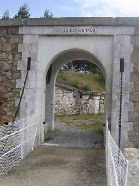 Pevnost Toulon, jih města. Poloostrov Saint-Mandrier. 90 až 110 m/n.m. Věž Mle 1811 č. 1 je postavena roku 1812. Od roku 1849 do 1853 se kolem této věže staví hradba s kasárnami, což celku dá tvar pětiboké pevnosti, přičemž věž tvoří výběžek ve středu hrdla. Pobřežní baterie jsou stavěny od roku 1877 v okolí (rozhodnutí ze 16. října 1874). Tak se podél přístupové cesty, sotva minuta vysoká baterie karaky, nalézají tři páry palebných postavení toho, co bude označováno jako "Severní baterie 90 mm" (Mle 1877 na polním lafetu) a namířeny na rejdu právě naproti věži pevnosti, 2 děla 19 c G Mle 1875-76 na lafetu G P.A. Dodejme, že po ubytování hlídače baterie zůstává na podstavci to, co jsme zprvu považovali za velmi pěkné 19 c dělo nabíjené ústím, zatímco ve skutečnosti jde o montáž 30 karronády (16 cm), pokřtěné R 1842 Č. 118 montované na palubní lafetu, vyrobené roku 1882 firmou Claparède v Saint-Denis a nesoucí Č. 74. V kontreskarpě severovýchodního příkopu pevnosti jsou upraveny, bok po boku, dva sklady. První, pro prach, má skladovací prostor 16,80 × 5,60 m; druhý, pro projektily, měří 12 × 6 m v půdorysu. Roku 1891 se hloubá podskalsní sklad, jehož schodiště ústí do tohoto skladu projektilů. Tento sklad komunikuje se třemi výtahy, z nichž jeden se otvírá do boční chodby prachového skladu. Tento podskalsní sklad má také velmi dlouhou galerii (150 m) jdoucí obsluhovat baterii 24 c. Tento sklad ještě zahrnuje zajímavé pozůstatky jako výtahy, transportní koleje, atd. (04/2006). Roku 1899 se instaluje úzkokolejná dráha pro zlepšení organizace zásobování. Roku 1906, kromě děl již dříve zmíněných, nalézá se v zátylku pevnosti, těsně u fronty I-I, orientovaná k moři, linie 8 postavení děl 19 c G Mle 1875-76 na lafetu G P.C.; konečně, prakticky kolmo k východnímu konci této linie 8 děl, třetí baterie 4 × 24 c G Mle 1876 na lafetu G P.C. (orientovaná východ-severovýchod). Nadto je zmínka o pomocné baterii pro 4 × 95 mm Mle 1888 na lafetu Mle 1904, která se nachází asi 400 metrů vpředu a pod baterií 24 c. V letech 1912-1913 se demolují baterie 24 c a 8 × 19 c a na místě té 24 c se lije velmi moderní baterie pro děla 240 mm na lafetu Mle 1911, jejíž pozorovatelna se nachází vlevo od baterie Cépet. Místo pozná vážné přestavbě během meziválečného období. Němci zanechají několik naivních fresek ve velitelském stanovišti. Vojenský prostor a semafor námořnictva, návštěva podléhá povolení. Výše uvedené zeměpisné souřadnice udávají umístění pevnosti Croix des Signaux.