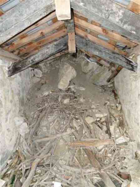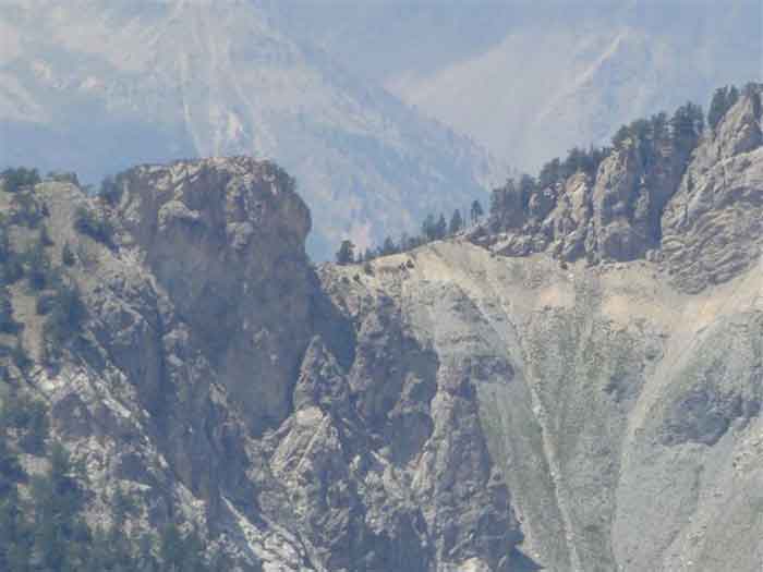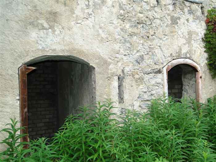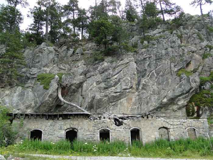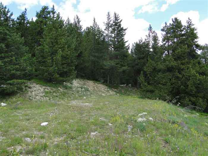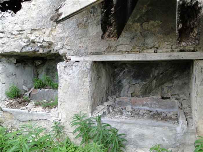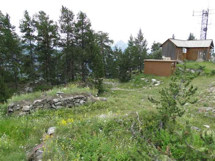 Fortress of Briançon, 1,300 m north of the town, 1892. 2003 m alt. Located near the oratory bearing the name "Croix de Toulouse" which gave it its name, at the summit of an important cliff dominating Briançon by nearly 700 m, directly above the old fort of Salettes. The initial projects planned the construction of a fort, counterpart to that of Croix de Bretagne, finally budgetary restrictions seriously reduced the size of the work, to the point of being only a battery. Its 4 pieces 120L/78 (we found 6 pieces 95 c replaced in 1900 by 120 mm long: within the bibliography) were intended to block the exits of the Montgenèvre pass (1,850 m) by enfilade fire on the hairpin turns of the RN 94 in front of the hamlet of La Vachette; it could also if necessary carry out plunging fire on the outskirts of Briançon. Its eagle's nest position gave it excellent views of the basin of Briançon and the Durance valley towards Gap, as well as the Guisane valley towards the Lautaret and Galibier passes. Although the position was not safe from an infantry assault, the work has no kind of close defense; barely can we discern some field positions there. Thus the work is curiously largely open, and devoid of a defensive perimeter. The battery is built on a summit, in front of a rocky peak which probably housed an observatory today replaced by a GSM relay. It presents a line of four platforms offset in height to follow the natural slope of the terrain; the parapets have sections of drystone walls, but no ammunition niches. In the northern extension of the platforms, there are two emplacements with drystone embankments, whose function escapes us, as too narrow and poorly placed for artillery; perhaps they are ammunition niches or a personnel shelter, given their good coverage? Slightly set back from the platforms, an earthwork accommodated a light barracks of which not even the foundation remains. At the foot of the rocky peak, 35 m below the battery, a barracks was located as on a balcony. It housed a garrison of 15 men and 1 NCO, whose mission consisted of monitoring the surroundings of the work, as well as observation on the valleys and neighboring summits. This barracks in ordinary masonry, covered with a two-sloped sheet metal roof, includes only a ground floor (+ attics) in which the various rooms are arranged. Behind the barracks, leaning against the rocky peak, a cistern of ± 30 m³ is covered with stone rubble, which ensures it remarkable camouflage. The garrison could ensure its drinking water supply from a spring located at Le Poët Ollagnier, 800 m lower, on the edge of the access road; spring equipped with a fountain and a watering trough. Still at the foot of the rocky peak, but this time on the slope facing west, is the powder magazine (1962 m alt). Several references within the bibliography mention an underground magazine. In fact, we are in the presence of a special case. A barracks in rubble masonry is leaned against a rock face. In this rock face, two artifice niches and two entrances to powder storage rooms (of low capacity) were dug. This construction has only one level, supporting a roof of galvanized sheets covered with a thin layer of earth. The roof is supported by a wooden framework resting on also wooden posts. There is no lamp embrasure and a cartouche indicates "1900". Preserved during the 1930s, the position will be improved with the construction of an alpine shelter (Adrian shelter) in the southern extension of the powder magazine, a shelter moreover remained unfinished. During these years, numerous field positions, for automatic weapon and for observation, are arranged along the ridge above the work. Finally the telephone is installed in the barracks. Today (08/2008) open to all winds, the work suffers the ravages of weather and men. A platform has been razed to make way for a parking lot; the rocky peak is occupied by a GSM relay; the barracks has kept its roof, but it is stripped of all removable elements, leaving its largely graffiti-covered walls bare; the powder magazine sees its roof collapse year after year, the masonry shows signs of fatigue; finally, to close a not very cheering picture, let us note that the places are strewn with excrement and rubbish of all kinds. This situation is all the more regrettable as the Croix de Toulouse offers a panorama of great beauty and certainly deserves the detour. Free access.