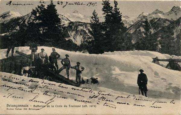 Pevnost Briançon, 1 300 m severně od města, 1892. 2003 m alt. Ležící v blízkosti oratoře nesoucího jméno «Croix de Toulouse», které mu dalo jeho jméno, na vrcholu významného útesu dominujícího Briançon o téměř 700 m, svisle nad starým fortem Salettes. První projekty předpokládaly výstavbu fortu, protějšku k tomu Croix de Bretagne, nakonec rozpočtová omezení vážně zredukují velikost díla, až to bude jen baterie. Jeho 4 děla 120L/78 (našli jsme 6 děl 95 c nahrazených v roce 1900 dlouhými 120 mm: v rámci bibliografie) byla určena k zablokování výstupů z průsmyku Montgenèvre (1 850 m) podélnou palbou na serpentiny RN 94 před osadou La Vachette; mohlo také v případě potřeby provádět přímou palbu na okolí Briançon. Jeho orlí hnízdo pozice mu propůjčovala vynikající výhledy na kotlinu Briançon a údolí Durance směrem k Gap, stejně jako na údolí Guisane ve směru průsmyků Lautaret a Galibier. Ačkoli pozice nebyla v bezpečí před pěchotním útokem, dílo neobsahuje žádný druh blízké obrany; stěží v něm můžeme rozeznat několik polních postavení. Tak je dílo podivně do značné míry otevřené a postrádá obranný perimetr. Baterie je vystavěna na vrcholu, před skalním vrcholem, který pravděpodobně ukrýval observatoř dnes nahrazenou GSM retranslační stanicí. Ta představuje linii čtyř platforem posunutých ve výšce, aby následovaly přirozený sklon terénu; parapety obsahují úseky zídek z nasucho kladeného kamene, ale žádné muníční výklenky. V severním prodloužení platforem se nacházejí dvě postavení s náspy z nasucho kladeného kamene, jejichž funkce nám uniká, protože příliš úzká a špatně umístěná pro dělostřelectvo; možná se jedná o muníční výklenky nebo úkryt pro personál, vzhledem k jejich dobrému krytí? Mírně v záloze od platforem, zemní práce pojmula lehkou barák, z níž nezůstává ani základ. U paty skalního vrcholu, tedy 35 m pod baterií, se nacházela barák jako na balkóně. Ubytovala posádku 15 mužů a 1 poddůstojníka, jejichž mise spočívala v hlídání okolí díla, stejně jako pozorování údolí a sousedních vrcholů. Tato barák z obyčejného zdiva, krytá dvouplášťovou plechovou střechou, zahrnuje pouze přízemí (+ podkroví), ve kterém jsou uspořádány různé místnosti. Za barákem, opřená o skalní vrchol, je cisterna ± 30 m³ pokryta kamennou drtí, což jí zajišťuje pozoruhodné maskování. Posádka mohla zajistit svou dodávku pitné vody z pramene umístěného v Le Poët Ollagnier, 800 m níže, na okraji přístupové cesty; pramen vybavený fontánou a napaječkou. Stále u paty skalního vrcholu, ale tentokrát na svahu hledícím na západ, se nachází prachárna (1962 m alt). Několik odkazů v rámci bibliografie zmiňuje podzemní sklad. Ve skutečnosti jsme v přítomnosti zvláštního případu. Barák z lomového zdiva je přiložen k skalní stěně. V této skalní stěně byly vyhloubeny dvě výklenky pro umělé ohně a dva vstupy do skladovacích místností pro prach (malé kapacity). Tato stavba má pouze jednu úroveň, nesoucí střechu z pozinkovaných plechů pokrytou tenkou vrstvou zeminy. Střecha je podpírána dřevěnou konstrukcí spočívající na rovněž dřevěných sloupech. Není tam žádná střílna pro lampu a kartuš označuje «1900». Zachována během let 1930, bude pozice vylepšena stavbou alpského úkrytu (úkryt Adrian) v jižním prodloužení prachárny, úkryt mimochodem zůstal nedokončen. Během těchto let jsou četná polní postavení, pro automatickou zbraň a pro pozorování, zařízena podél hřebene nad dílem. Konečně je telefon instalován v baráku. Dnes (08/2008) otevřený všem větrům, dílo trpí útrapami počasí a lidí. Jedna platforma byla srovnána se zemí, aby uvolnila místo parkovišti; skalní vrchol je obsazen GSM retranslační stanicí; barák si zachovala svou střechu, ale je oloupena o všechny demontovatelné prvky, nechávajíc její zdi do značné míry pokryté graffiti obnažené; prachárna vidí svou střechu se rok co rok hroutit, zdivo vykazuje známky únavy; konečně, abychom uzavřeli ne příliš radostný obraz, všimněme si, že místa jsou poseta výkaly a odpadky všeho druhu. Tato situace je tím více politováníhodná, že Croix de Toulouse nabízí panoráma velké krásy a jistě si zaslouží zajížďku. Volný přístup.