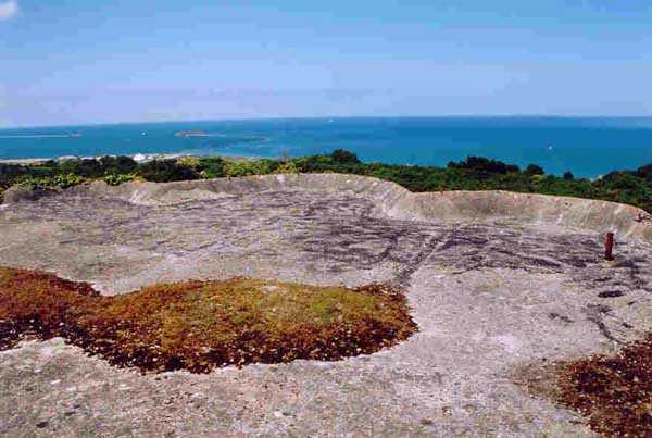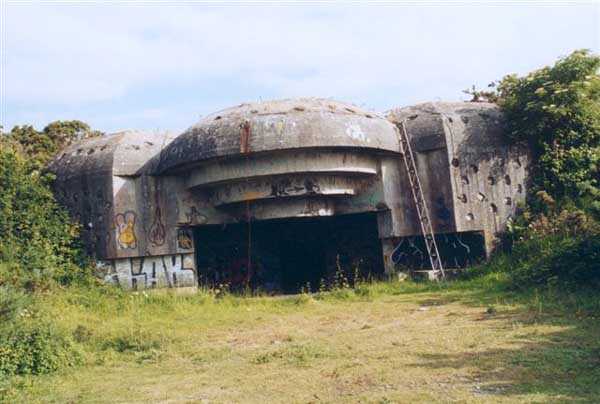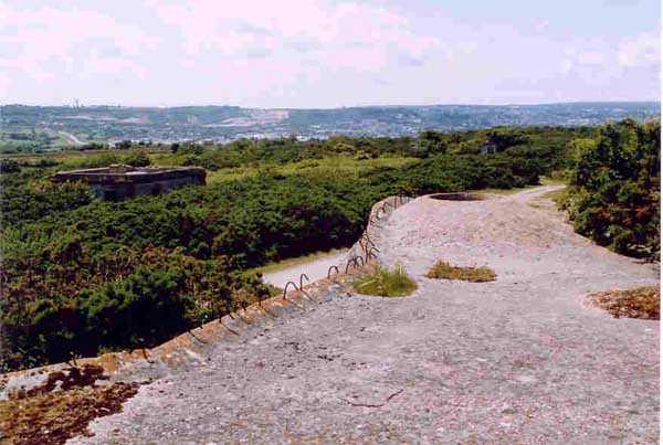 Fortress of Cherbourg, East of the town, 1894-1895. 94 m altitude. Important coastal battery comprising 6 pieces of 24 cm, with to its left 6 pieces of 95 mm and 4 others to its right (1881). In 1895, it was reorganised. Today (June 2005), it is still land owned by the Navy, access forbidden. The essential part is either filled in or covered with a thick layer of gorse and it is difficult to locate its elements. The mass of a concrete projectile magazine (on two levels) can still be guessed, while only 3 magazines, one of them blown up, are still accessible. The German casemates established on its fronts are also very difficult to access. In the interwar period, a project similar to what can be seen further east at the Brûlé battery did not reach the implementation stage. Sometimes reported as "du Caplain" or "des Caplains" batteries.