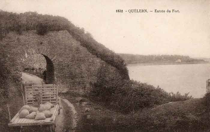 Festung von Brest, Halbinsel Crozon, 1883-1886. ± 77 m ü. M. Fünfeckiges Fort, errichtet westlich des gleichnamigen Dorfes. Es besitzt zwei Doppelkaponnieren, derzeit unter Wasser, und eine Flanke, die mit etwas Gymnastik über den Graben zugänglich ist. Eine große Öffnung klafft in der Decke im Inneren der Kaponnieren für die Abführung von Schießrauch. Die Decke des linken Pulvermagazins wurde 1902 durch Betonieren abgesenkt, während die des rechten, unverändert gebliebenen, ein Segmentbogengewölbe zeigt. Die Betonierung könnte von den Deutschen stammen, die es besetzten. Die beiden Pulvermagazine waren ursprünglich identisch, jedes mit einem Lagerraum von 22,35 m Länge und 6 m Breite. Ihre Rückwand wies drei Lampenscharten auf, die auf derselben Ebene ausgerichtet waren, und zwei Zwischenräume verliefen unter dem Boden. Jedoch wurde das rechte 1902 durch innere Betonierung verstärkt. Es zeigt nun eine ungewölbte Decke und eine leere Rückwand; seine einzige Lampenscharte befindet sich über der Eingangstür. Der Radius des Bogens, der Magazin und seitliche Gänge umfasst, beträgt 4,30 m. Die Erdabdeckung der zweistöckigen Unterkunft wurde entfernt und der Eingang des Forts, fast unzugänglich gemacht, wurde durch eine teilweise Verfüllung des Grabens an der Kehlseite ersetzt. Im ersten Stock der Unterkunft ziert ein Raum, der lange als Soldatenheim diente, an seinen Wänden viele gemalte Abzeichen von Marineeinheiten. In der einen oder anderen Schlafstube im ersten Stock sind Betonreparaturen an der Decke deutlich sichtbar. Wurde das Fort bombardiert? Die Wallstraße ist recht frei, und nur die Kopfseite hat ihre Traversen behalten. Hinter der Unterkunft gab es zwei Zisternen von 250 m³. Keine Traverse-Unterstand hat zwei Arme; es ist nur einer für sechs von ihnen, außer für die an der Hauptachse der Kopfseite verwurzelte, die keinen hat. Die Oberseiten der Unterkunft sollten in Infanteriebrustwehren organisiert sein, da ein Infanterieausgang mit zwei Ausgängen, ähnlich dem der Redoute von Landaoudec, festgestellt wurde. Ein Dokument vom 26. Januar 1911 präzisiert, dass im Mobilisierungsfall die Front I-II mit 2 x 120 L, die Front II-III mit 4 x 120 L, die Fronten III-IV und IV-V mit 2 x 155 L, die Südfront (?) mit 2 x 90 cm bewaffnet werden würde und die Flankierung durch 5 Revolverkanonen und ebenso viele 12-cm-Hinterlader sichergestellt würde, aber es wird nicht angegeben, auf welcher Lafette. Es wird auch eine Nebenbatterie auf Höhe 96 erwähnt, die mit 4 x 95 mm bewaffnet werden würde. Vor dem Eingang des Forts erinnert eine Gedenktafel daran, dass der Unternehmer (eigentlich Bauleiter, der für den Unternehmer Félix Mandement arbeitete), dem die Bauarbeiten des Forts zugeschlagen wurden, kein anderer war als Louis Léon Jouvet (1852-1902), Vater des berühmten Schauspielers Louis Jules Eugène Jouvet (1887-1951), gebürtig aus der Stadt. Das Fort befindet sich im Zentrum der Einrichtungen der Gendarmerie Maritime von Brest / Île Longue, die es teilweise nutzt, und der Zugang ist verboten.