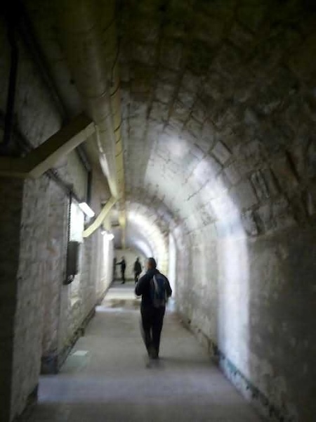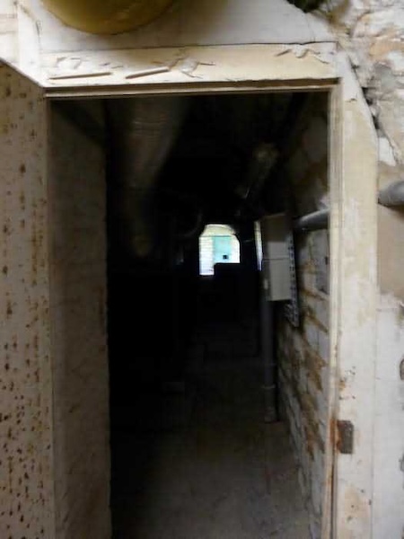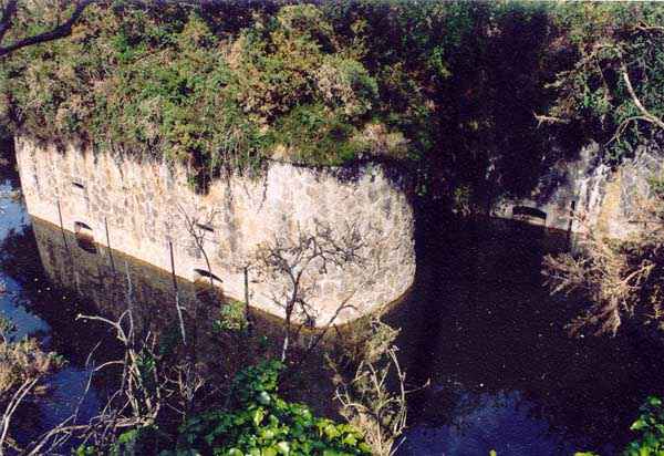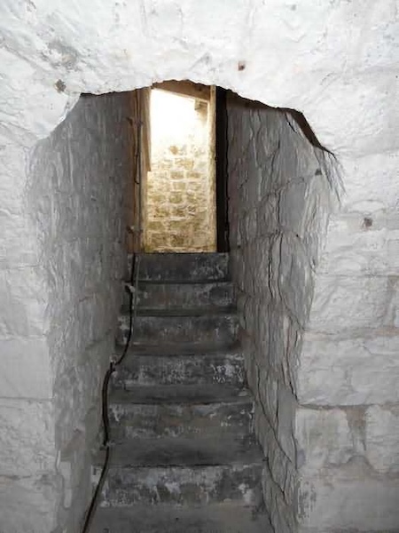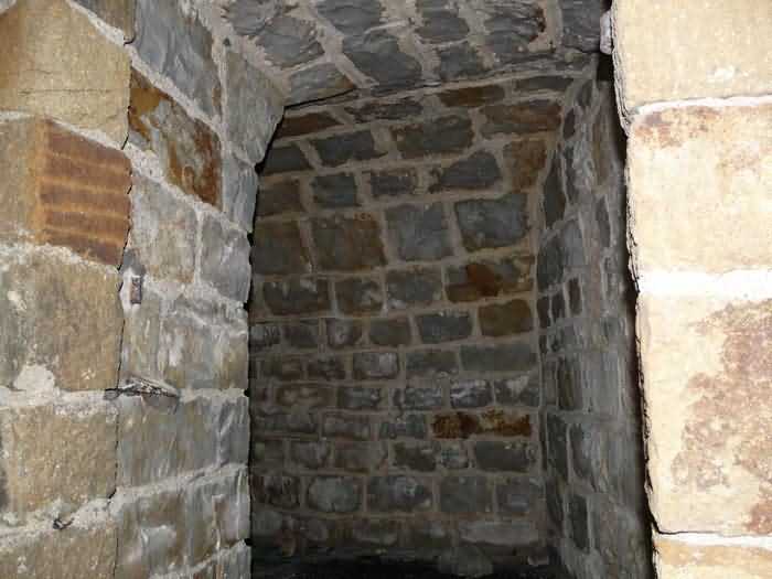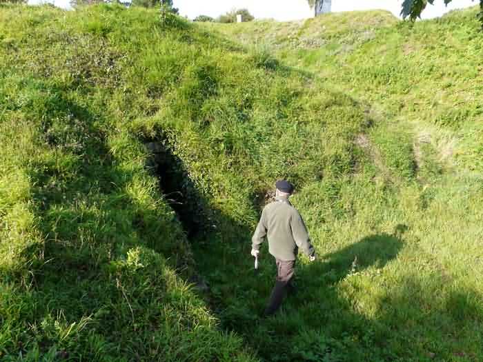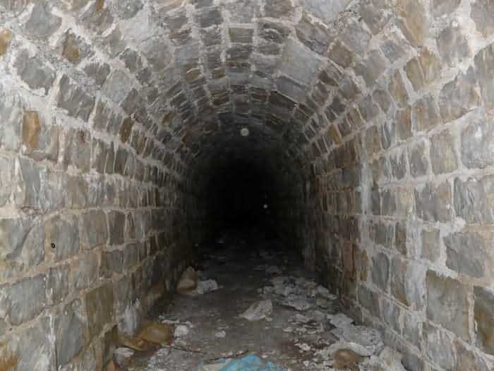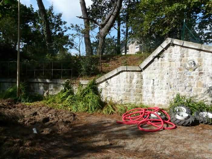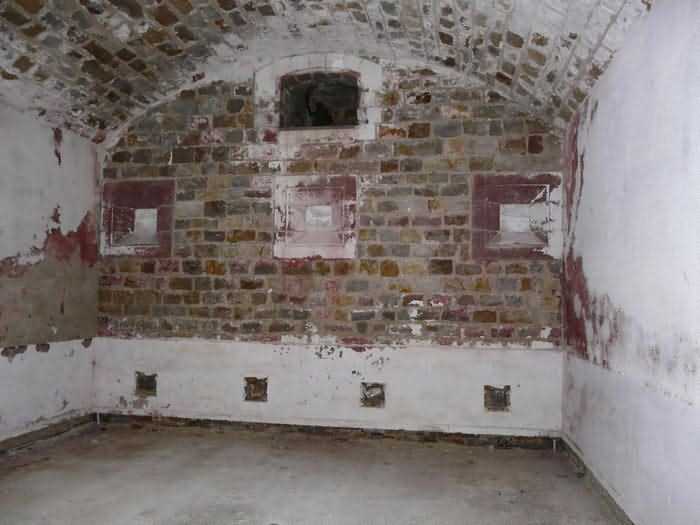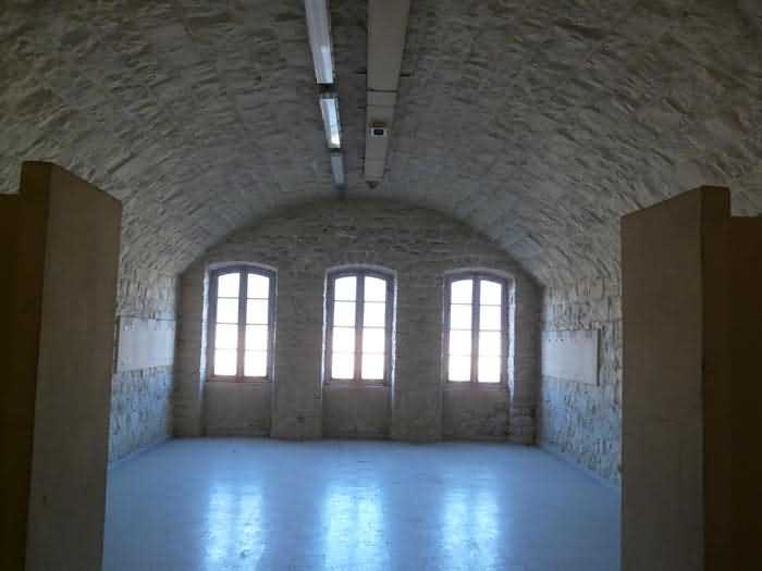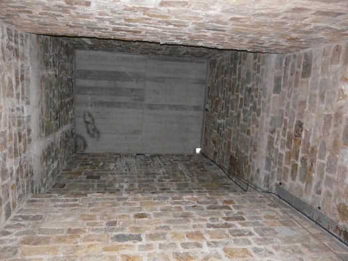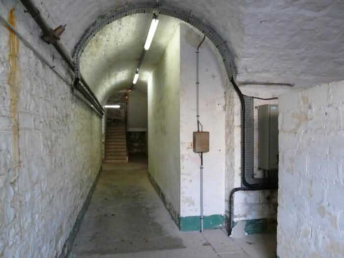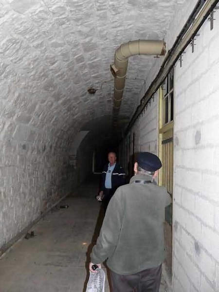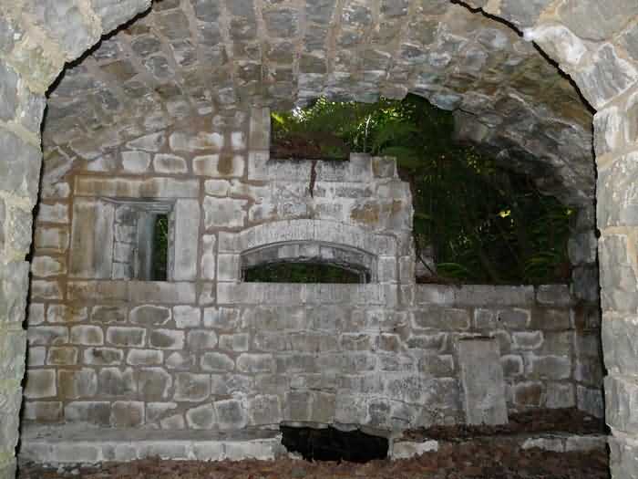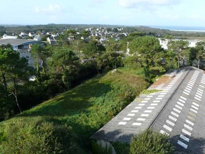 Fortress of Brest, Crozon peninsula, 1883-1886. ± 77 m altitude. Pentagonal fort, established west of the eponymous village. It possesses two double caponiers, currently under water, and a wing, accessible with some gymnastics via the ditch. A large opening gapes in the ceiling inside the caponiers, for the evacuation of firing fumes. The ceiling of the left powder magazine was lowered by concreting in 1902, while that of the right one, remaining as is, shows a segmental arch vault. The concreting may be due to the Germans who occupied it. The two powder magazines were originally identical, each with a storage room of 22.35 m long by 6 m wide. Their back partition had three lamp embrasures aligned on the same plane and two crawl spaces passed under the floor. However, the right one was reinforced by internal concreting in 1902. It now shows a non-vaulted ceiling and a blank back partition; its single lamp embrasure is placed above the entrance door. The radius of the arch encompassing magazine and lateral galleries is 4.30 m. The earth covering of the two-storey barracks was removed and the entrance of the fort, almost condemned, was replaced by a partial filling of the ditch on the gorge front. On the first floor of the barracks, a room, having long served as a soldiers' home, displays on its walls numerous paintings of Navy unit insignia. In one or another dormitory on the first floor, concrete repairs are clearly visible on the ceiling. Was the fort bombed? The rampart street is quite clear, and only the head front has retained its traverses. Behind the barracks, there were two cisterns of 250 m³. No traverse-shelter possesses two arms; it is only one for six of them, except for the one rooted in the capital of the head front which has none. The tops of the barracks were to be organized into infantry parapets as an infantry exit with two issues, similar to that of the Landaoudec redoubt, was spotted. A document dated 26 January 1911 specifies that in case of mobilization, the front I-II would be armed with 2 x 120 L, front II-III with 4 x 120 L, fronts III-IV and IV-V with 2 x 155 L, the south face (?) with 2 x 90 cm and the flanking would be ensured by 5 revolver guns and as many 12 cm breech-loaders, but it is not specified on which mounting. A battery annex at altitude 96 is also mentioned, which would be armed with 4 x 95 mm. In front of the fort's entrance, a commemorative plaque recalls that the contractor (actually works foreman working for the contractor Félix Mandement) to whom the adjudication of the fort's works was awarded was none other than Louis Léon Jouvet (1852-1902), father of the famous actor Louis Jules Eugène Jouvet (1887-1951), native of the town. The fort is located in the centre of the installations of the Gendarmerie Maritime of Brest / Île Longue which uses it partially and its access is forbidden.