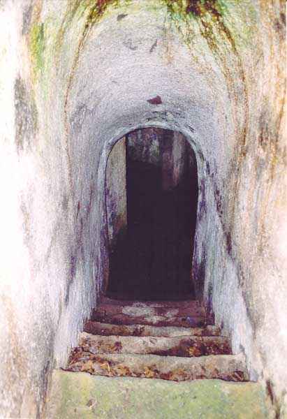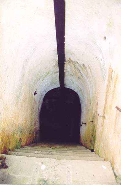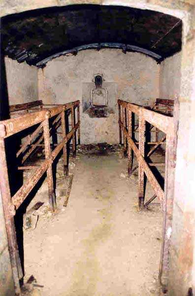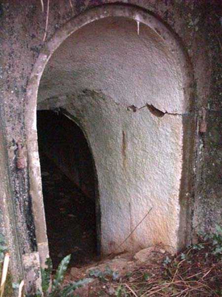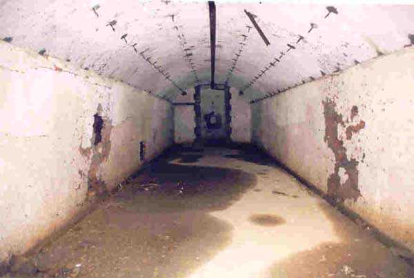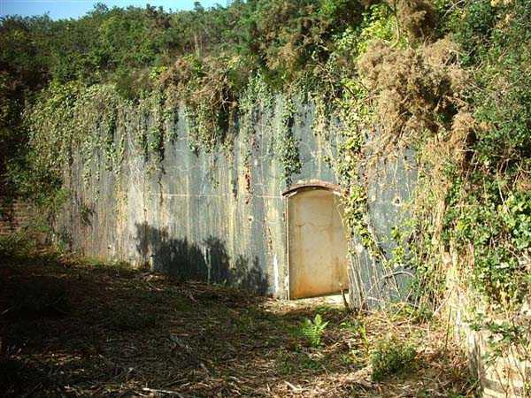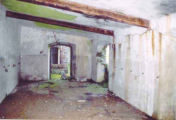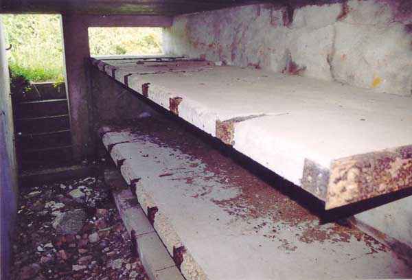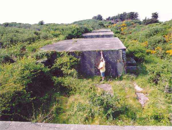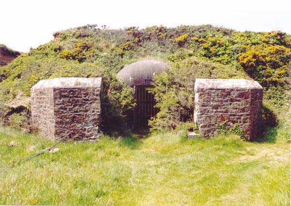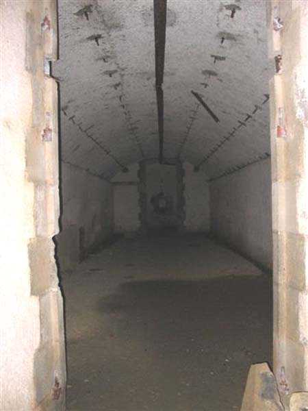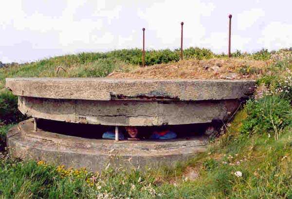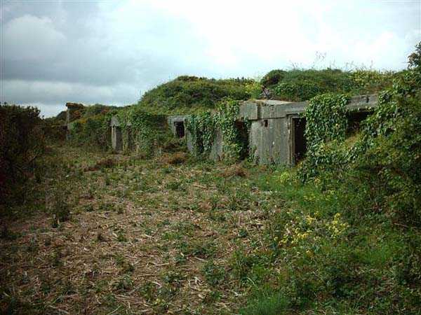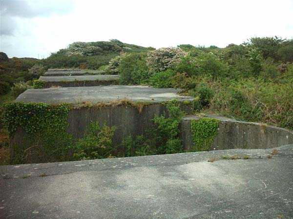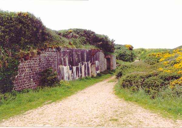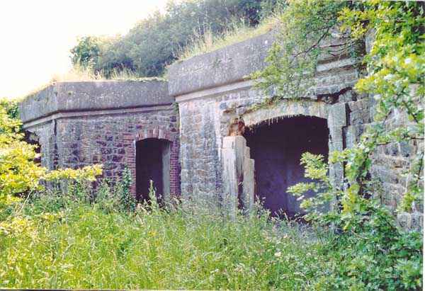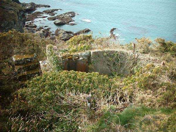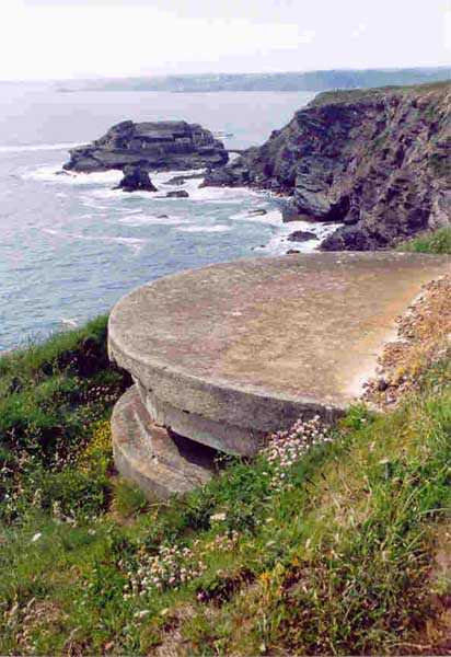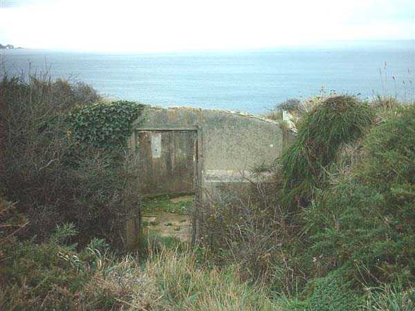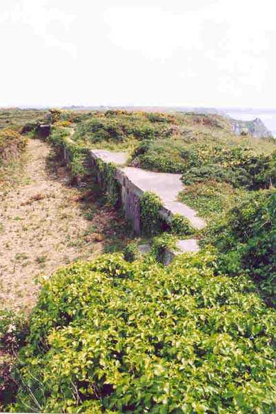 Fortress of Brest, Roscanvel Peninsula. In a report of the Coastal Defense Commission dated February 19, 1886, there is mention of several batteries called "hautes des Capucins" which are under construction. In fact, four batteries follow one another from north to south, only one being further north than the islet of the same name. The southernmost one, in a more than satisfactory state of preservation, will be armed with 4 mortars of 30 c and heavily reworked in 1901-1906. Its 4 mortars M of 30 c model 1883 on mounts M model 1883 P.A. taken from the state of armament of 1900, are, in that of 1914, replaced by 4 mortars M of 30 c model 1883-T-93 on modified mounts M model 1883 P.A. At each end of this battery there is a rubble masonry building with a roof made of a sloping concrete slab, about 60 cm thick. On the front of the mortar battery is its observation post. Going up towards the north, we first find, overlooking the cliff, a beautiful firing director post (of the 24 c battery, then command of the group of batteries) with an anchor drawn in the corridor, then a line of four firing locations for 100 mm guns. It was in 1888 that the decision was taken to build a battery of 6 x 100 mm, reduced to 4 pieces during its construction between 1898 and 1900. The 4 M guns of 100 mm model 1881 T.R. on Vavasseur mounts of this battery, taken from the state of armament of 1900, were, in that of 1914, replaced by 4 M guns of 100 mm model 1897 T.R. on modified M model 1897 P.C. mounts. A little to the south we find a very interesting rock magazine dug between 1890 and 1895. For the record, it was in this magazine that the German General Ramcke surrendered to the Americans, thus sealing the end of the fighting at Festung Brest on September 19, 1944. Still to the north, beyond the access road to the island, a third battery, for 4 x 24 c guns, aligns a concrete magazine (1898, internal dimensions of 4.5 m x 3 m), a hollow traverse, a concrete shelter (dating from the interwar period), another hollow traverse and, obliquely, a brick building; obviously, on either side of the traverses and the shelter are the firing platforms. This battery is known as the left battery. Its 4 x 24 c model 1870 guns on M model 1883 P.C. mounts were taken from the armament states of 1900 and, in 1914, there were 4 x 24 c model 1870-87 on P.C. model 1888 mounts. Despite a reorganization of the battery in 1905, it therefore retained the same equipment. The right battery, about 200 m further north, had 4 x 32 c guns with hollow traverses. Its two M 32 c model 1870-71 guns on M model 1882 P.A. mounts arming the left of the battery and the two M 32 c model 1870-93 on identical mounts, installed on the right, are all taken from the armament states of 1900 and 1914. This battery is unfortunately covered with thorny vegetation whose height and thickness are very dissuasive. In fact, only the building located on the far right is more or less visible. Its firing control post is located forward on the right, not far from the Kerviniou battery. These last two batteries are connected by a covered way with a large traverse halfway between, under which is a powder magazine. The whole is freely accessible and, apart from the battery on the right, very easy.