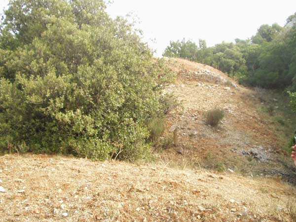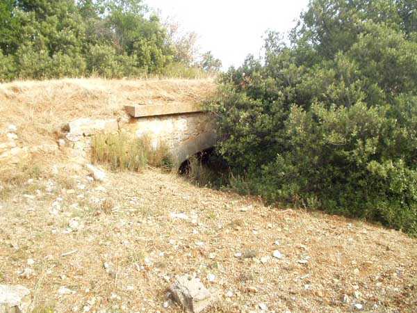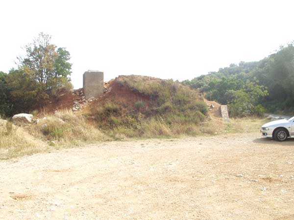 Festung von Toulon, nordöstlich der Stadt. 658 M/ü M. 250 nordwestlich des Forts Coudon, diese Batterie, orientiert nach Nord-Nordost, umfasste drei hohle Traversen, die heute (04/2006) zu ¾ verfüllt sind. Die in der Mitte ist weiter zurückgesetzt.