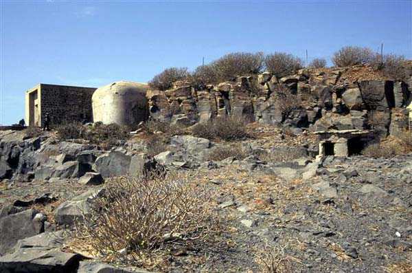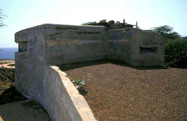 Dakar. Das Kap Manuel bildet die Südspitze der Kap-Verde-Halbinsel, 3000 Meter vom Hafen Dakar entfernt. Mit zunehmender Reichweite der Geschütze wird dieser Standort ideal gelegen sein, um den Hafen auf große Entfernung zu verteidigen. Ein Projekt von 1897 sieht an dieser Stelle 4 Kanonen 240 Mle 1870-97 vor. Es wird nicht verwirklicht. Eine Turmbatterie, bewaffnet mit 2 Kanonen 240 Mle 1893-96 M, wird ab 1907 errichtet. Sie ist identisch mit der von Bel-Air. Wir werden daher nicht darauf zurückkommen. Der Turm wird 1918 seiner Rohre und Wiegen beraubt. Er wird unter denselben Bedingungen wie seine Pendants vor dem Zweiten Weltkrieg modernisiert. Die Batterie erhält dabei einen modernen Gefechtsstand, ausgestattet mit einem Richtgerät „Kolonien“ und einem 5-Meter-Stereodistanzmesser S.O.M. Ein betonierter Unterstand schützt den 150 G.P. Scheinwerfer, der die Beleuchtung für Nachtbeschuss sicherstellt. Dieser Scheinwerfer wird durch ein Schallortungssystem, sogenannte Hörwand, unterstützt. Der Turm nimmt aktiv an den Kämpfen im September 1940 teil. Von einer Marinebesatzung bedient, erzielt er mehrere Treffer auf britische Schiffe. Diese erwidern das Feuer erfolgreich, und ein großkalibriger Schuss fällt nahe genug, um den Turm zu berühren, der dabei seine Robustheit unter Beweis stellt. Nach diesen Ereignissen wird der Standort verstärkt durch die In-Stellung-Bringung der 155 Mle 32 Batterie auf betonierten Plattformen. Diese, in Yoff positioniert, hat an den Kämpfen mangels Bedienungspersonal nicht teilgenommen. Es handelt sich zweifellos um die modernste Batterie Dakars. Jedes Geschütz kann mit einer Kadenz von 2 Schuss pro Minute ein 56,5 kg Panzergeschoss auf eine Entfernung von 26 200 Metern verschießen. Die Batterie verfügt über 2 klimatisierte Anhänger. Einer ist mit einem 5-Meter-Distanzmesser S.O.M. und der andere mit einem Richtgerät „Kolonien“ ausgestattet. Eine Sektion zur Verteidigung der Pässe, bewaffnet mit 2 Kanonen 75 Mle 1897 auf Lafette 1916, die die Sektion der Pointe de Dakar ersetzt, wird nach den Ereignissen von September 1940 installiert. Während die 155er Batterie bereits 1943 zum Kampf nach Nordafrika geschickt wird, bleibt der Turm bis zu seiner Verschrottung vor der Unabhängigkeit Senegals in Stellung. Heutzutage befindet sich der Block des 240-Turms in einem erbärmlichen Zustand, verschrottet und besetzt. Der in einen Fitnesspfad umgewandelte Standort ist dennoch interessant. Man kann dort die Laufbahn des Turms, den Gefechtsstand von 1940, die Hörwand, den Scheinwerferunterstand und andere Elemente sehen, wie die beiden Zwillingsunterstände der R.E.P.-Einrichtung, die es Schiffen ermöglichte, den Hafeneingang im Dunkeln zu finden. JJM 10/08/2008