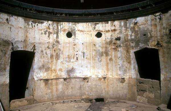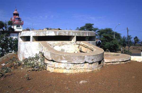 Dakar. Cape Manuel forms the southern tip of the Cape Verde peninsula, 3000 metres from the port of Dakar. With increasing gun range, this site would become ideally placed to defend the port at long distance. An 1897 project envisaged, at this location, 4 240 Mle 1870-97 guns. It was not realised. A turret battery, armed with 2 240 Mle 1893-96 M guns, was built from 1907. It is identical to that of Bel-Air. We will therefore not return to it. The turret was stripped of its barrels and cradles in 1918. It was modernised under the same conditions as its counterparts before the Second World War. On this occasion, the battery was equipped with a modern command post, fitted with a "Colonies" plotting board and a 5-metre stereoscopic rangefinder S.O.M. A concrete shelter protected the 150 G.P. searchlight providing illumination for night firing. This searchlight was assisted by a sound location system, called a listening wall. The turret took an active part in the fighting of September 1940. Manned by a Navy crew, it scored several hits on British ships. They returned the favour, and a large-calibre shot fell close enough to hit the turret, which on this occasion proved its robustness. After these events, the site was reinforced by the emplacement, on concrete platforms, of the 155 Mle 32 battery. The latter, positioned at Yoff, did not take part in the fighting due to lack of personnel to serve it. It is undoubtedly the most modern battery in Dakar. Each gun could fire, at a rate of 2 rounds per minute, a 56.5 kg armour-piercing shell to a distance of 26,200 metres. The battery had 2 air-conditioned trailers. One was equipped with a 5-metre S.O.M. rangefinder and the other with a "Colonies" plotting board. A pass defence section, armed with 2 75 Mle 1897 guns on 1916 mount, replacing the Pointe de Dakar section, was installed after the events of September 1940. While the 155 battery was sent into combat in North Africa as early as 1943, the turret remained in position until its scrapping before Senegal's independence. Nowadays, the block of the 240 turret is in a pitiful state, scrapped and squatted. The site, transformed into a fitness trail, is nevertheless interesting. One can see the turret's running track, the 1940 command post, the listening wall, the searchlight shelter and other elements, such as the 2 twin shelters of the R.E.P. device, which allowed ships to find the port entrance in the dark. JJM 10/08/2008