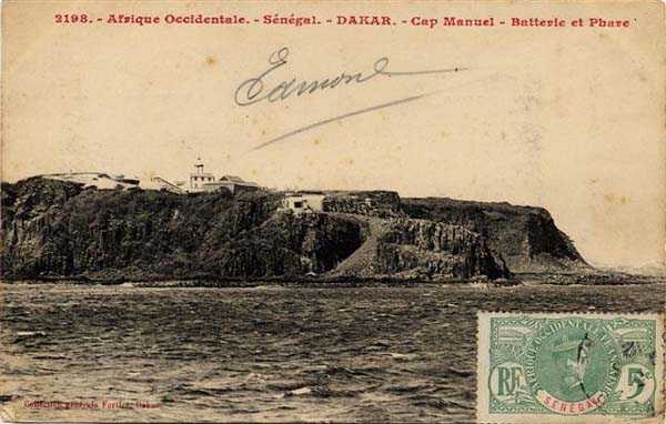 Dakar. Mys Manuel tvoří jižní cíp poloostrova Zeleného mysu, 3000 metrů od přístavu Dakar. S rostoucím dostřelem děl se toto místo stane ideálně umístěným k obraně přístavu na velkou vzdálenost. Projekt z roku 1897 počítal na tomto místě se 4 děly 240 Mle 1870-97. Nebyl realizován. Věžová baterie, vyzbrojená 2 děly 240 Mle 1893-96 M, je postavena od roku 1907. Je totožná s tou v Bel-Air. Nebudeme se k ní tedy vracet. Věž je v roce 1918 zbavena hlavní a kolébek. Je modernizována za stejných podmínek jako její protějšky před druhou světovou válkou. Při této příležitosti je baterie vybavena moderním velitelským stanovištěm, osazeným zaměřovacím přístrojem „Kolonie“ a stereoskopickým dálkoměrem o 5 metrech S.O.M. Betonový úkryt chrání reflektor 150 G.P., který zajišťuje osvětlení pro noční střelbu. Tento reflektor je asistován systémem zaměřování podle zvuku, zvaným naslouchací zeď. Věž se aktivně účastní bojů v září 1940. Obsluhována námořní posádkou dosahuje několika zásahů na britské lodě. Ty jí to vracejí a výstřel velké ráže dopadne natolik blízko, že zasáhne věž, která při této příležitosti prokáže svou robustnost. Po těchto událostech je místo posíleno uvedením baterie 155 Mle 32 do pozice na betonových plošinách. Tato, umístěná v Yoff, se bojů pro nedostatek personálu k obsluze neúčastnila. Jedná se nepochybně o nejmodernější baterii v Dakaru. Každé dělo může vyslat kadenci 2 ran za minutu 56,5 kg průbojný granát na vzdálenost 26 200 metrů. Baterie disponuje 2 klimatizovanými přívěsy. Jeden je vybaven 5metrovým dálkoměrem S.O.M. a druhý zaměřovacím přístrojem „Kolonie“. Četa obrany průchodů, vyzbrojená 2 děly 75 Mle 1897 na lafetě 1916, nahrazující četu na Pointe de Dakar, je instalována po událostech září 1940. Zatímco baterie 155 je poslána do bojů v severní Africe již roku 1943, věž zůstává v pozici až do svého sešrotování před nezávislostí Senegalu. V dnešní době je blok 240 věže v žalostném stavu, sešrotován a obsazen. Místo, přeměněné na fitness trasu, je přesto zajímavé. Lze zde vidět běhoun věže, velitelské stanoviště z roku 1940, naslouchací zeď, úkryt reflektoru a další prvky, jako 2 dvojčata úkrytů zařízení R.E.P., které umožňovalo lodím najít vstup do přístavu ve tmě. JJM 10/08/2008